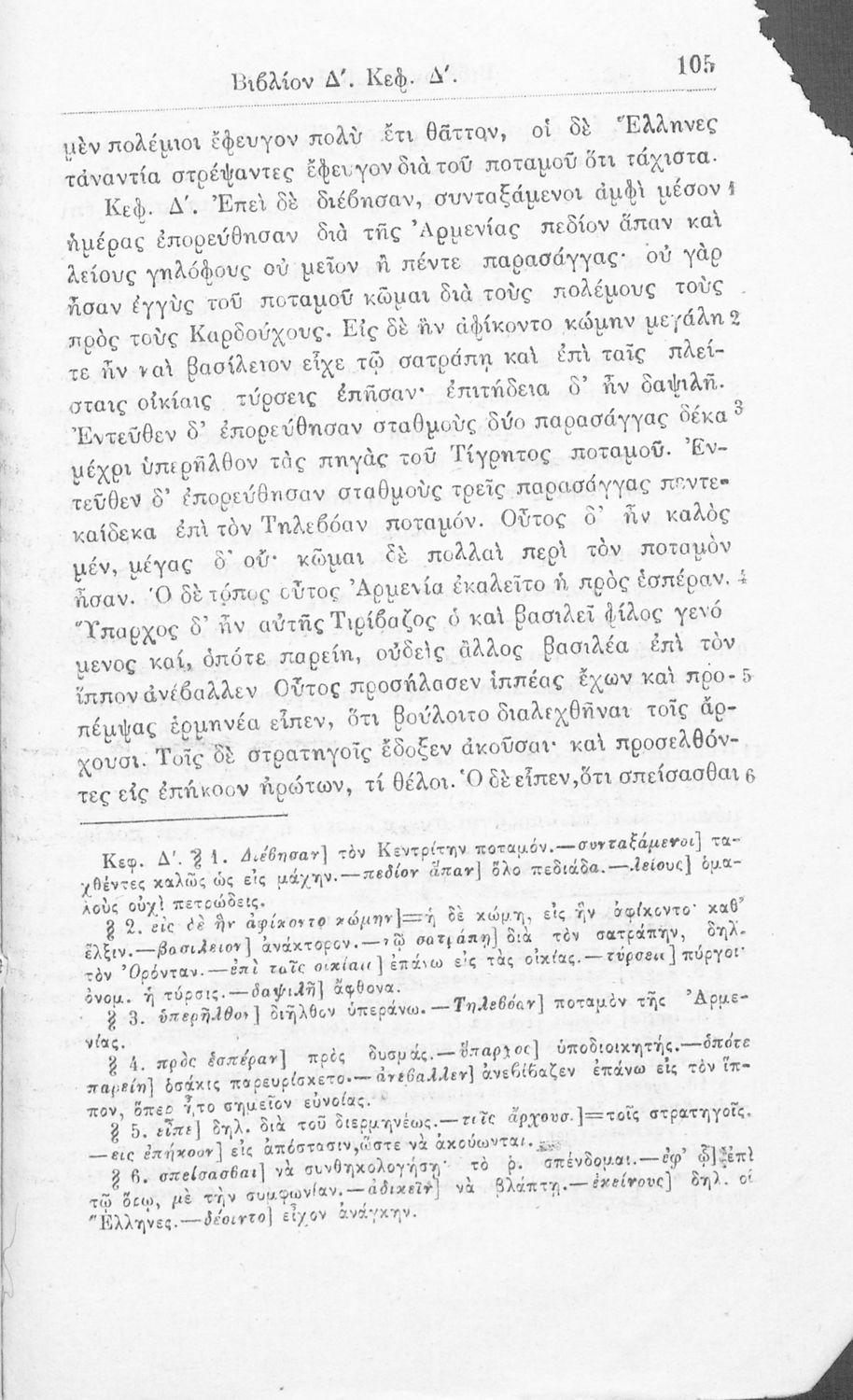 Σχολικό εγχειρίδιο Αρχαίων Ελληνικών για τα Ελληνικά Σχολεία και Παρθεναγωγεία που περιλαμβάνει αποσπάσματα από το έργο του Ξενοφώντα Κύρου Ανάβασις, και λεξικογραφικές παρατηρήσεις.