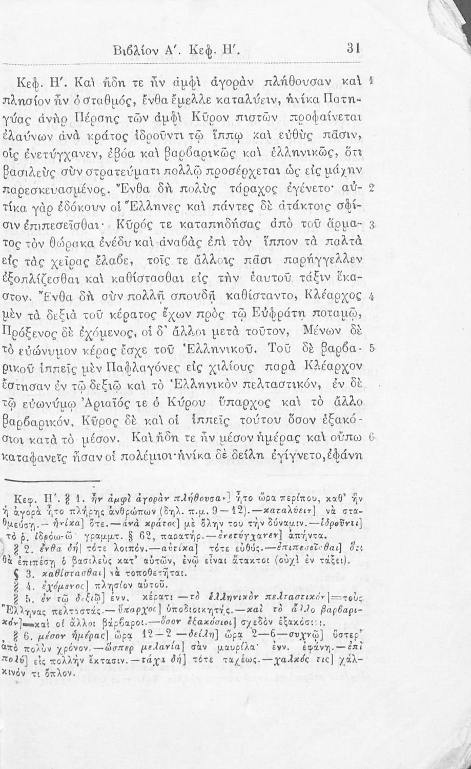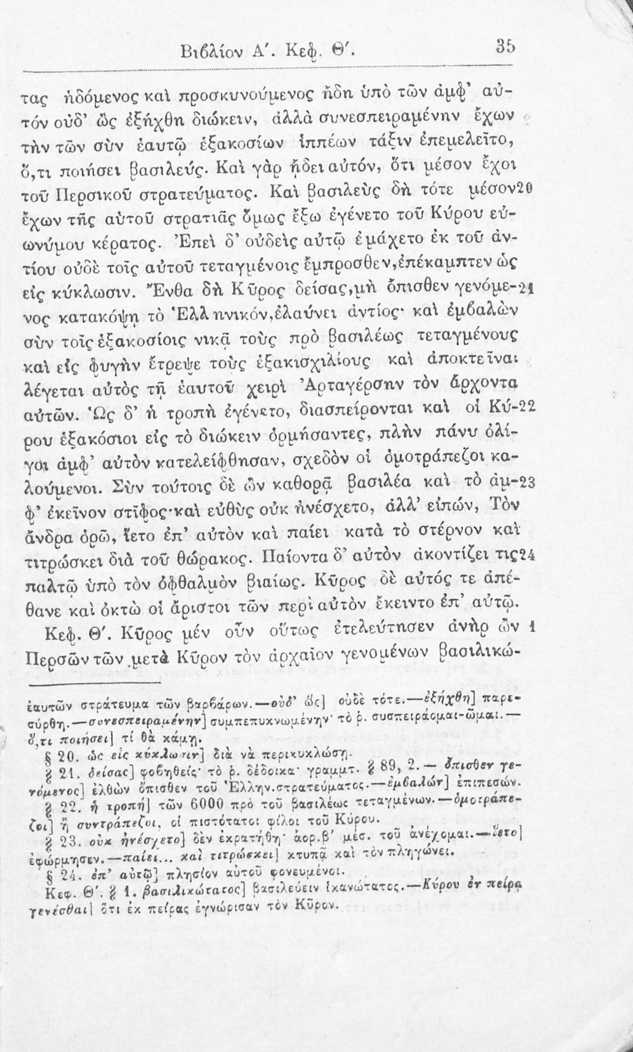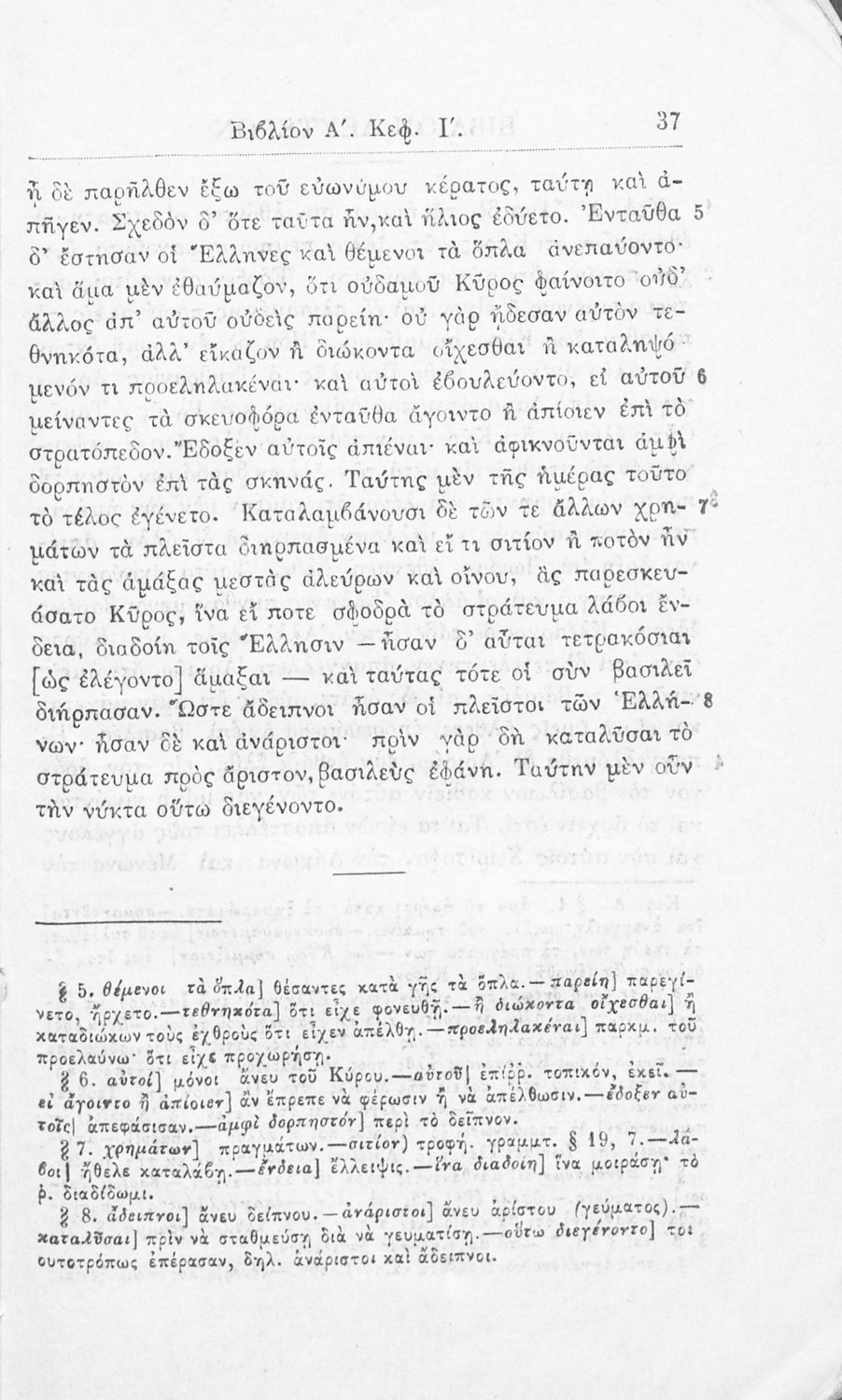 Σχολικό εγχειρίδιο Αρχαίων Ελληνικών για τα Ελληνικά Σχολεία, Γυμνάσια και Παρθεναγωγεία που περιλαμβάνει αποσπάσματα από το έργο του Ξενοφώντα Κύρου Ανάβασις, και λεξικογραφικές παρατηρήσεις.