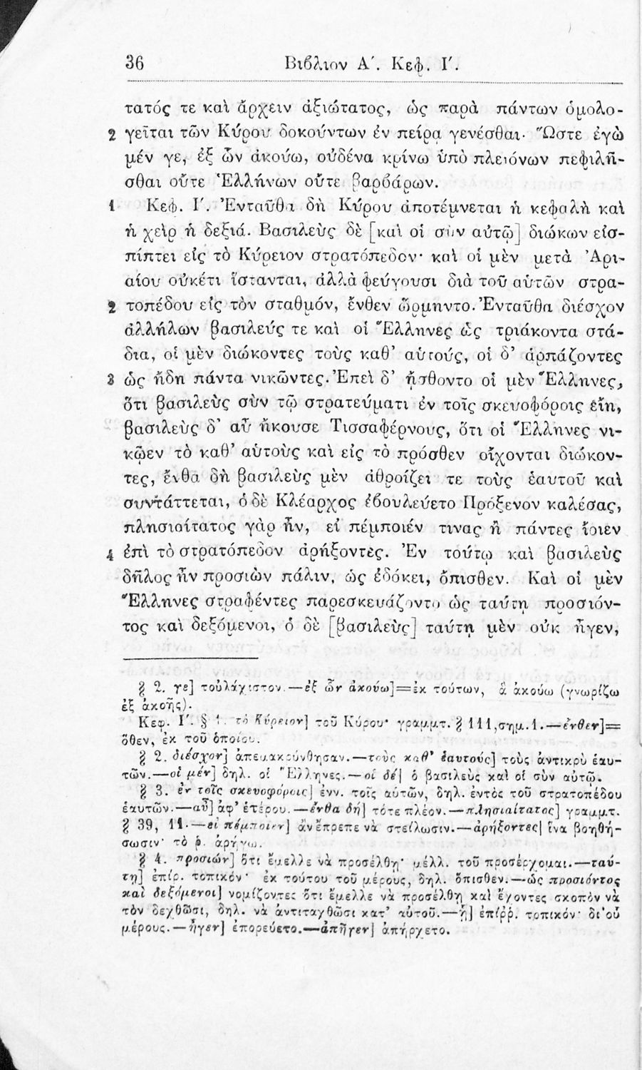 Σχολικό εγχειρίδιο Αρχαίων Ελληνικών για τα Ελληνικά Σχολεία και Παρθεναγωγεία που περιλαμβάνει αποσπάσματα από το έργο του Ξενοφώντα Κύρου Ανάβασις, και λεξικογραφικές παρατηρήσεις.