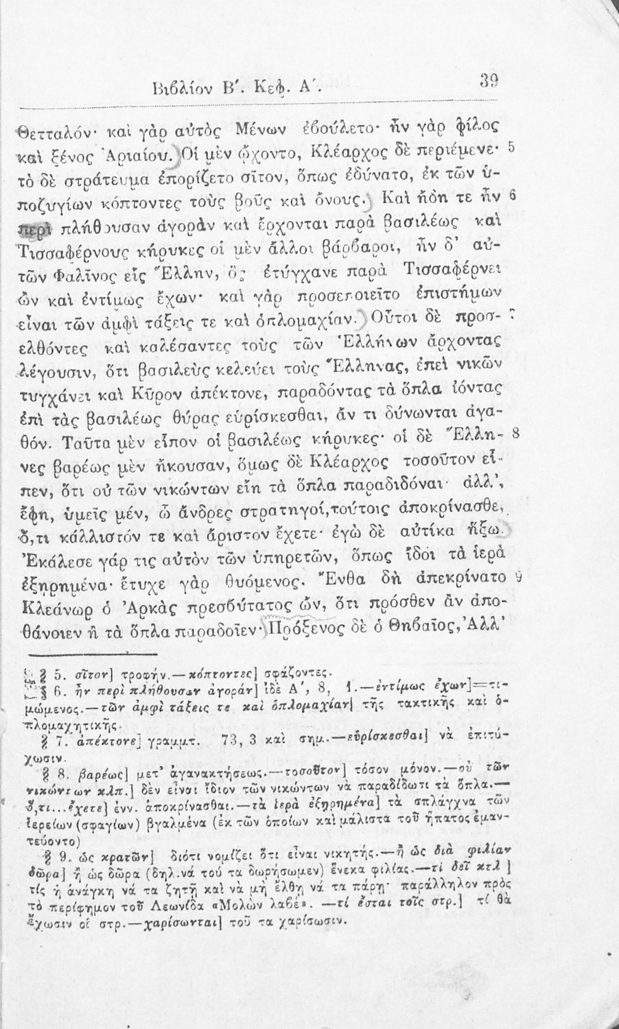 Σχολικό εγχειρίδιο Αρχαίων Ελληνικών για τα Ελληνικά Σχολεία και Παρθεναγωγεία που περιέχει αποσπάσματα από τα έργα του Ξενοφώντα Ελληνικά (βιβλία Α΄ και Β΄ ) και Κύρου Παιδεία, σημειώσεις και ερμηνευτικά ...