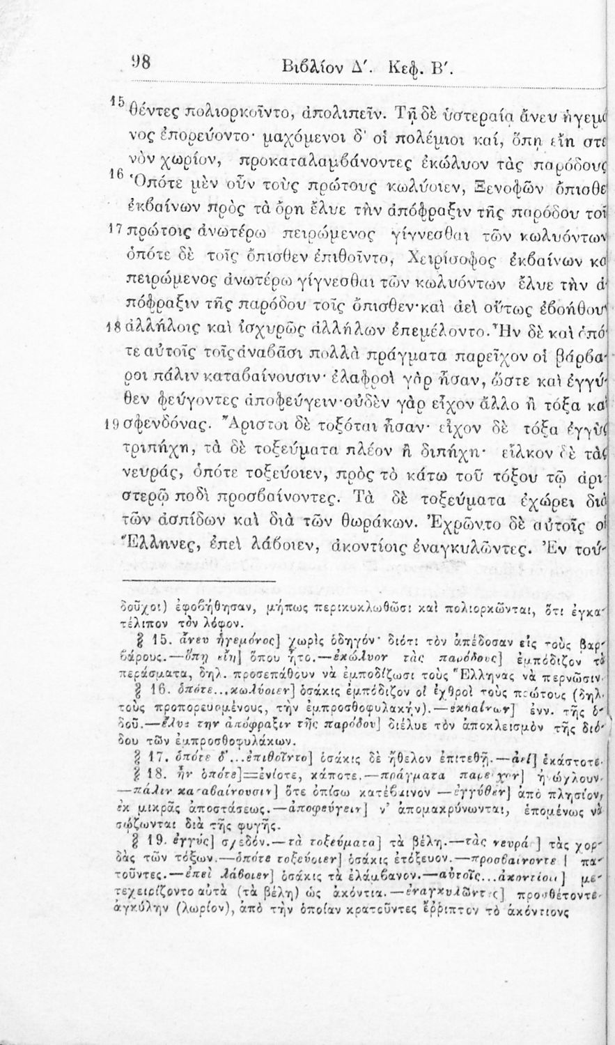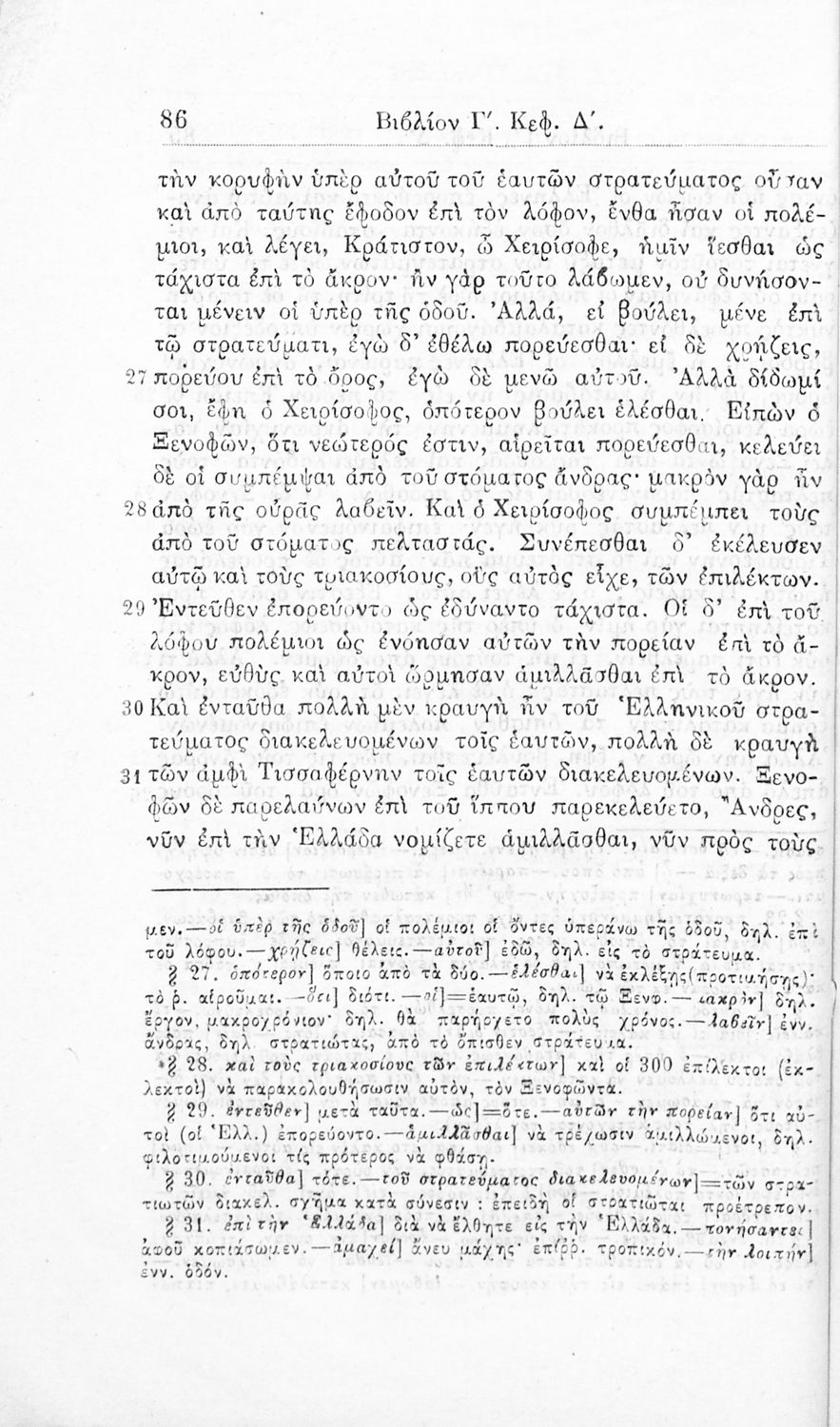 Σχολικό εγχειρίδιο Αρχαίων Ελληνικών για τα Ελληνικά Σχολεία και Παρθεναγωγεία που περιλαμβάνει αποσπάσματα από το έργο του Ξενοφώντα Κύρου Ανάβασις, και λεξικογραφικές παρατηρήσεις.