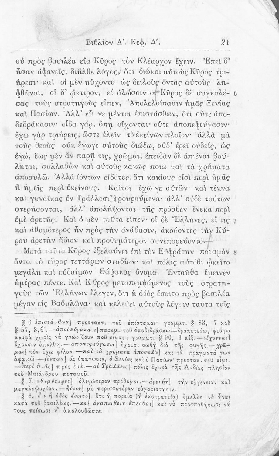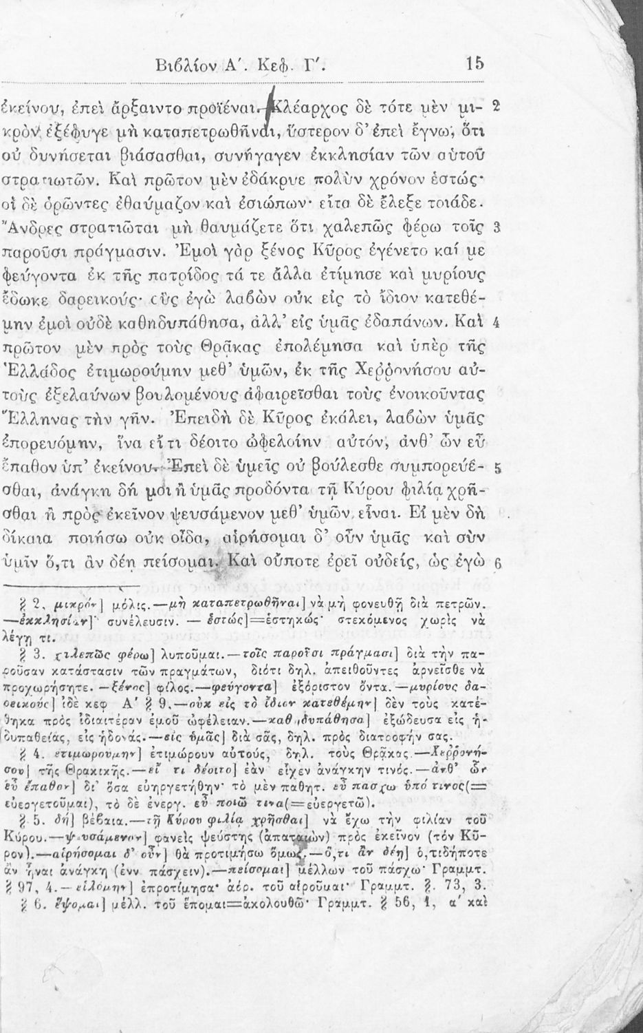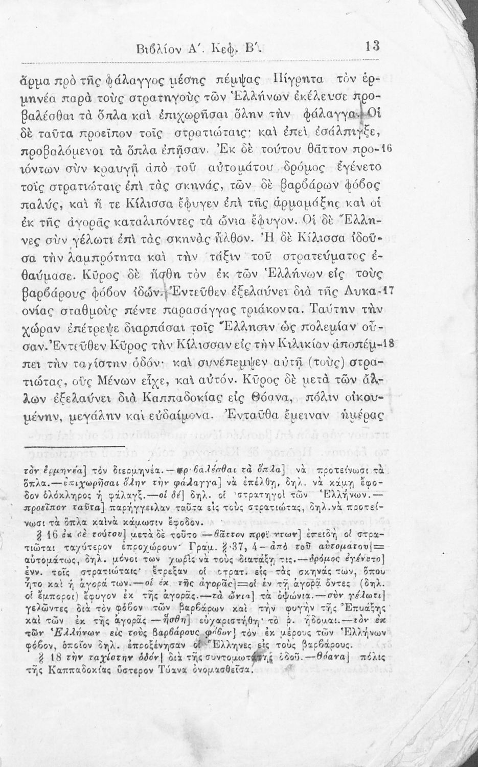 Σχολικό εγχειρίδιο Αρχαίων Ελληνικών για τα Ελληνικά Σχολεία, Γυμνάσια και Παρθεναγωγεία που περιλαμβάνει αποσπάσματα από το έργο του Ξενοφώντα Κύρου Ανάβασις, και λεξικογραφικές παρατηρήσεις.