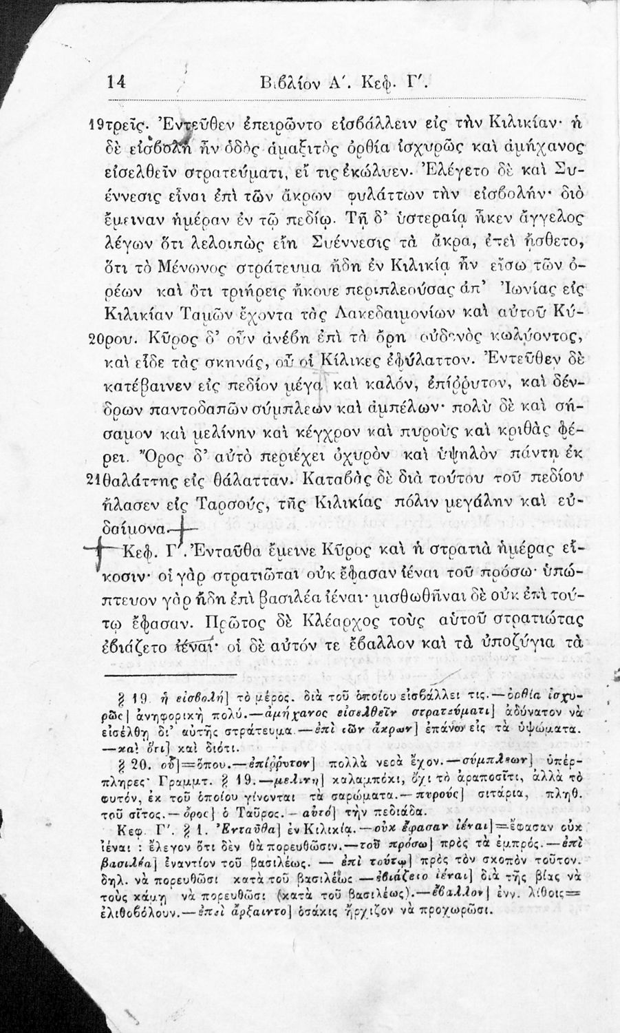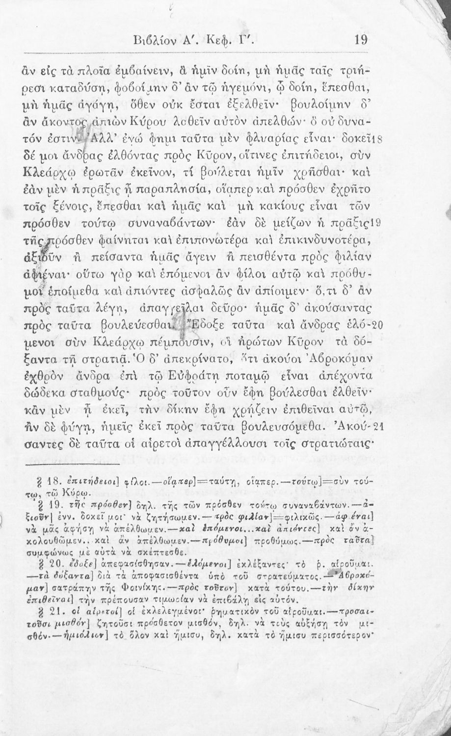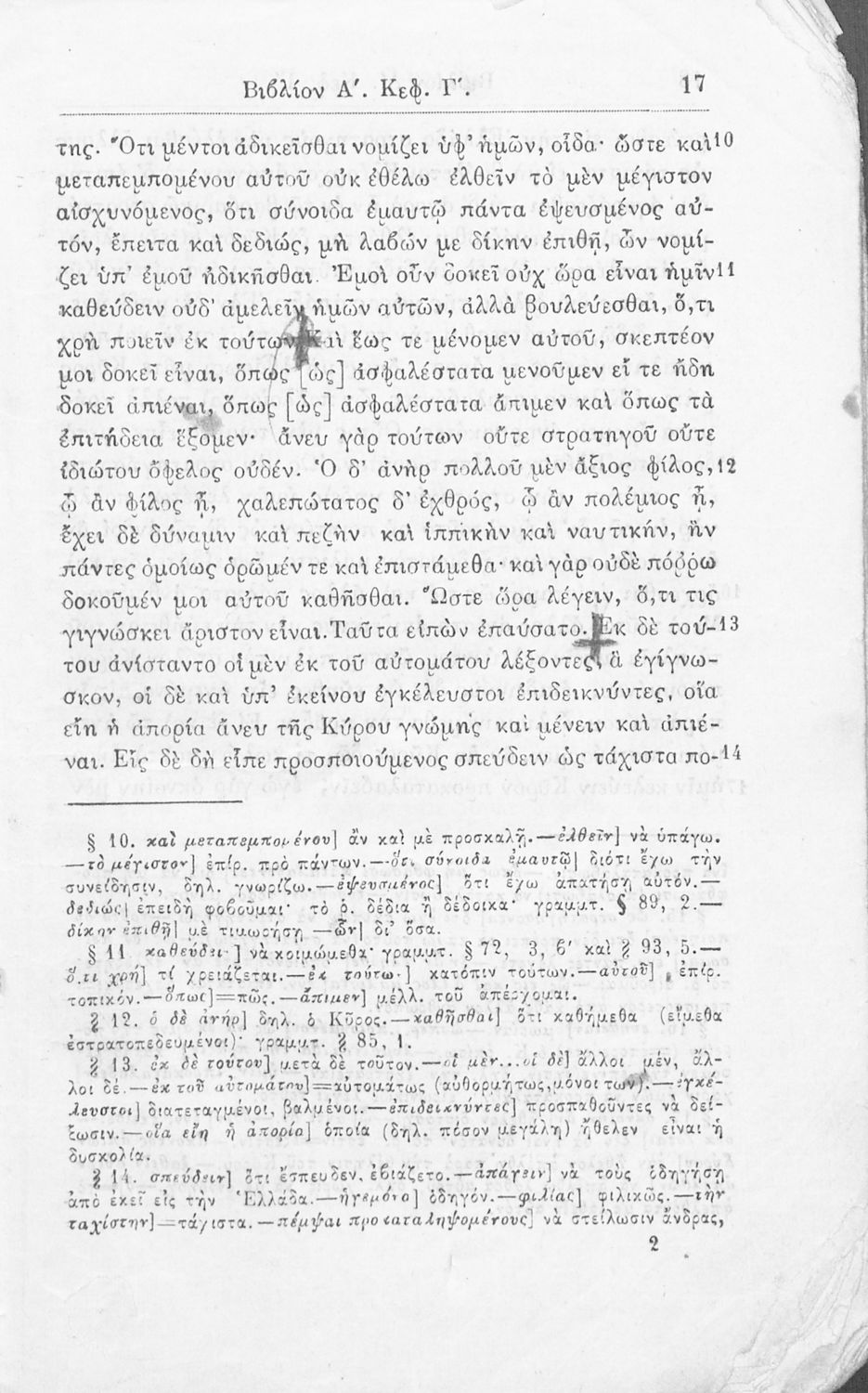 Σχολικό εγχειρίδιο Αρχαίων Ελληνικών για τα Ελληνικά Σχολεία, Γυμνάσια και Παρθεναγωγεία που περιλαμβάνει αποσπάσματα από το έργο του Ξενοφώντα Κύρου Ανάβασις, και λεξικογραφικές παρατηρήσεις.
