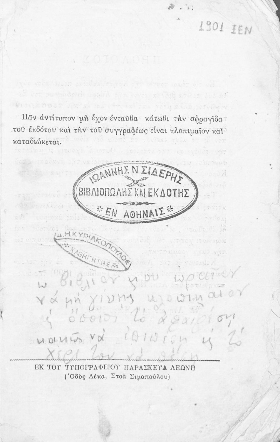 Εκδότης: Ιωάννης Ν. Σιδέρης