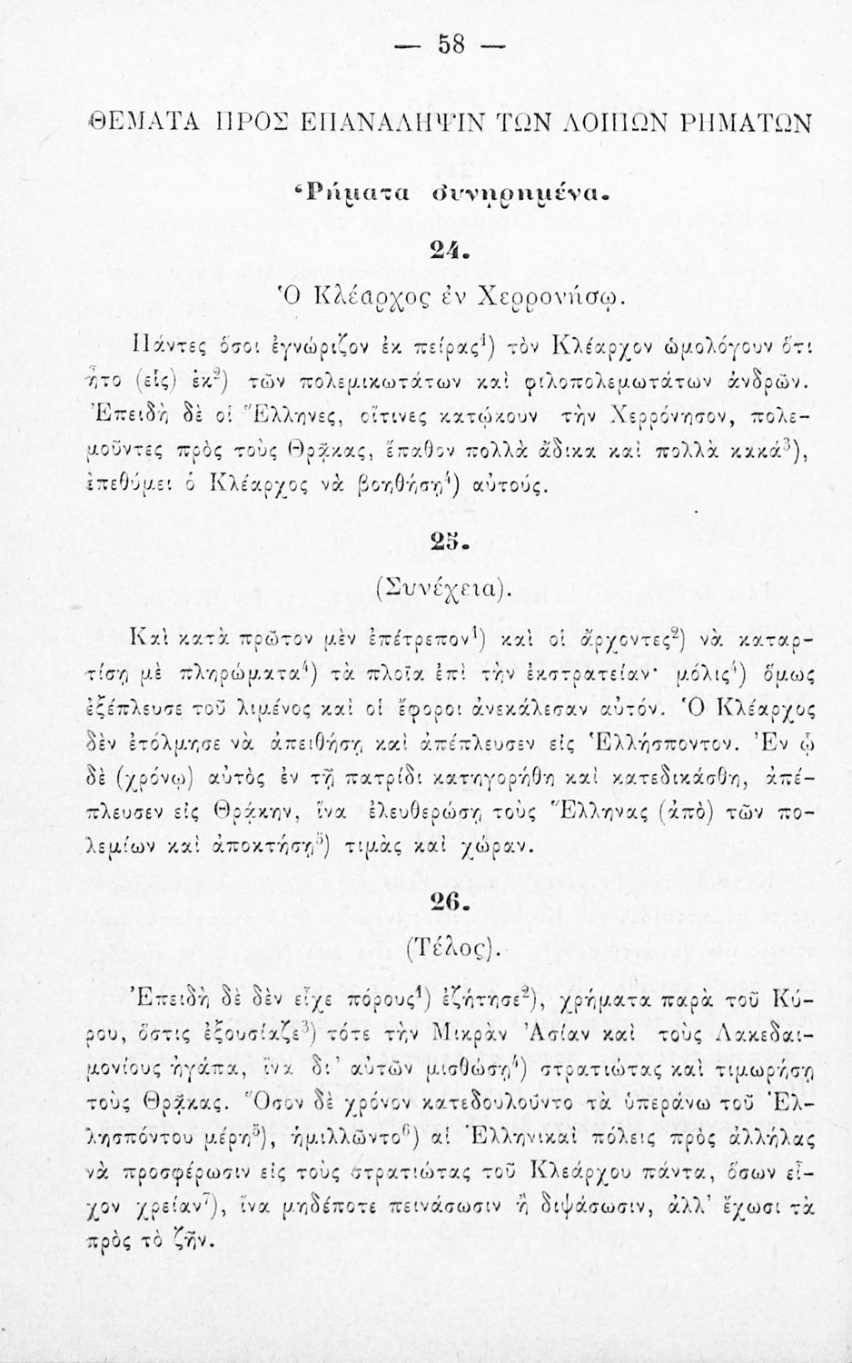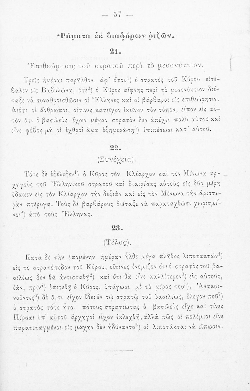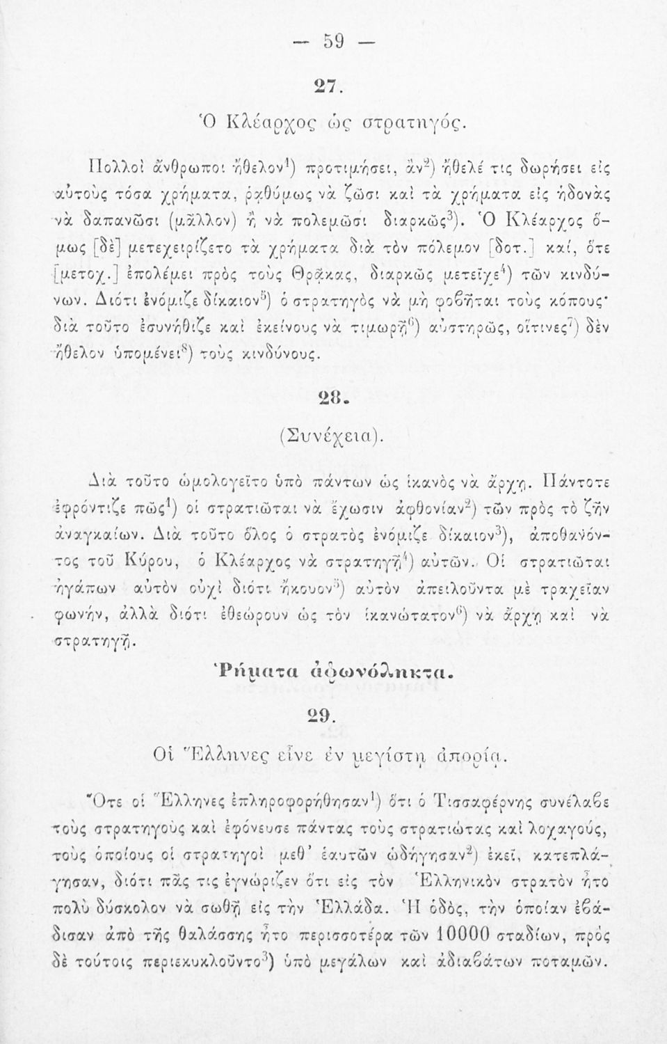 Σχολικό εγχειρίδιο Αρχαίων Ελληνικών Β' Ελληνικού Σχολείου που περιλαμβάνει αποσπάσματα από το έργο του Ξενοφώντα Κύρου Ανάβασις, ερμηνευτικές, γλωσσικές, γραμματικές και συντακτικές παρατηρήσεις, και ασκήσεις