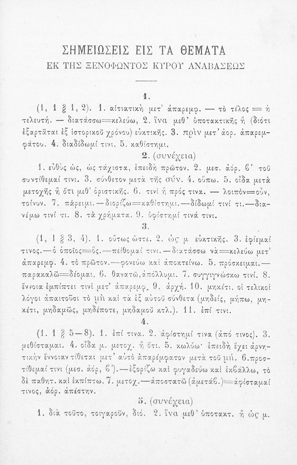 Σχολικό εγχειρίδιο Αρχαίων Ελληνικών Β' Ελληνικού Σχολείου που περιλαμβάνει αποσπάσματα από το έργο του Ξενοφώντα Κύρου Ανάβασις, ερμηνευτικές, γλωσσικές, γραμματικές και συντακτικές παρατηρήσεις, και ασκήσεις
