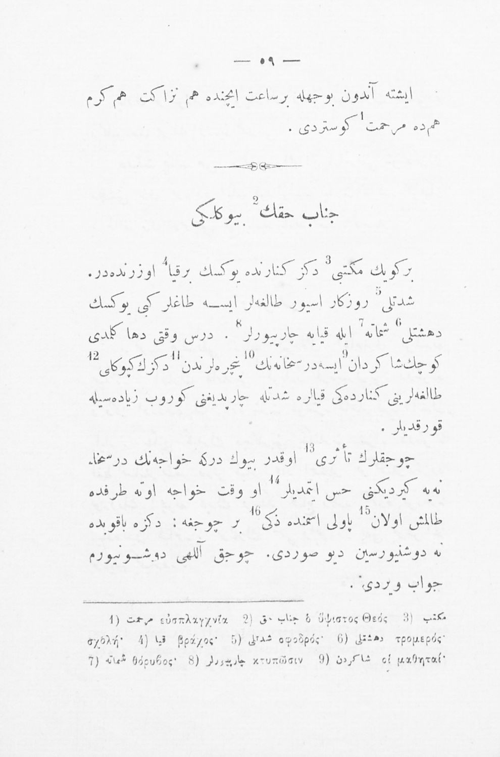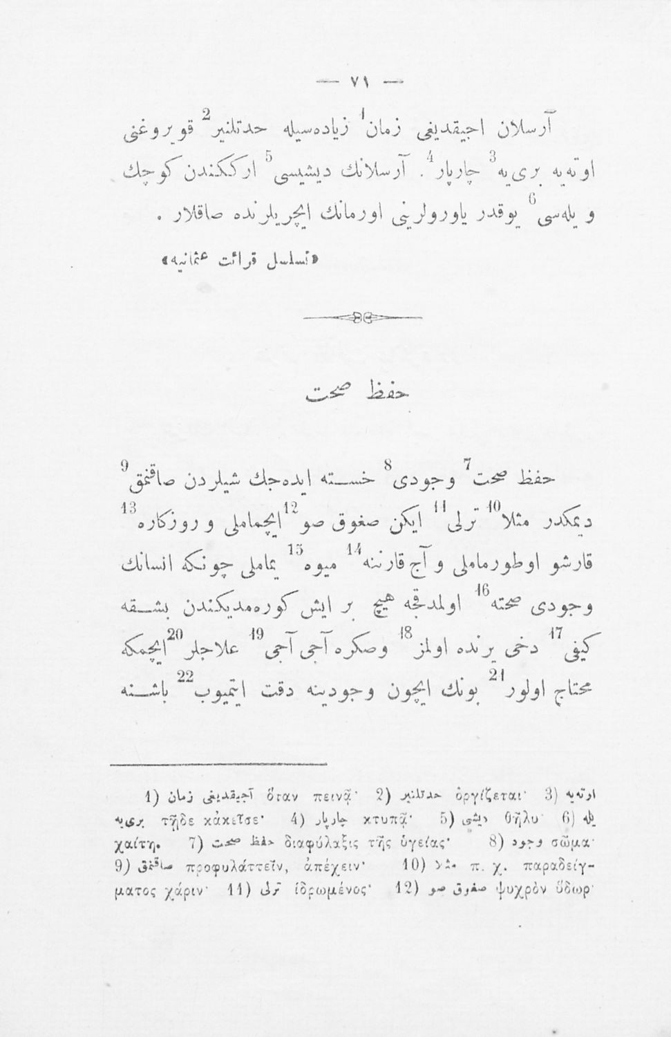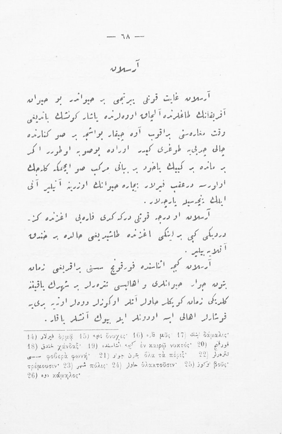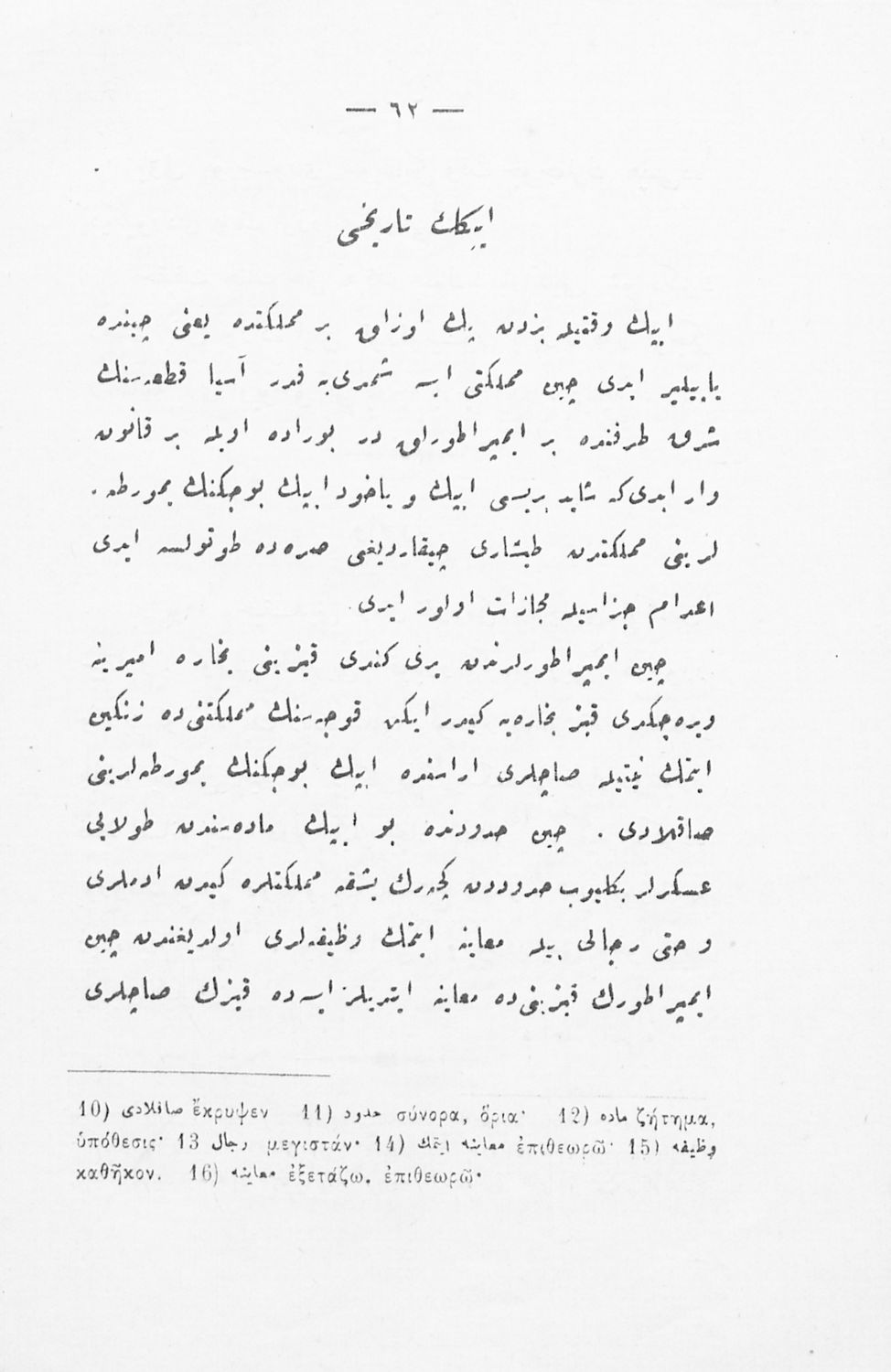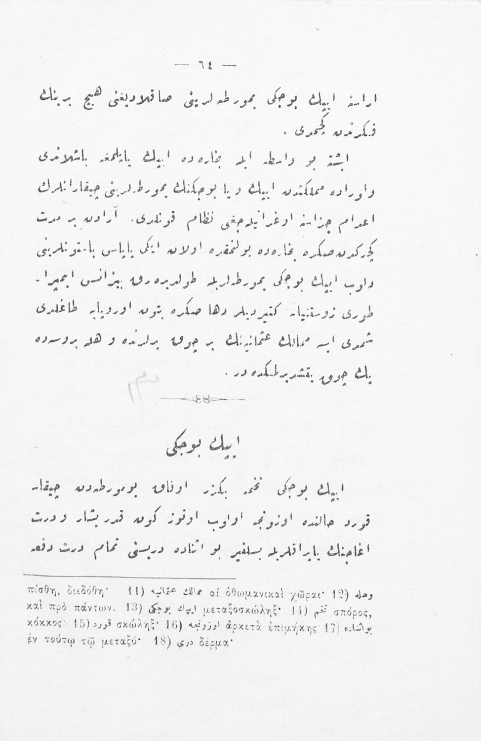 Σχολικό εγχειρίδιο το οποίο προοριζόταν για τη διδασκαλία της ανάγνωσης και κατανόησης της Τουρκικής γλώσσας από τους ομογενείς σπουδαστές πρώτου και δεύτερου έτους στην Κωνσταντινούπολη. Το βιβλίο περιέχει κείμενα γραμμένα στην Τουρκική γλώσσα και τα οποία συνοδεύονται από γλωσσικά και ερμηνευτικά σχόλια.
