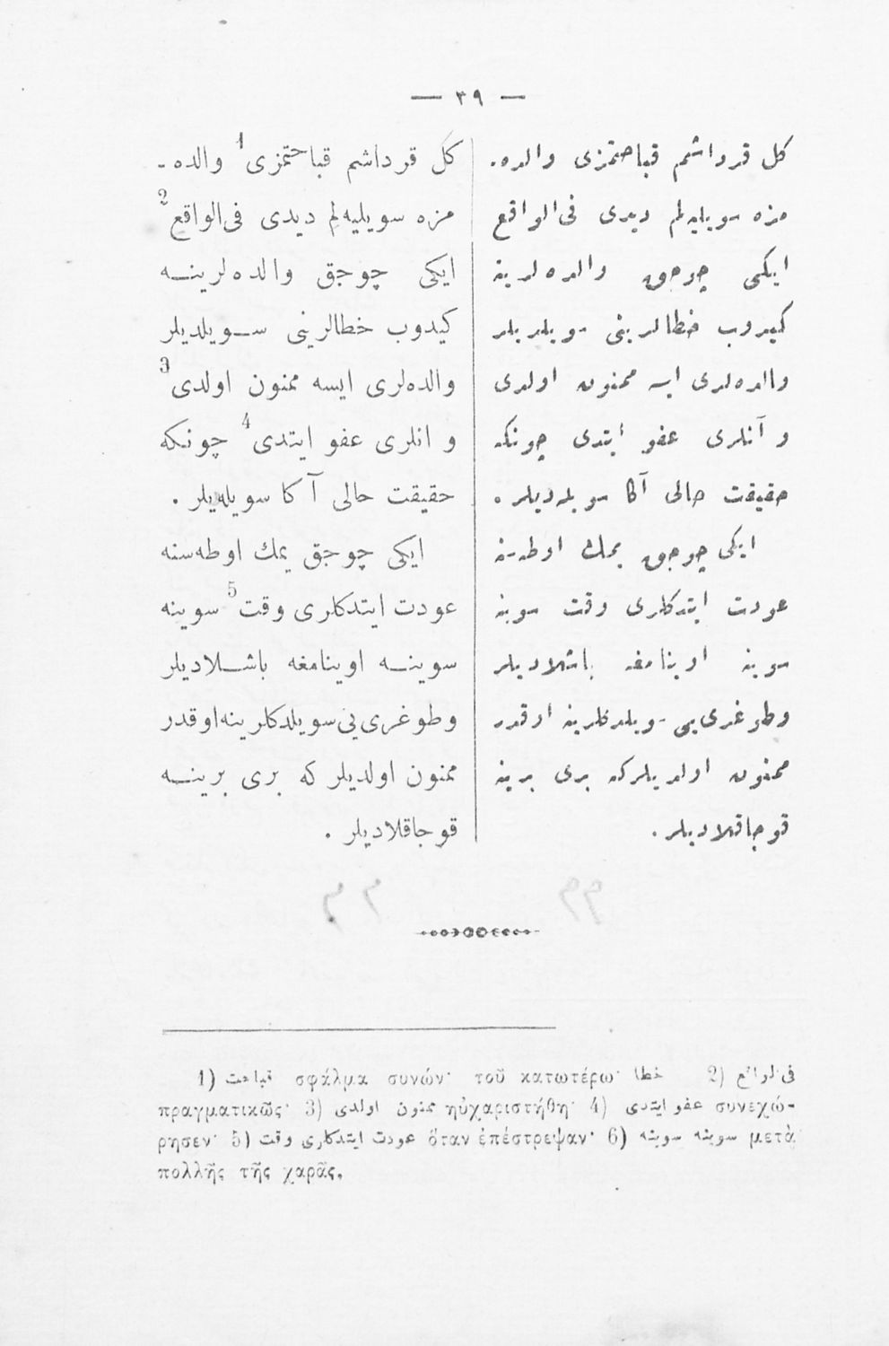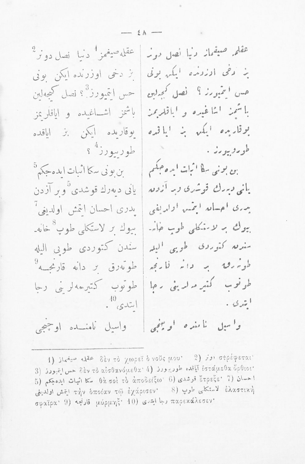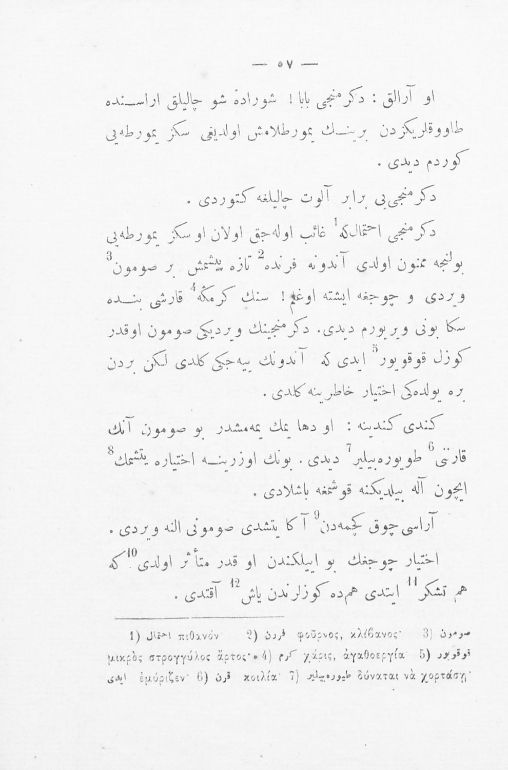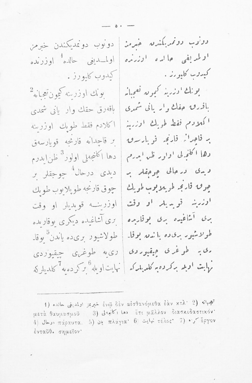 Σχολικό εγχειρίδιο το οποίο προοριζόταν για τη διδασκαλία της ανάγνωσης και κατανόησης της Τουρκικής γλώσσας από τους ομογενείς σπουδαστές πρώτου και δεύτερου έτους στην Κωνσταντινούπολη. Το βιβλίο περιέχει κείμενα γραμμένα στην Τουρκική γλώσσα και τα οποία συνοδεύονται από γλωσσικά και ερμηνευτικά σχόλια.