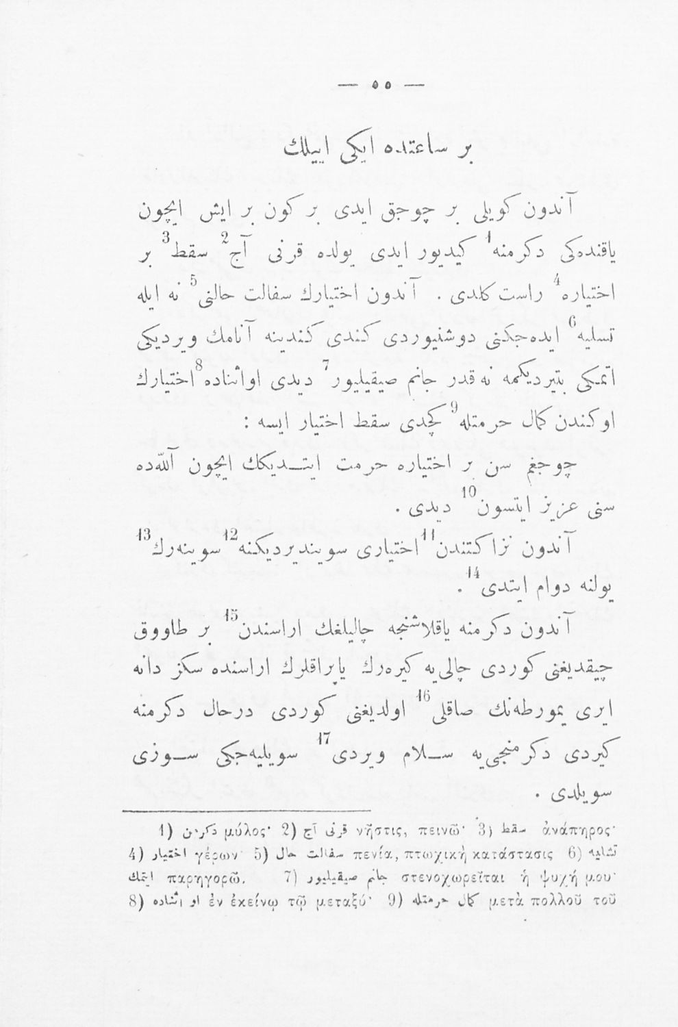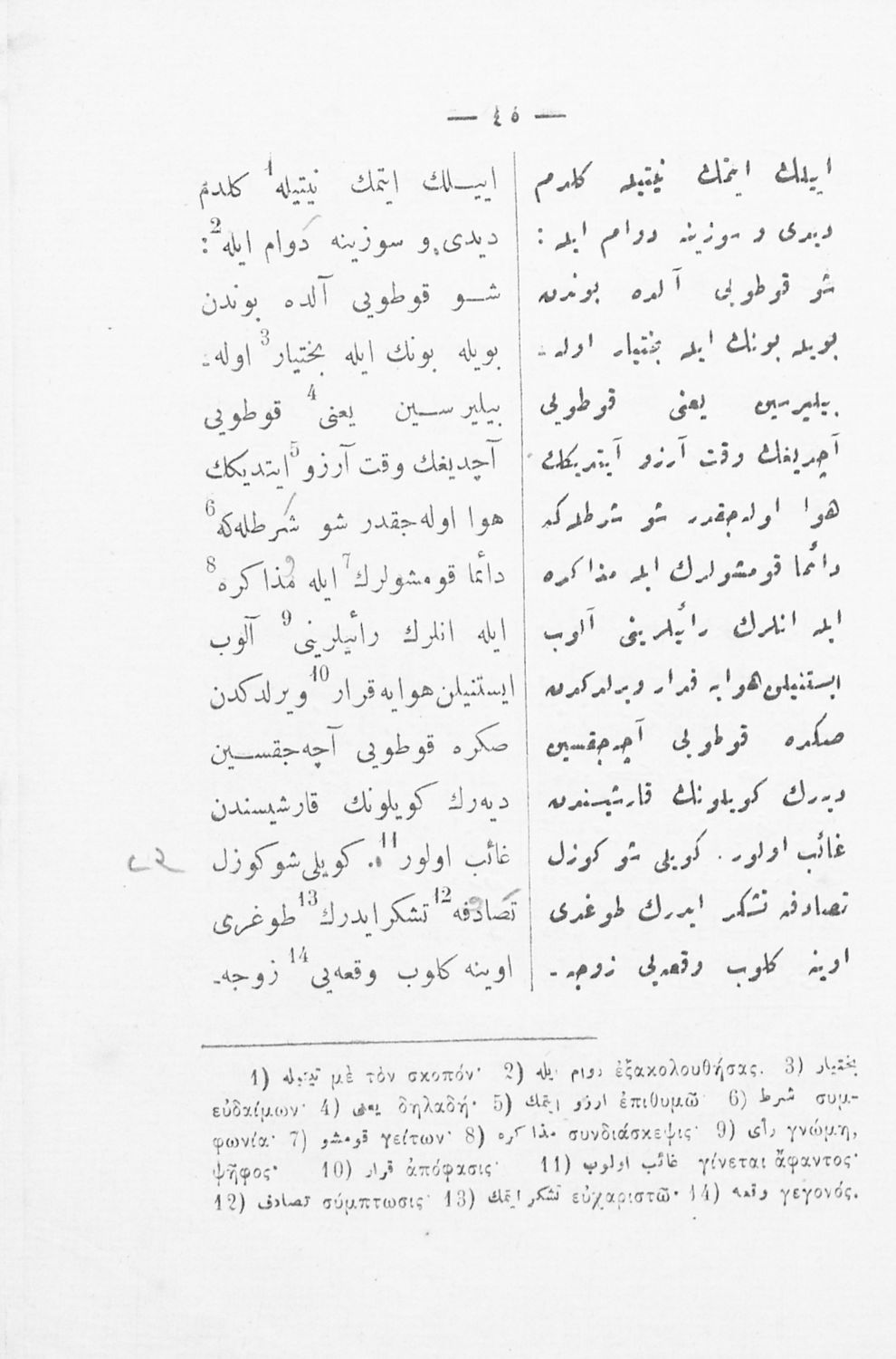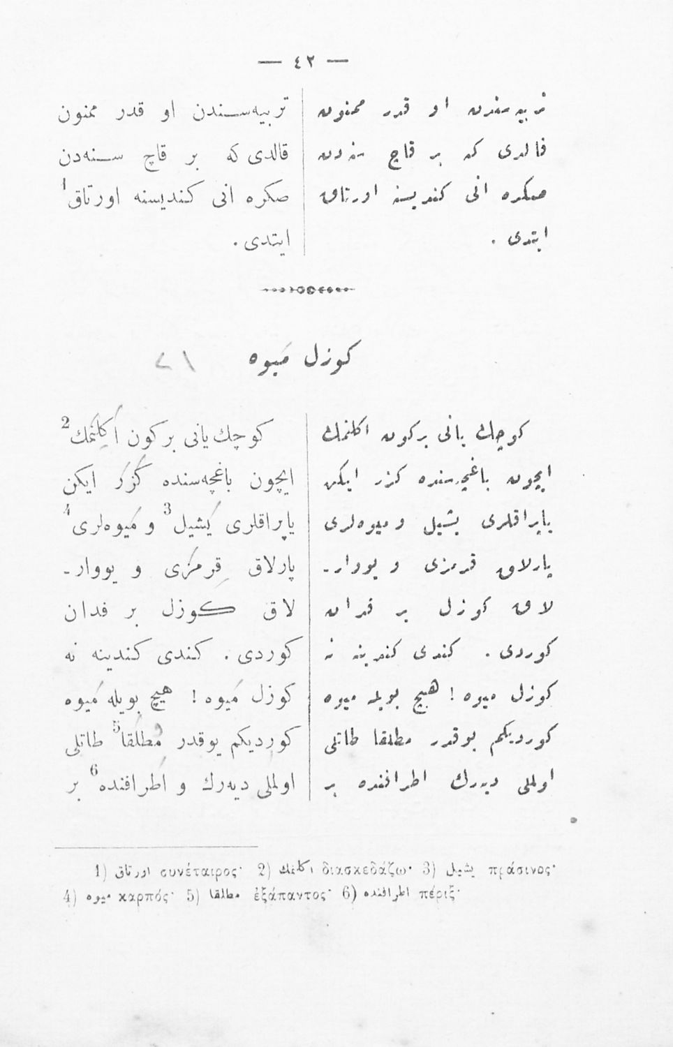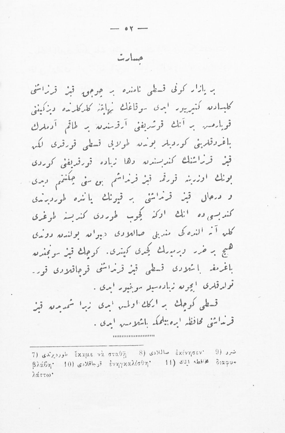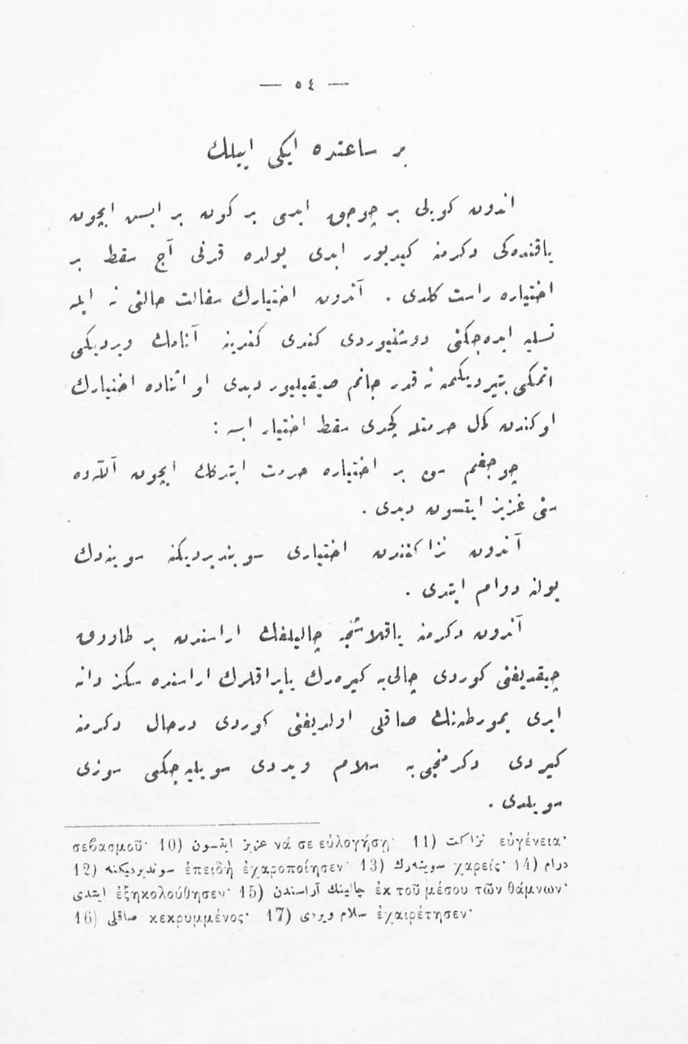 Σχολικό εγχειρίδιο το οποίο προοριζόταν για τη διδασκαλία της ανάγνωσης και κατανόησης της Τουρκικής γλώσσας από τους ομογενείς σπουδαστές πρώτου και δεύτερου έτους στην Κωνσταντινούπολη. Το βιβλίο περιέχει κείμενα γραμμένα στην Τουρκική γλώσσα και τα οποία συνοδεύονται από γλωσσικά και ερμηνευτικά σχόλια.