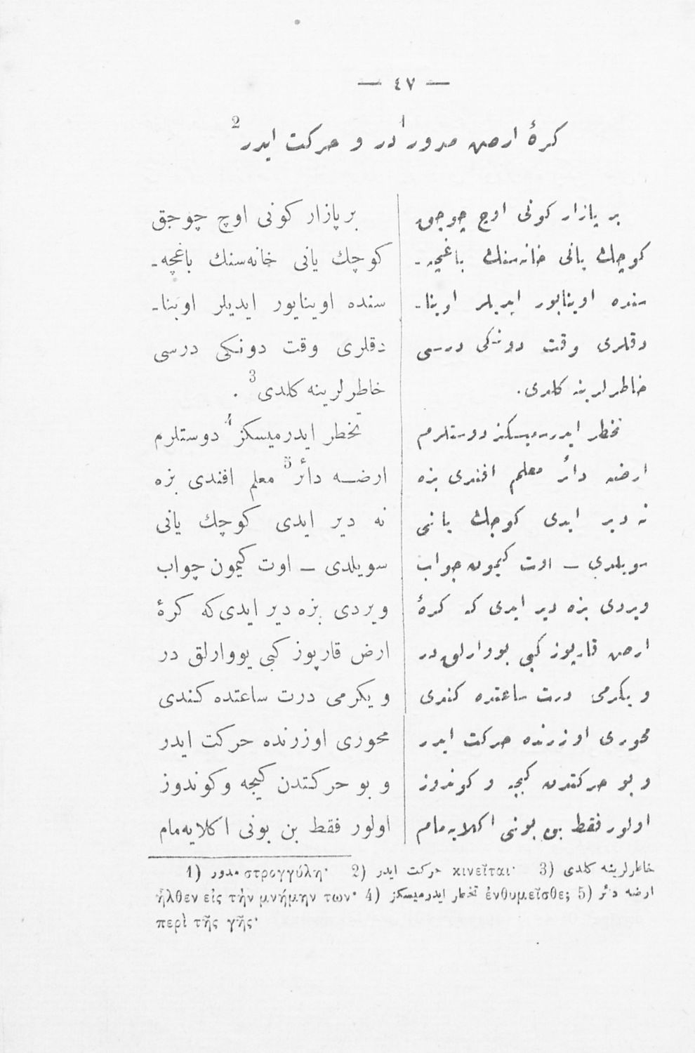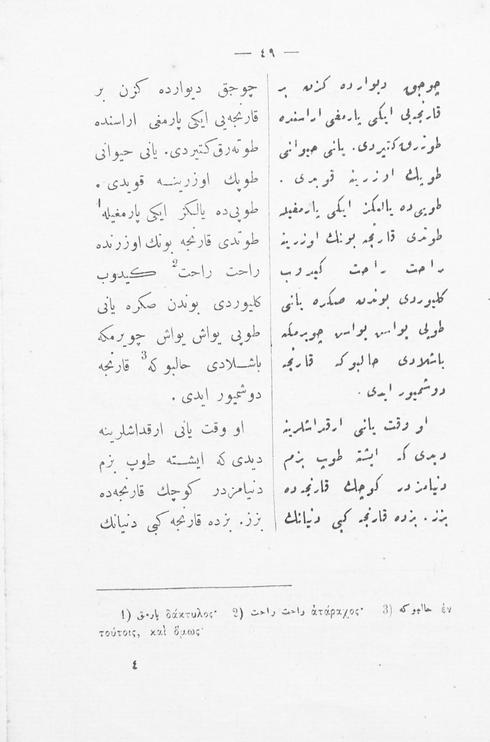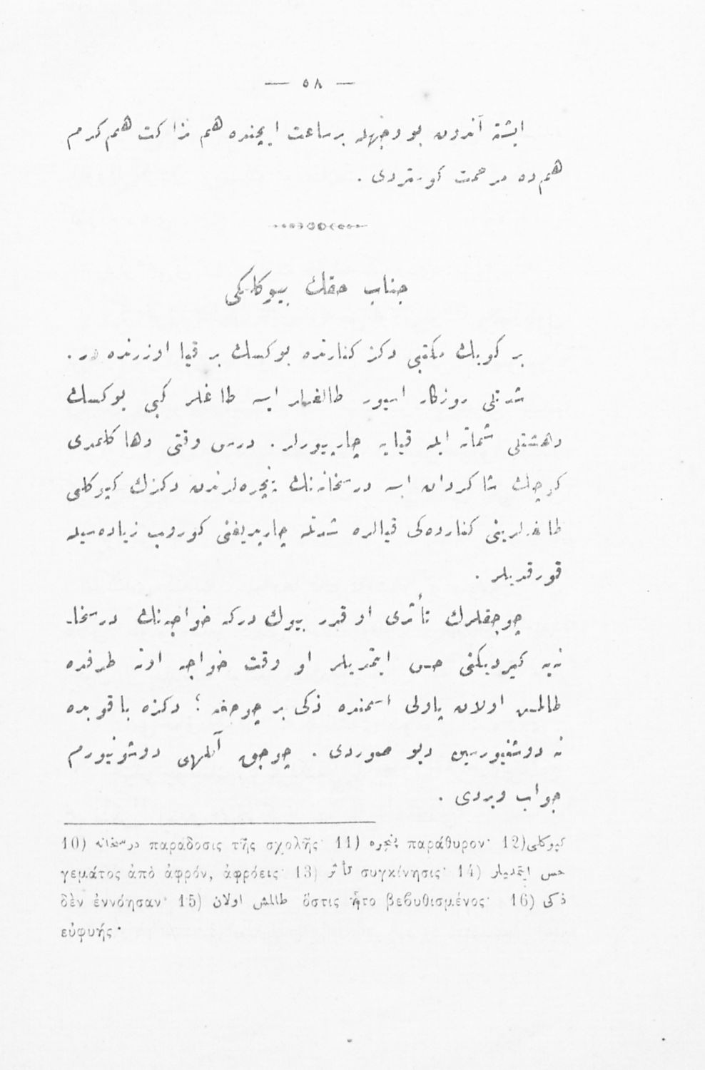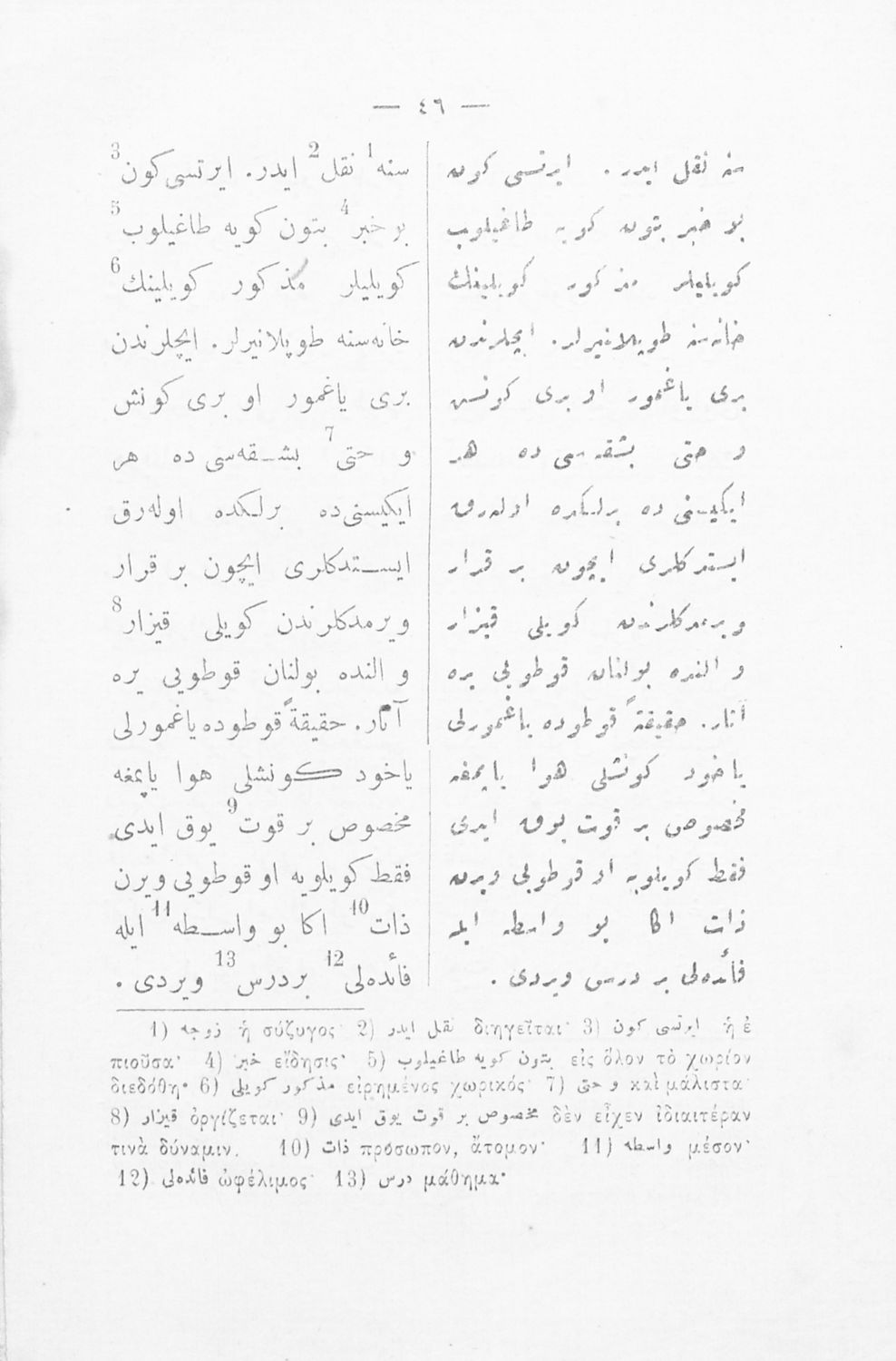 Σχολικό εγχειρίδιο το οποίο προοριζόταν για τη διδασκαλία της ανάγνωσης και κατανόησης της Τουρκικής γλώσσας από τους ομογενείς σπουδαστές πρώτου και δεύτερου έτους στην Κωνσταντινούπολη. Το βιβλίο περιέχει κείμενα γραμμένα στην Τουρκική γλώσσα και τα οποία συνοδεύονται από γλωσσικά και ερμηνευτικά σχόλια.