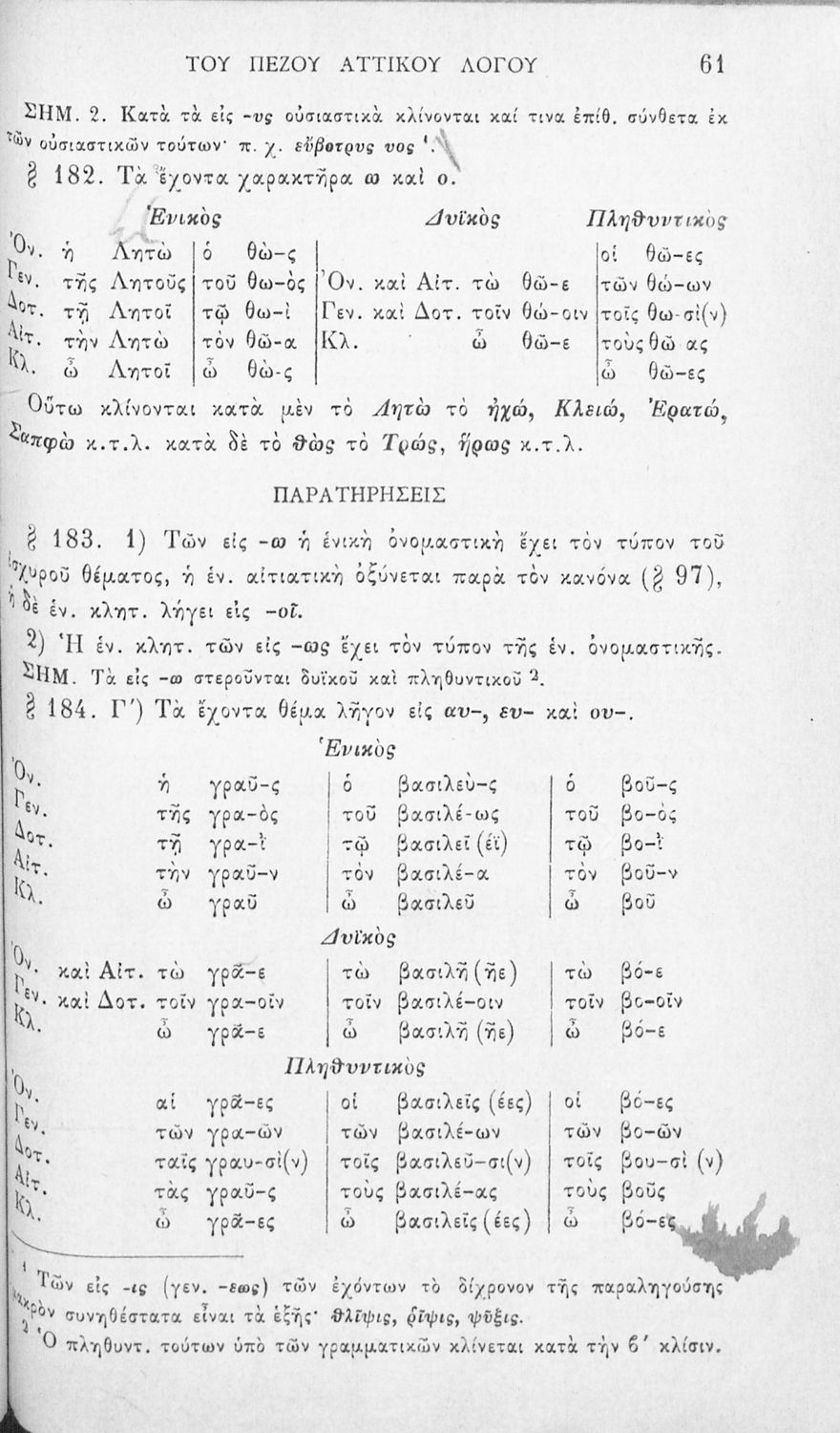 Σχολικό εγχειρίδιο Αρχαίων Ελληνικών για τα Ελληνικά Σχολεία και Παρθεναγωγεία που αποτελεί γραμματική της αρχαίας ελληνικής και είναι χωρισμένο σε φθογγολογικό, τυπολογικό και ετυμολογικό μέρος.