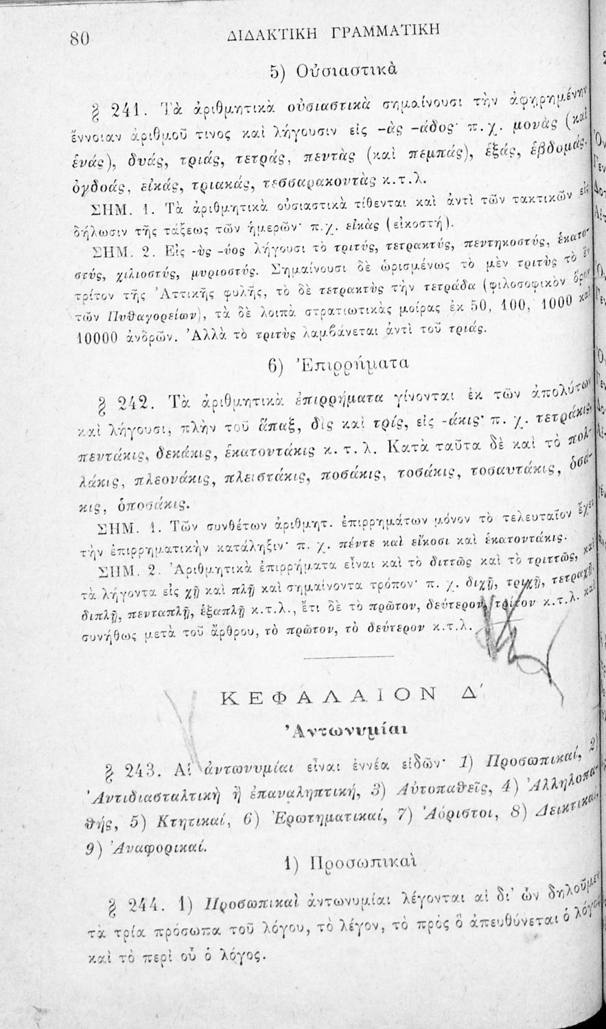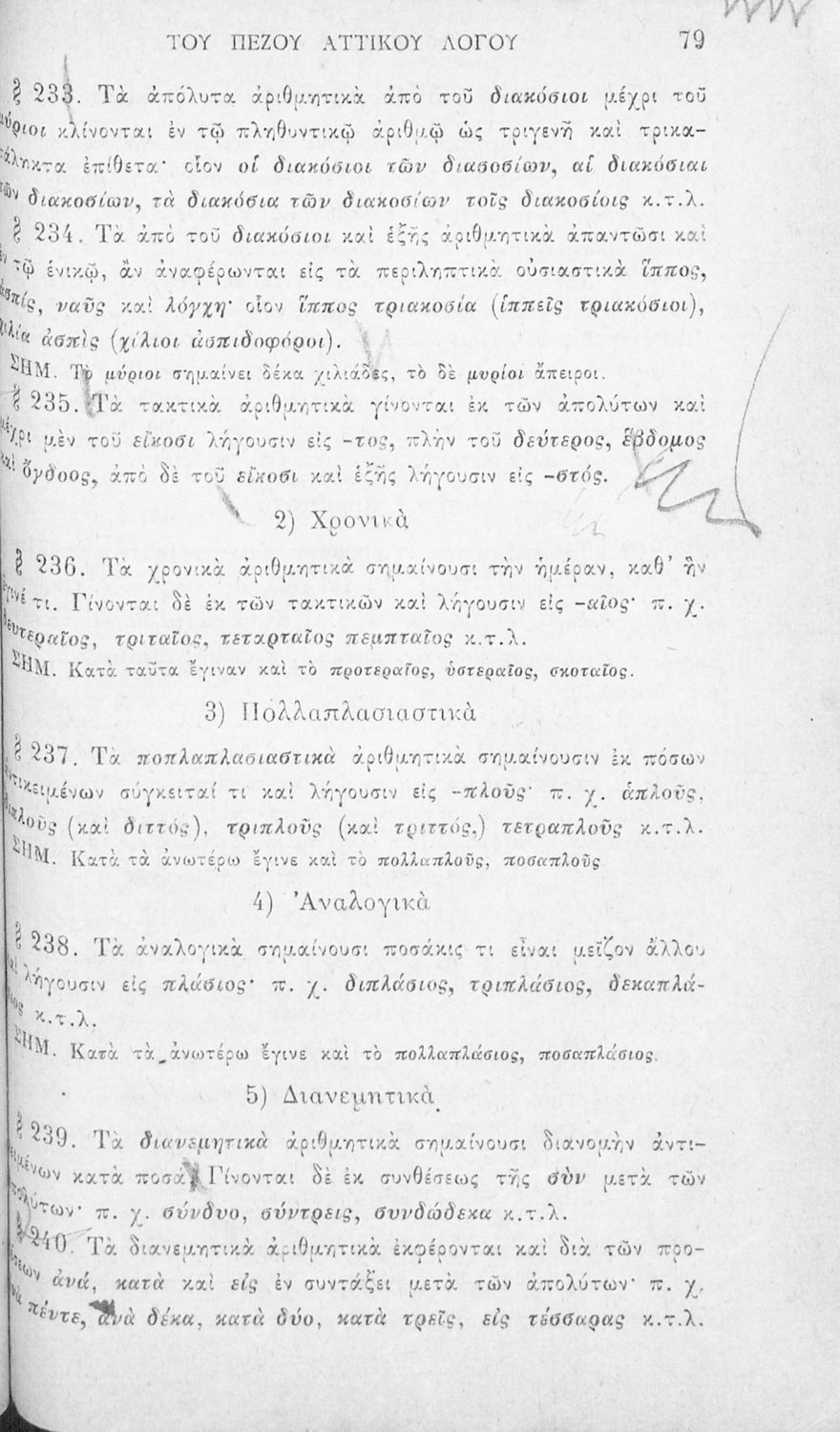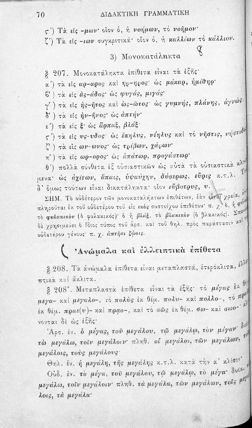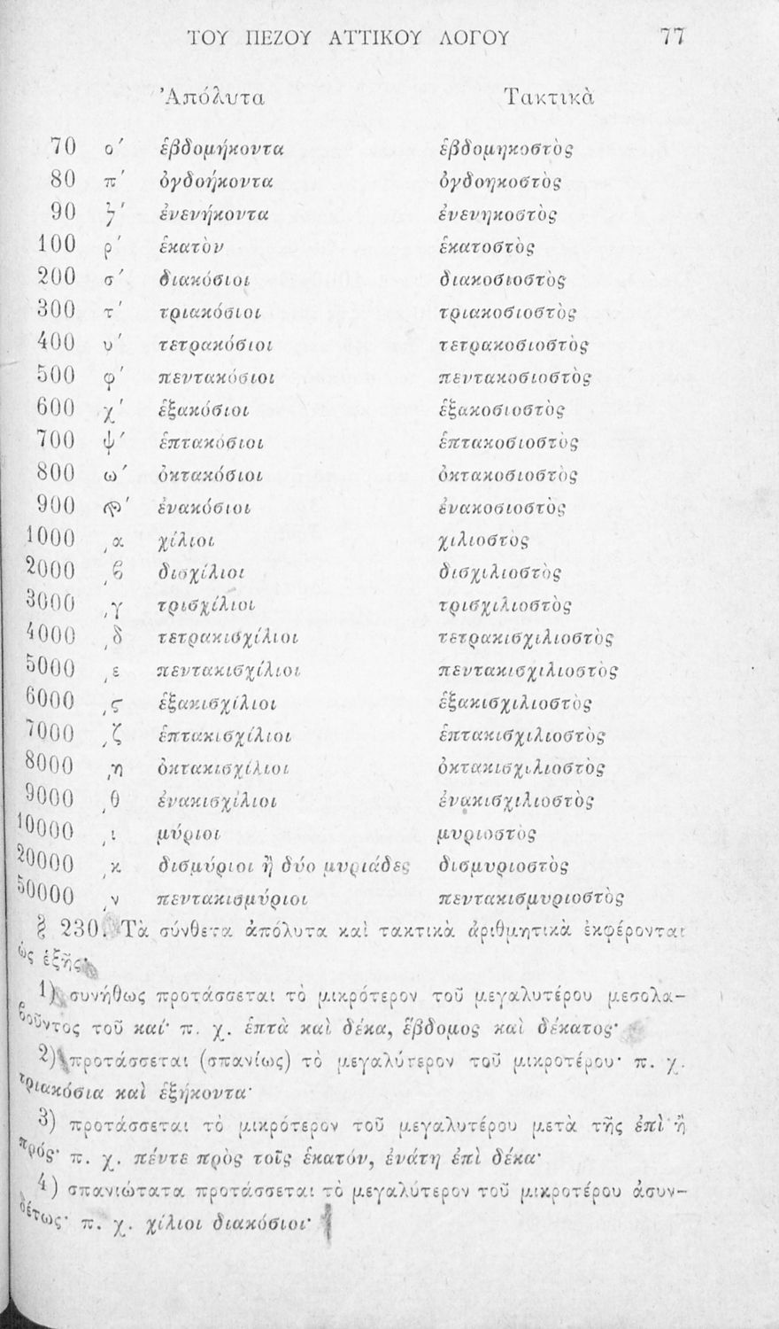 Σχολικό εγχειρίδιο Αρχαίων Ελληνικών για τα Ελληνικά Σχολεία, Παρθεναγωγεία και Γυμνάσια που περιέχει τους κανόνες γραμματικής και είναι χωρισμένο σε φθογγολογικό, τυπολογικό και ετυμολογικό μέρος.