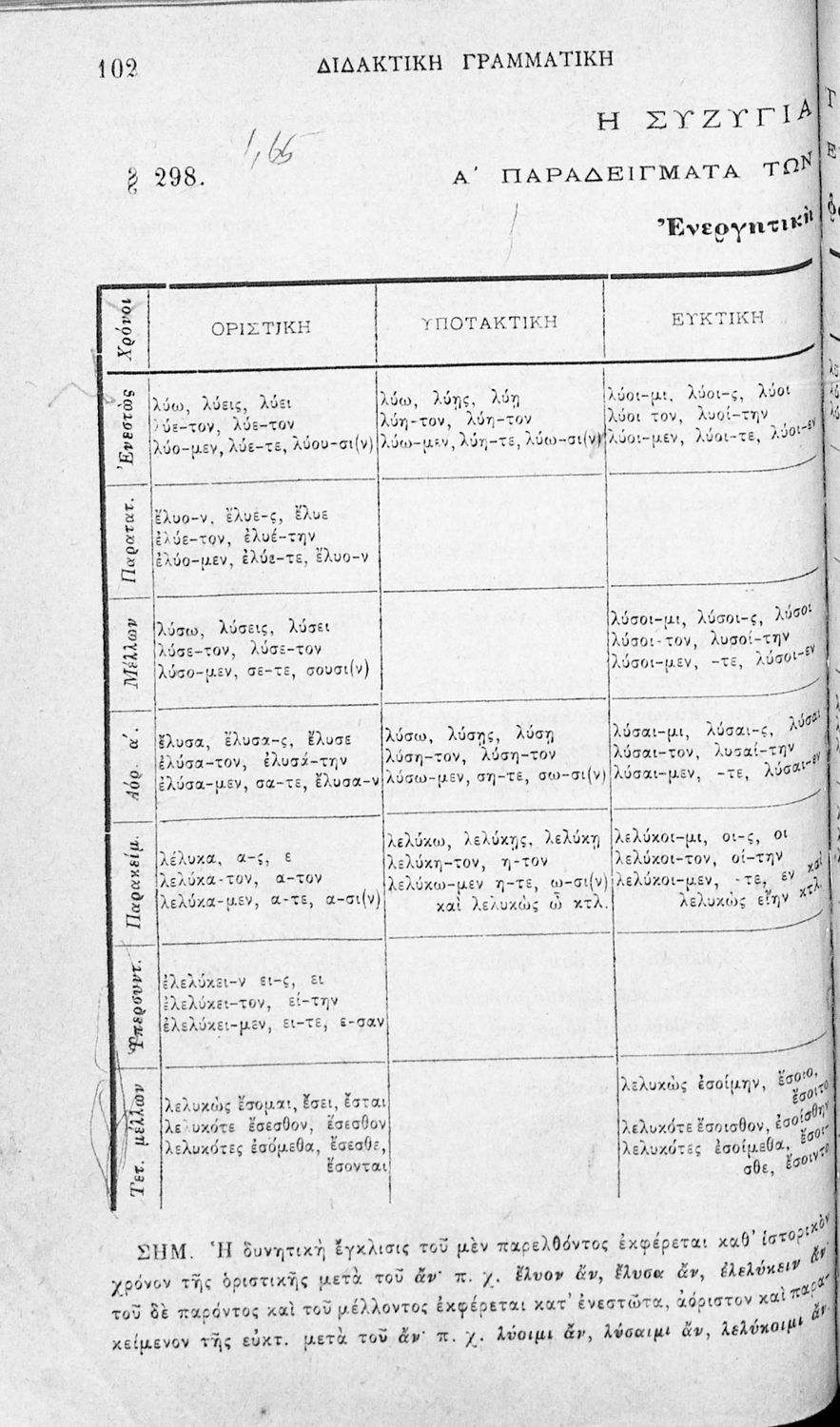 Βαθμίδα εκπαίδευσης: Δευτεροβάθμια Τάξη: Ελληνικό Σχολείο / Παρθεναγωγείο Μάθημα: Αρχαία Ελληνικά Γλώσσα: Καθαρεύουσα Παρουσίαση περιεχομένου: Σχολικό εγχειρίδιο Αρχαίων Ελληνικών για τα Ελληνικά Σχολεία και Παρθεναγωγεία που αποτελεί γραμματική της αρχαίας ελληνικής και είναι χωρισμένο στο φθογγολογικό και το τυπολογικό μέρος. |