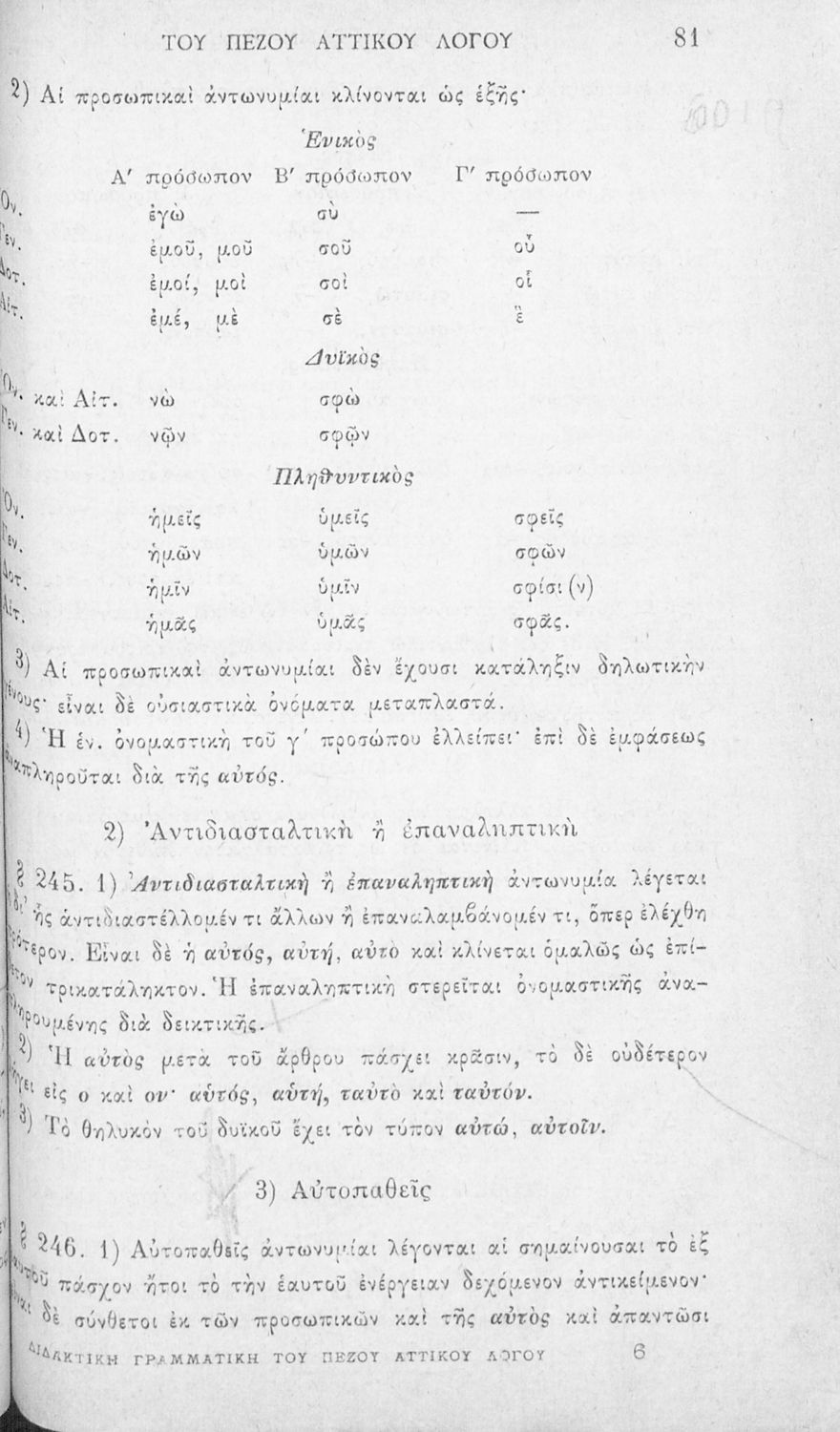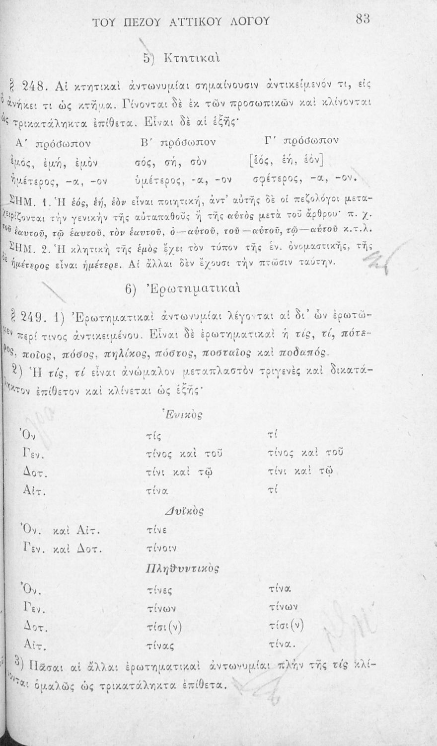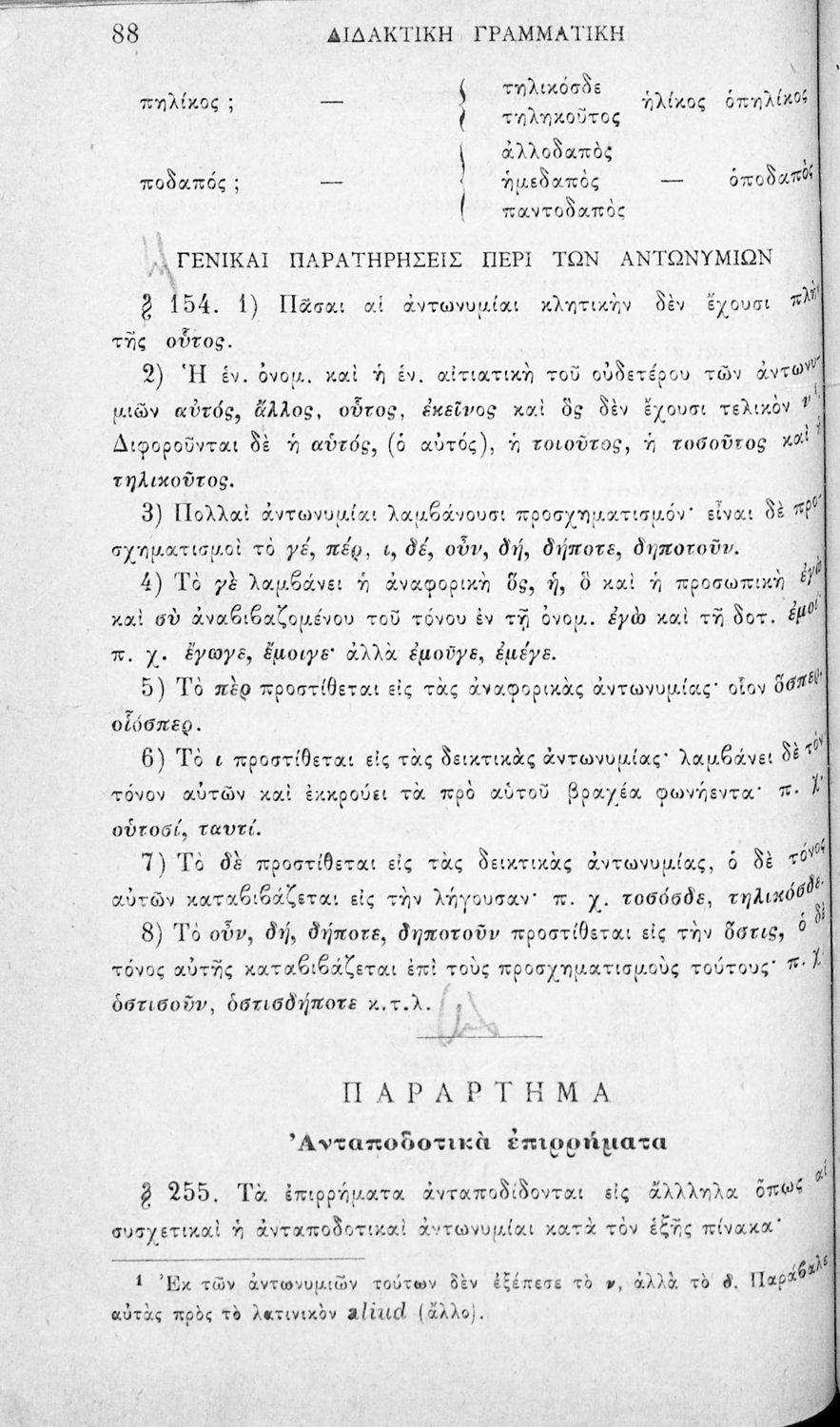 Σχολικό εγχειρίδιο Αρχαίων Ελληνικών για τα Ελληνικά Σχολεία και Παρθεναγωγεία που αποτελεί γραμματική της αρχαίας ελληνικής και είναι χωρισμένο στο φθογγολογικό και το τυπολογικό μέρος.