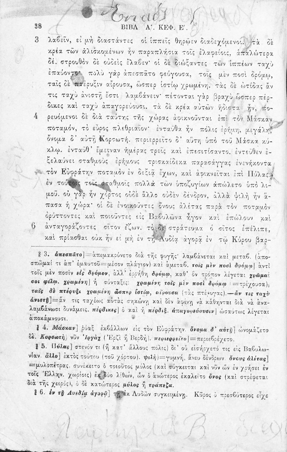 Ελληνική χρηστομάθεια τόμος Β΄ Ξενοφώντος Κύρου Ανάβασις προς χρήσιν των εν τοις Ελληνικοίς Σχολείοις Παρθεναγωγείοις και Γυμνασίοις μαθητών βιβλίον πρώτον και δεύτερον μετά σημειώσεων και πίνακος χρονολογικού