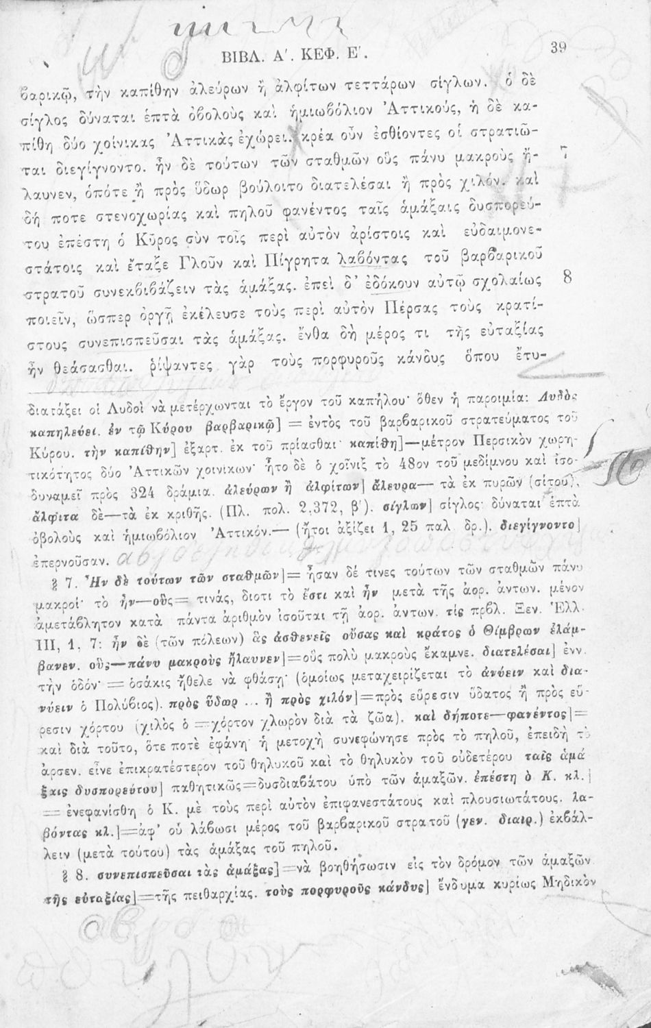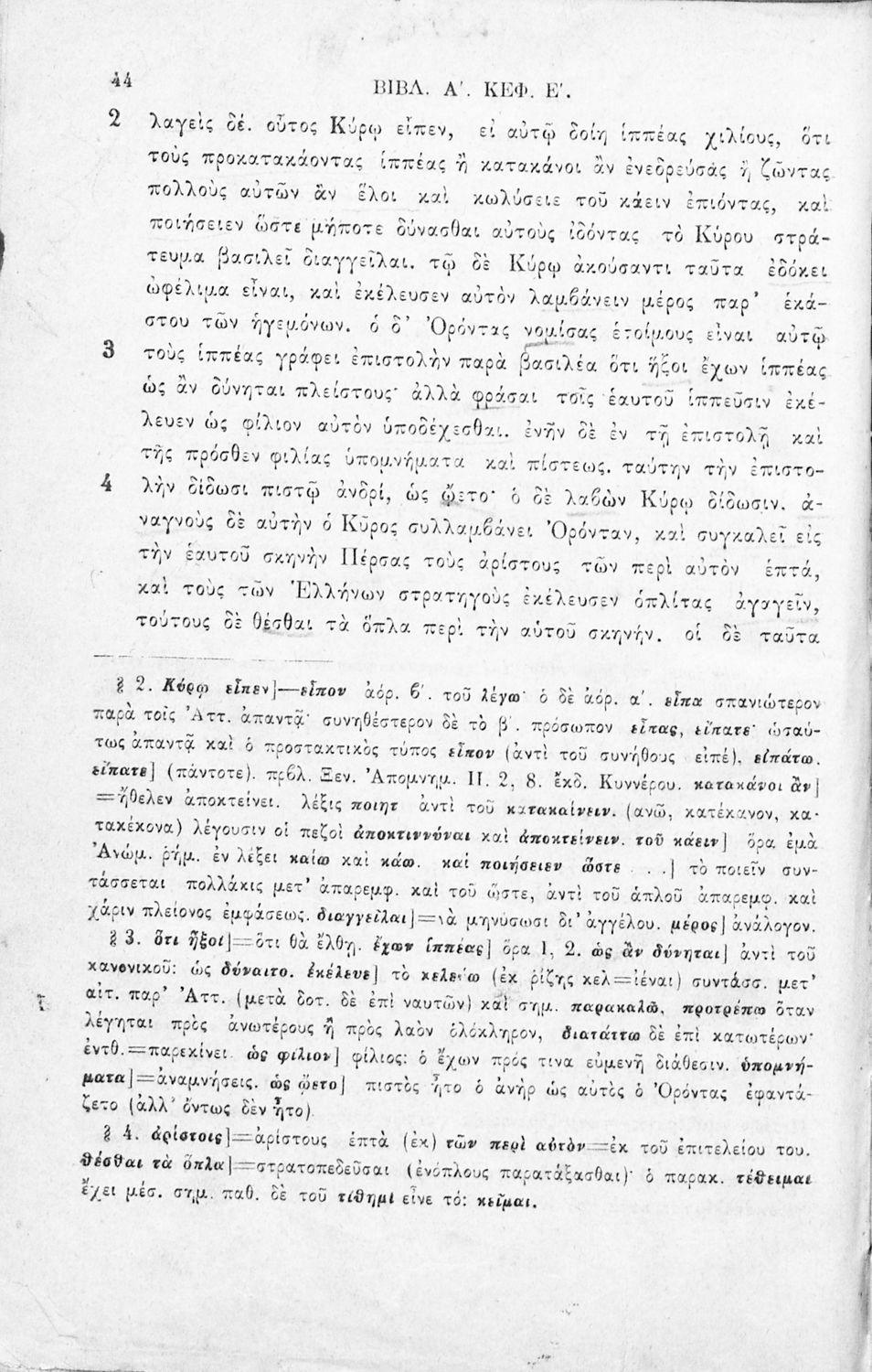 Σχολικό εγχειρίδιο Αρχαίων Ελληνικών για τα Ελληνικά Σχολεία και γυμνάσια που περιλαμβάνει το έργο του Ξενοφώντα Κύρου Ανάβασις, και ερμηνευτικές παρατηρήσεις.