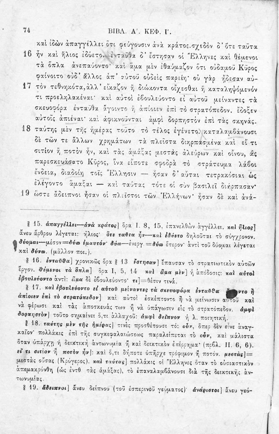 Σχολικό εγχειρίδιο Αρχαίων Ελληνικών για τα Ελληνικά Σχολεία, Γυμνάσια και Παρθεναγωγεία που περιλαμβάνει αποσπάσματα από το έργο του Ξενοφώντα Κύρου Ανάβασις, και λεξικογραφικές παρατηρήσεις.