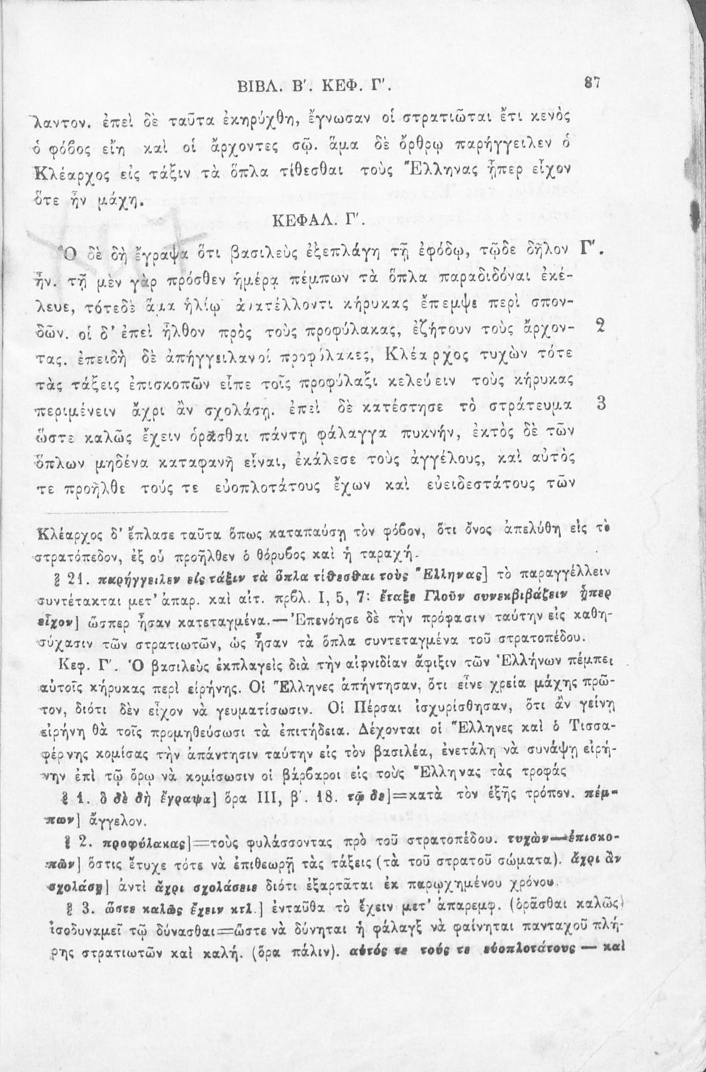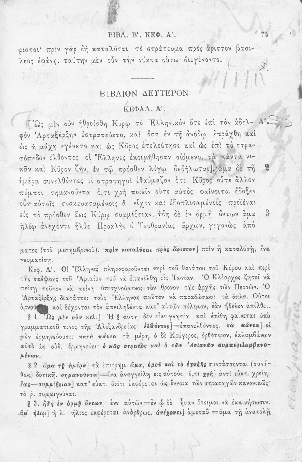 Ελληνική χρηστομάθεια τόμος Β΄ Ξενοφώντος Κύρου Ανάβασις προς χρήσιν των εν τοις Ελληνικοίς Σχολείοις Παρθεναγωγείοις και Γυμνασίοις μαθητών βιβλίον πρώτον και δεύτερον μετά σημειώσεων και πίνακος χρονολογικού