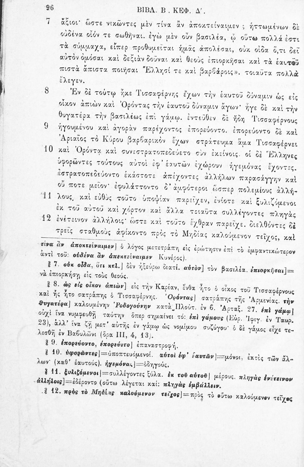 Σχολικό εγχειρίδιο Αρχαίων Ελληνικών για τα Ελληνικά Σχολεία και Παρθεναγωγεία που περιλαμβάνει αποσπάσματα από το έργο του Ξενοφώντα Κύρου Ανάβασις, και λεξικογραφικές παρατηρήσεις.