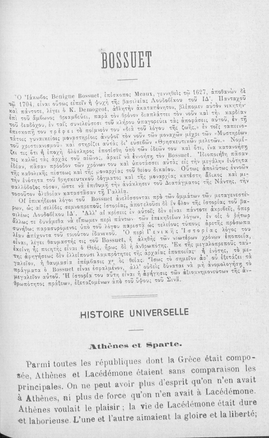 LDR 01194 2200205 4500 035 ## _a02-02352 040 ## _aΕλληνικό Λογοτεχνικό και Ιστορικό Αρχείο 041 ## _ael 100 ## _aΑ. Ζ. Στεφανόπολις 110 ## _a1890.227 245 0# _aΕκλογή τεμαχίων Γάλλων λογογράφων και ποιητών, τόμος τέταρτος, προς χρήσιν των μαθητών της Δ΄ τάξεως του Γυμνασίου 260 ## _aΑθήνα _bΑνέστης Κωνσταντινίδης _c1890 300 ## _a172 520 ## _aΣχολικό εγχειρίδιο Γαλλικών Δ΄ Γυμνασίου το οποίο εισάγει τους μαθητές στη γαλλική λογοτεχνία μέσω πεζών και ποιημάτων επιφανών Γάλλων συγγραφέων. Περιέχει και επεξηγηματικές και γλωσσικές σημειώσεις. 521 ## _aΔ' Γυμνασίου 522 ## _aΕλλάδα 546 ## _aΚαθαρεύουσα 563 ## _aΣκληρό Εξώφυλλο 583 ## _a16977/31-10-1884 650 #4 _aBossuet _aGautier _aHugo _aRenan _aVoltaire