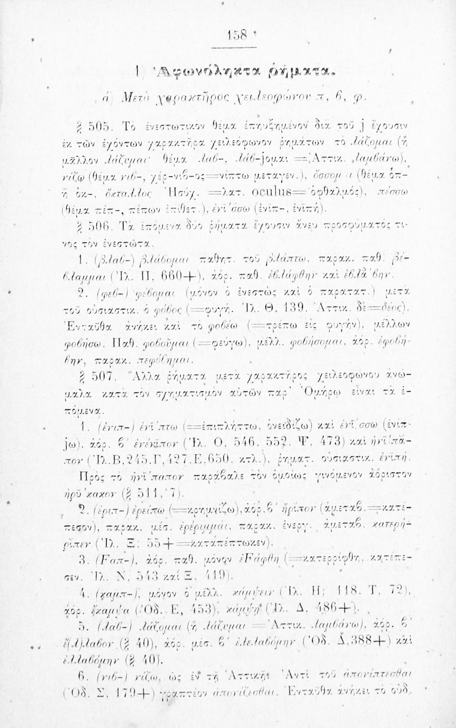 Σχολικό εγχειρίδιο Αρχαίων Ελληνικών Γυμνασίου που περιλαμβάνει τη γραμματική της αρχαίας ελληνικής και είναι χωρισμένο σε φθογγολογικό και τυπολογικό μέρος Περιέχει και κατάλογο ανωμάλων ρημάτων.