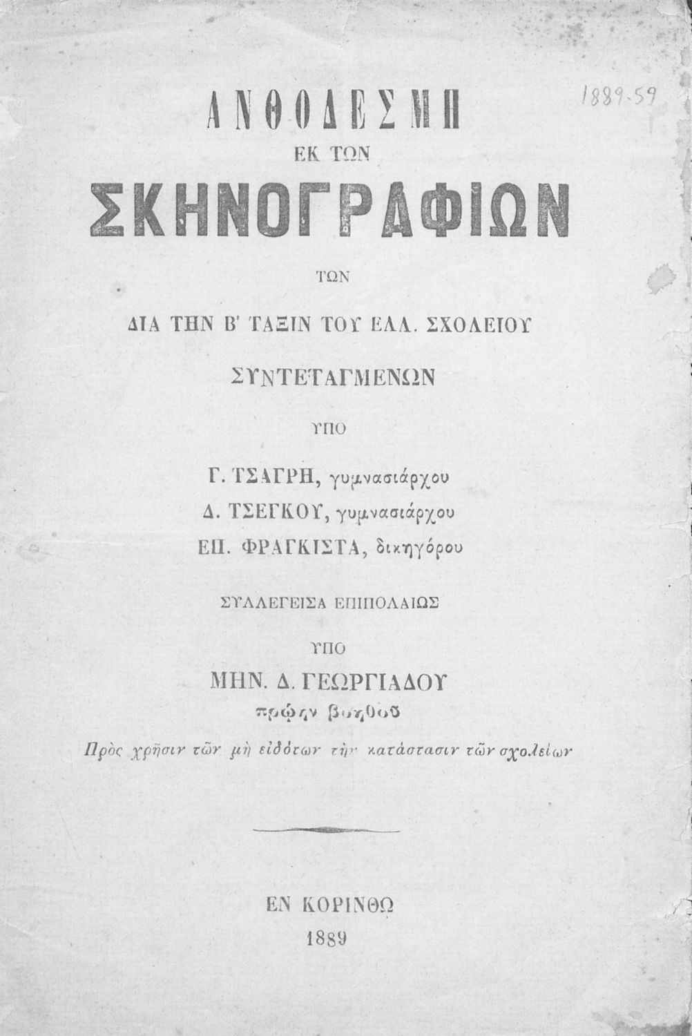 Έτος έκδοσης: 1889 Τόπος έκδοσης: Κόρινθος |