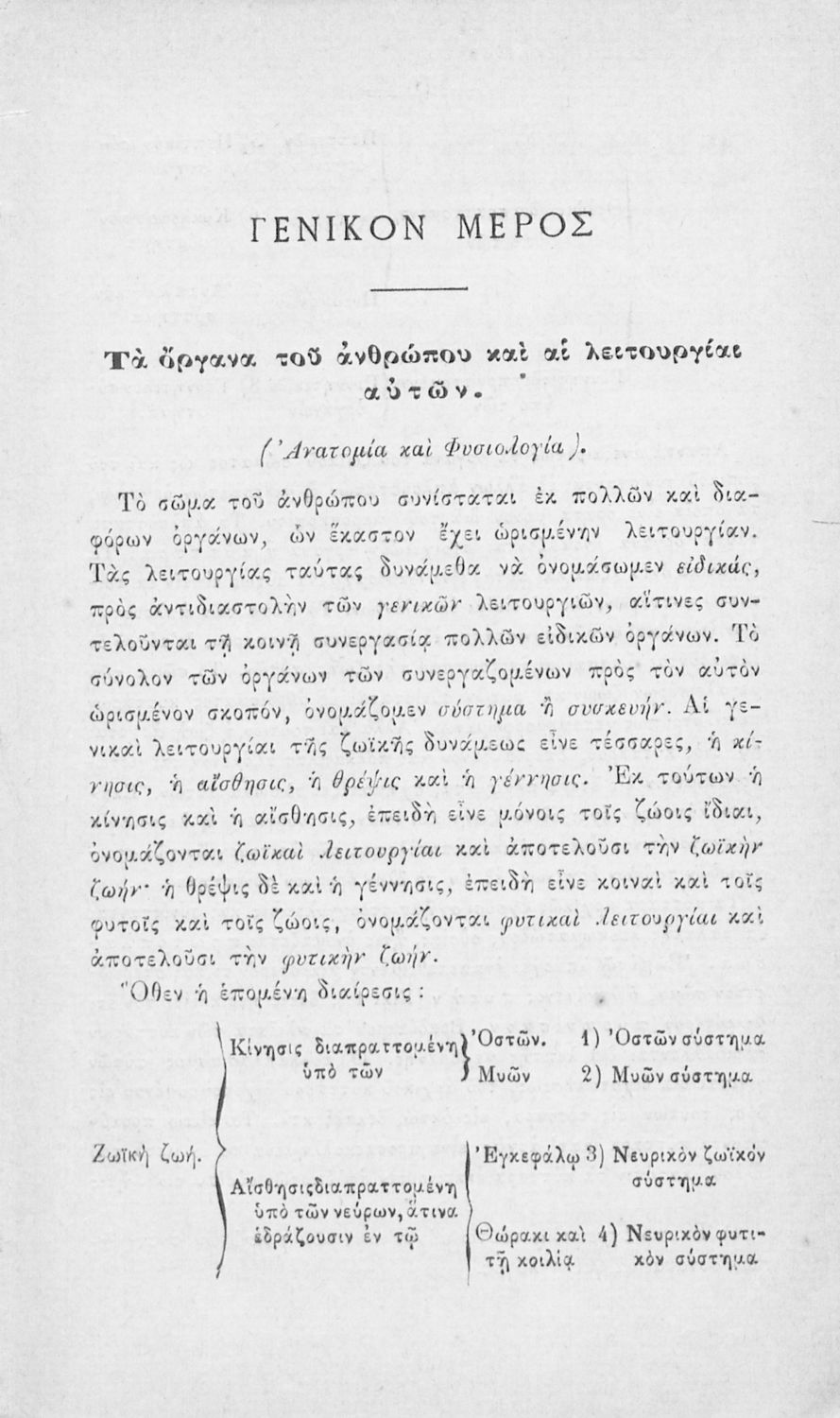 Σχολικό εγχειρίδιο Ζωολογίας των Γυμνασίων, Διδασκαλείων και Παρθεναγωγείων. Στο πρώτο μέρος του βιβλίου παρουσιάζεται η δομή του ανθρώπινου σώματος και τα διάφορα συστήματα του ανθρώπινου οργανισμού, όπως το ...