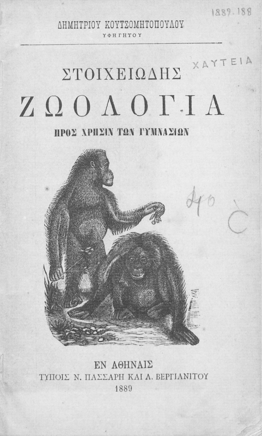 Τίτλος: Στοιχειώδης ζωολογία, προς χρήσιν των Γυμνασίων
