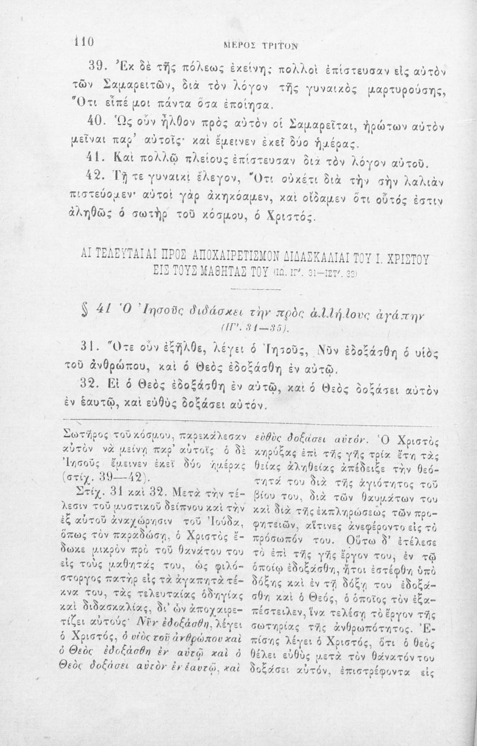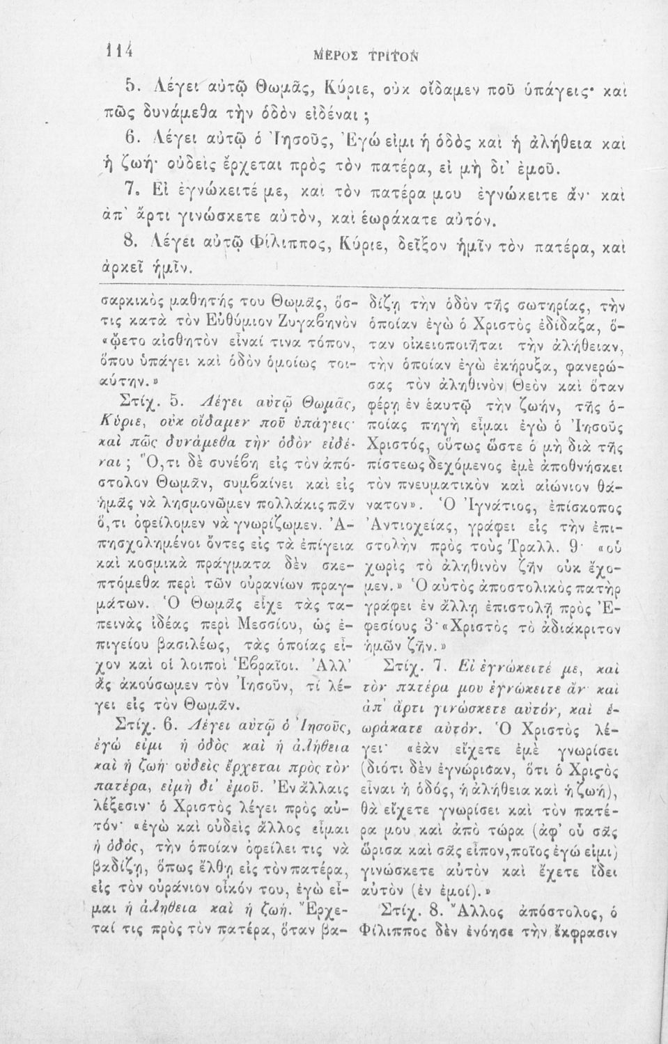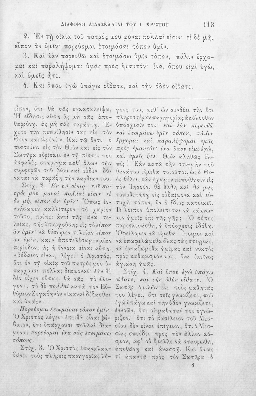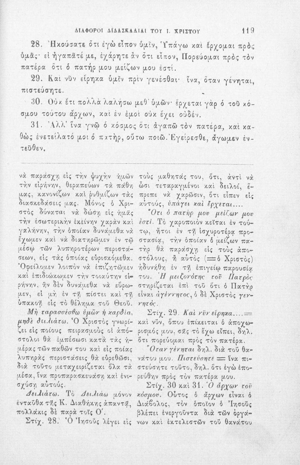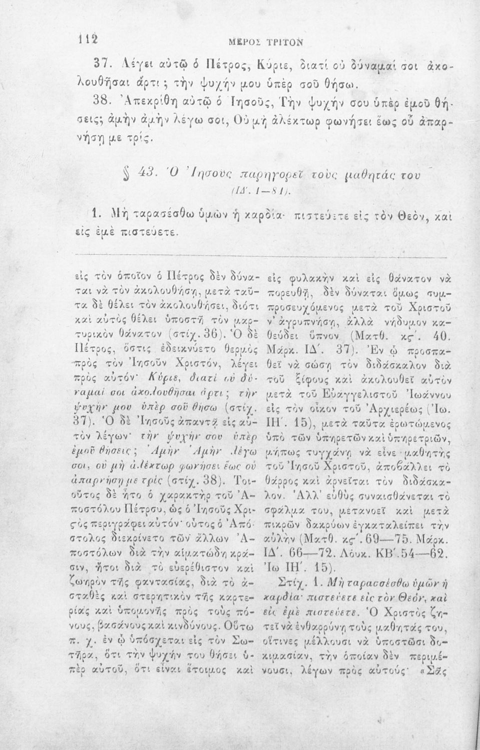 Βαθμίδα εκπαίδευσης: Δευτεροβάθμια Τάξη: Γυμνάσιο Μάθημα: Θρησκευτικά Γλώσσα: Καθαρεύουσα Παρουσίαση περιεχομένου: Σχολικό εγχειρίδιο Θρησκευτικών Γυμνασίου που εστιάζει στα κεφάλαια Ε΄, ΣΤ΄ και Ζ΄ από το Κατά Ματθαίον Ευαγγέλιο, τις παραβολές του Ιησού Χριστού και τις αποχαιρετιστήριες διδασκαλίες του ως προς τους μαθητές του. |