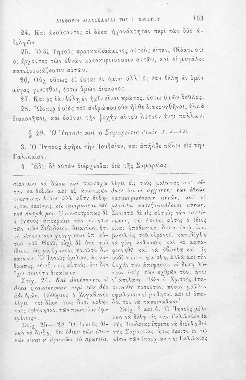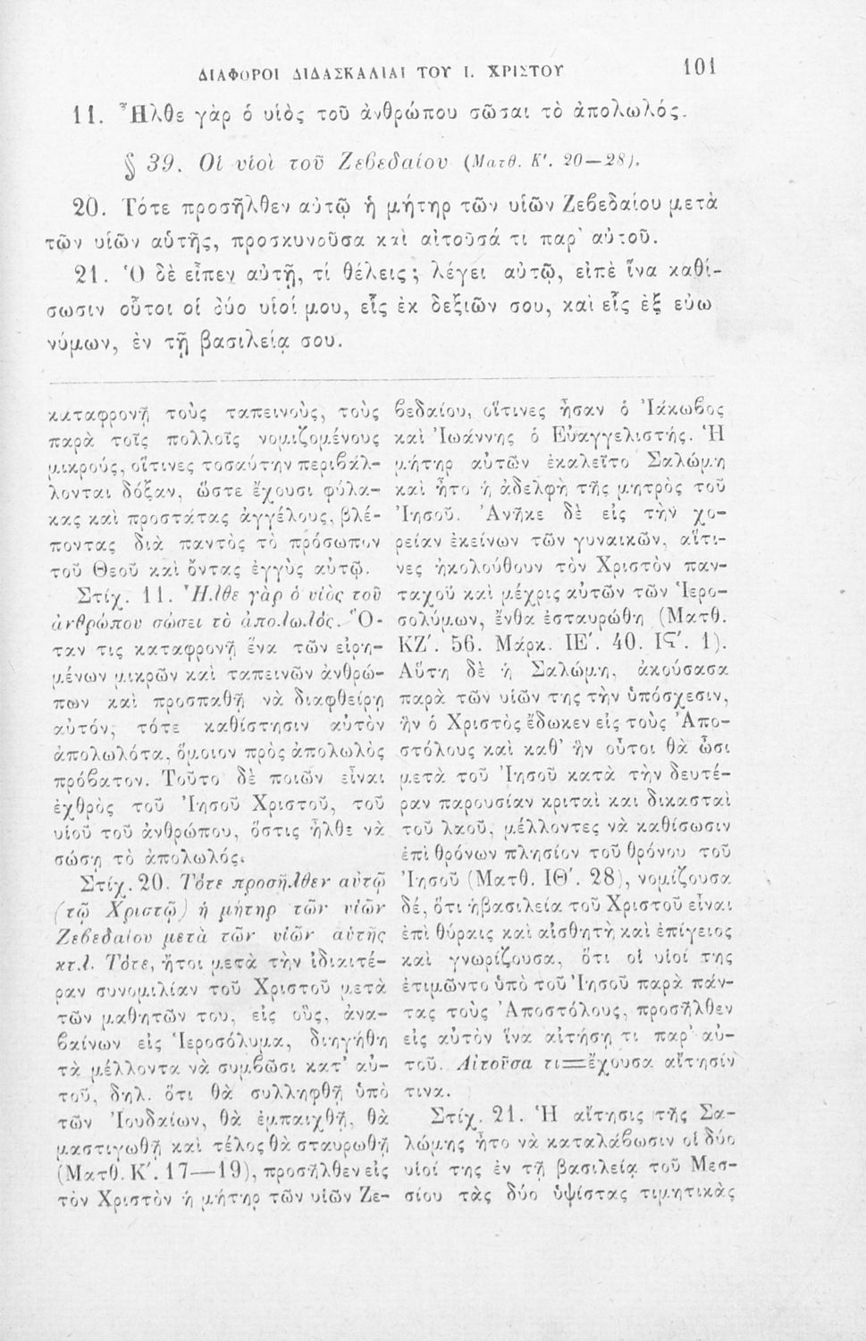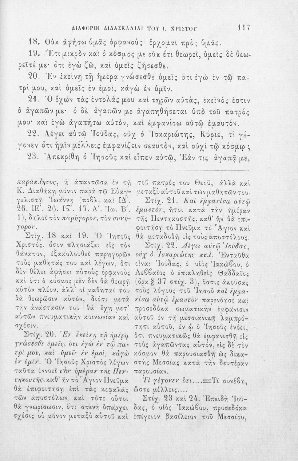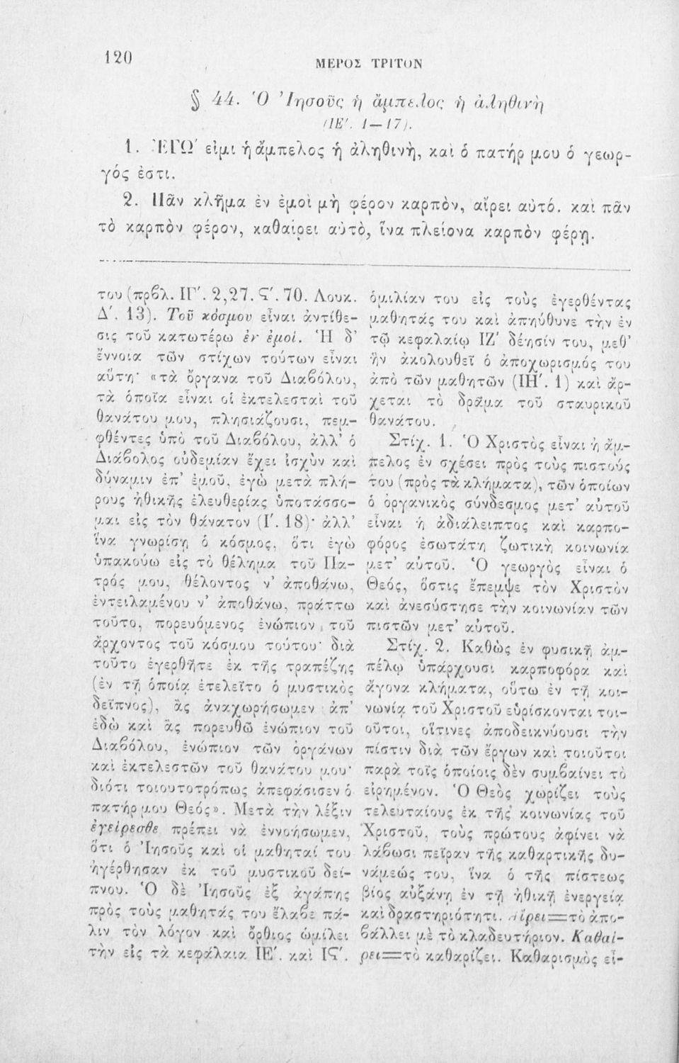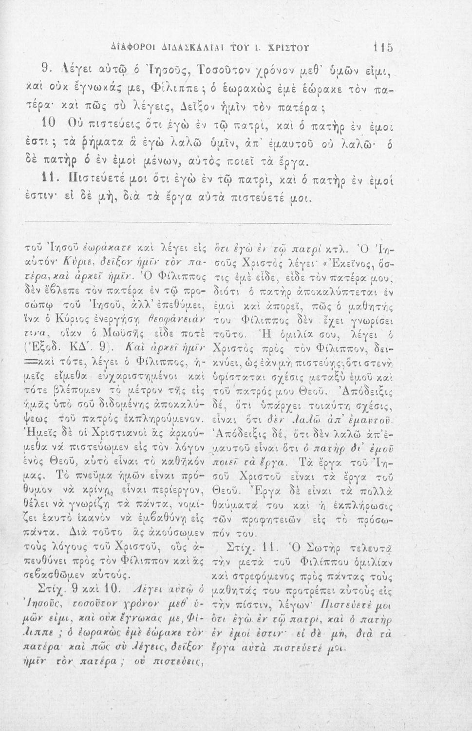 Βαθμίδα εκπαίδευσης: Δευτεροβάθμια Τάξη: Γυμνάσιο Μάθημα: Θρησκευτικά Γλώσσα: Καθαρεύουσα Παρουσίαση περιεχομένου: Σχολικό εγχειρίδιο Θρησκευτικών Γυμνασίου που εστιάζει στα κεφάλαια Ε΄, ΣΤ΄ και Ζ΄ από το Κατά Ματθαίον Ευαγγέλιο, τις παραβολές του Ιησού Χριστού και τις αποχαιρετιστήριες διδασκαλίες του ως προς τους μαθητές του. |