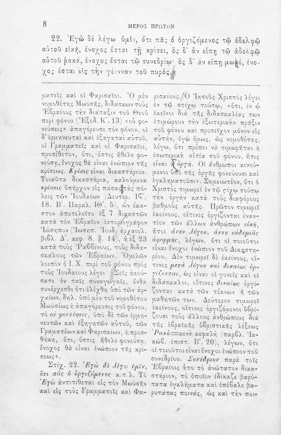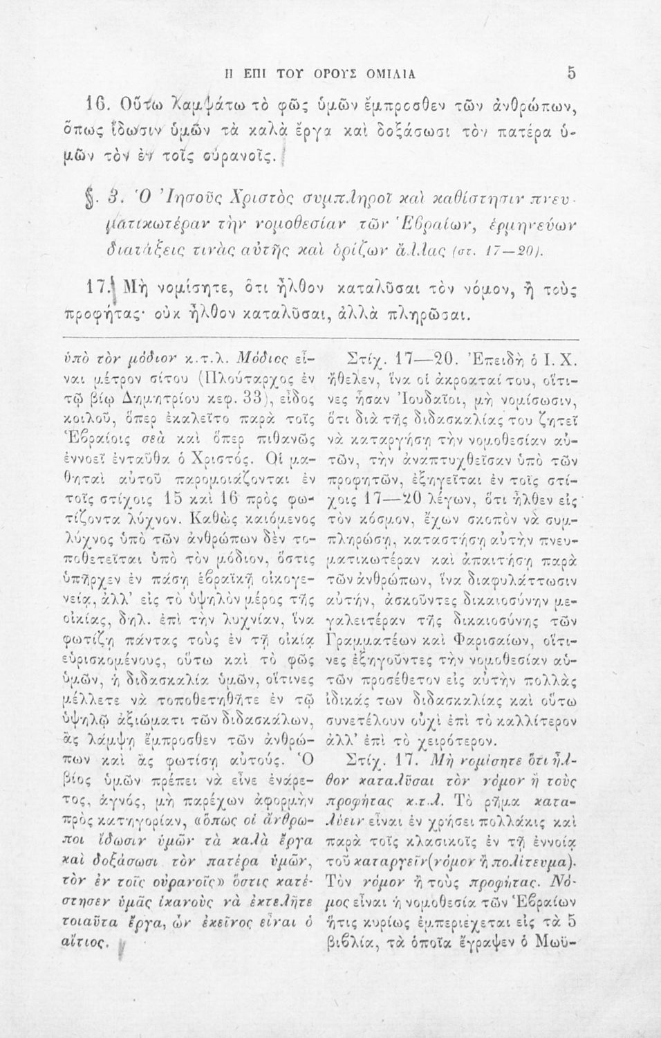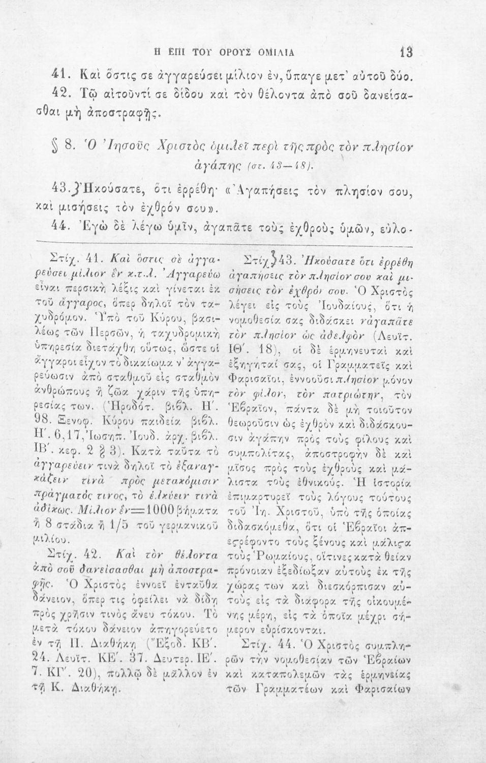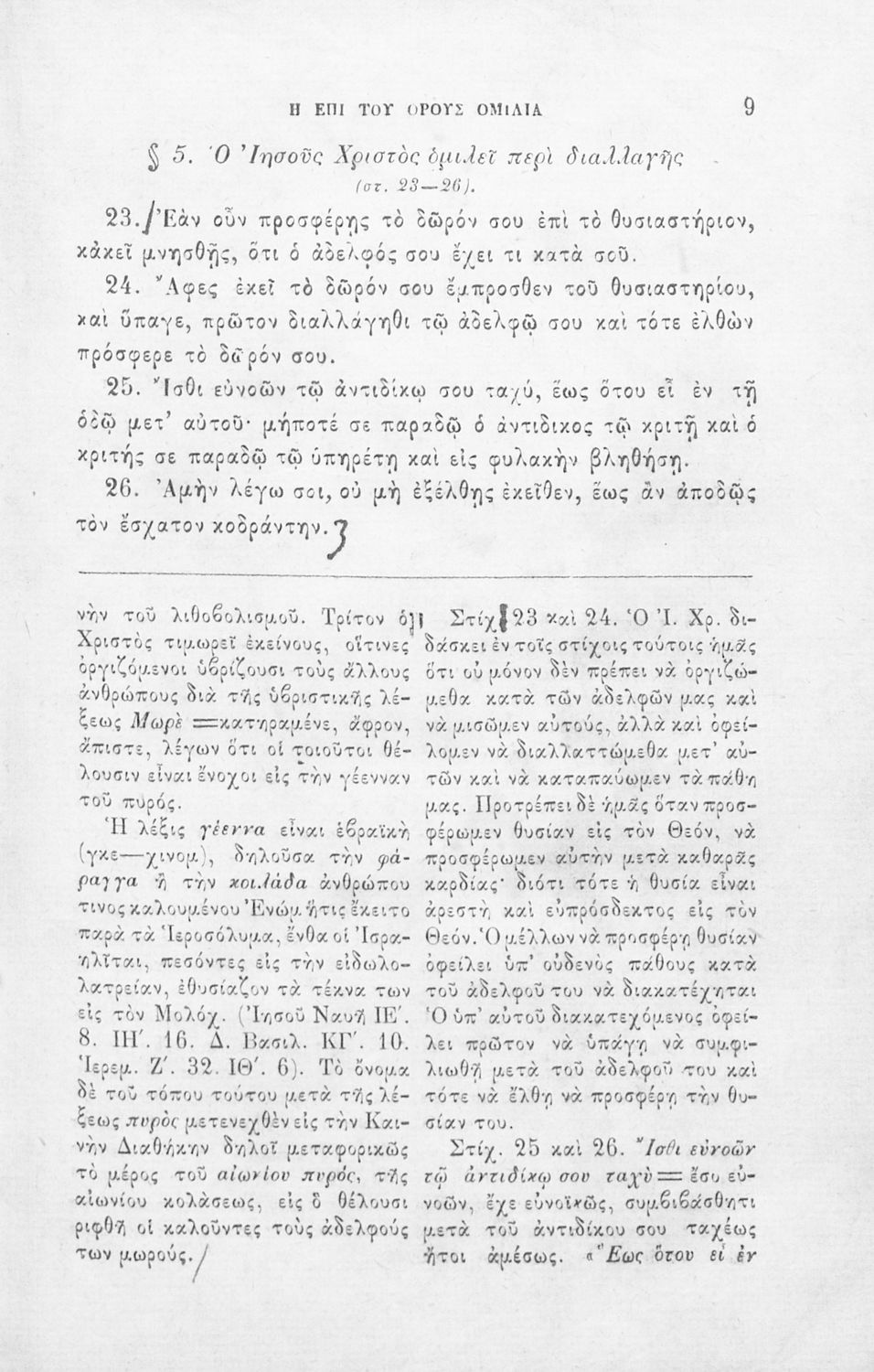 Βαθμίδα εκπαίδευσης: Δευτεροβάθμια Τάξη: Γυμνάσιο Μάθημα: Θρησκευτικά Γλώσσα: Καθαρεύουσα Παρουσίαση περιεχομένου: Σχολικό εγχειρίδιο Θρησκευτικών Γυμνασίου που εστιάζει στα κεφάλαια Ε΄, ΣΤ΄ και Ζ΄ από το Κατά Ματθαίον Ευαγγέλιο, τις παραβολές του Ιησού Χριστού και τις αποχαιρετιστήριες διδασκαλίες του ως προς τους μαθητές του. |