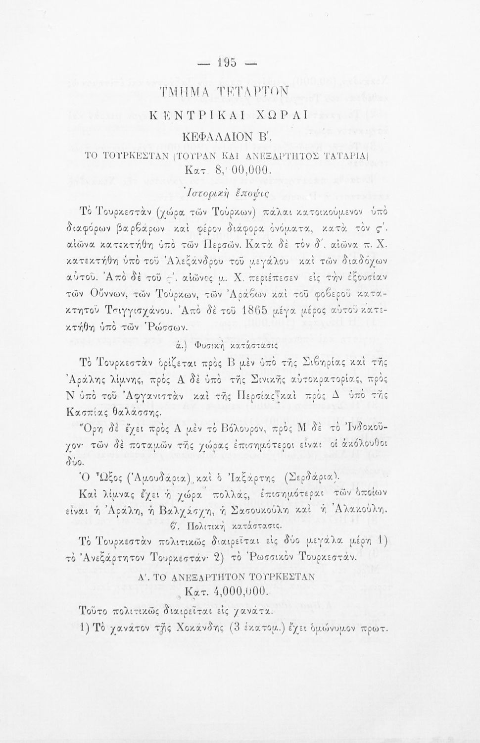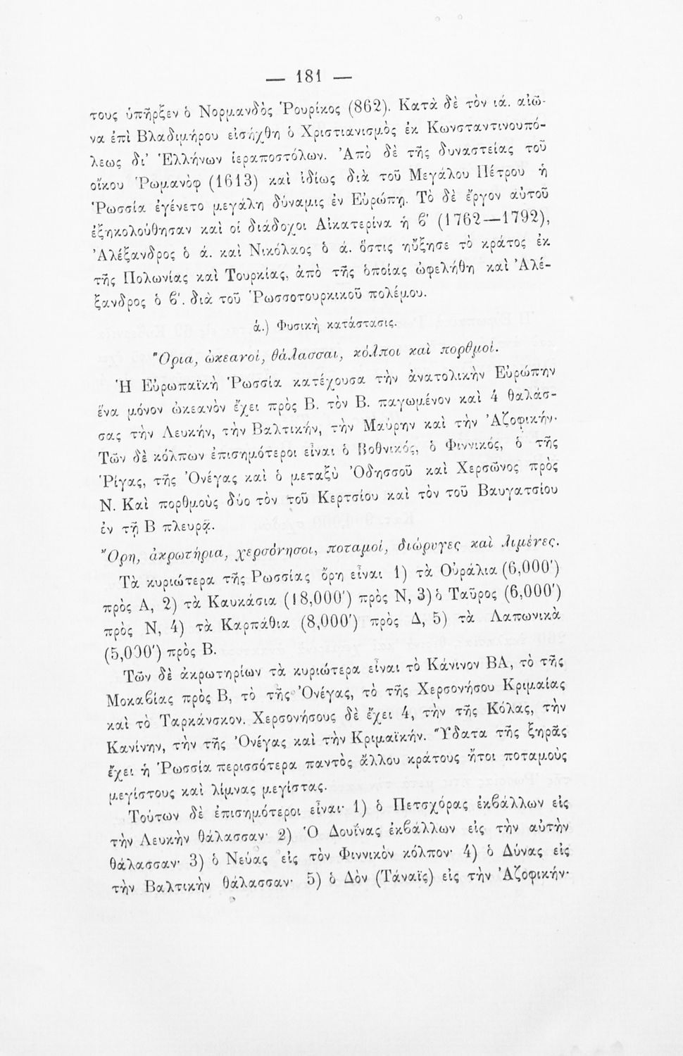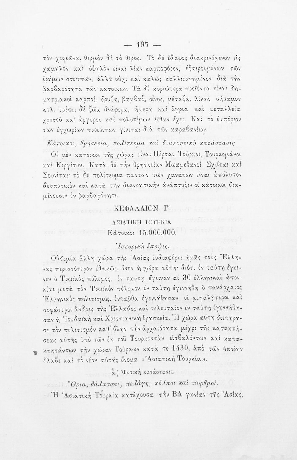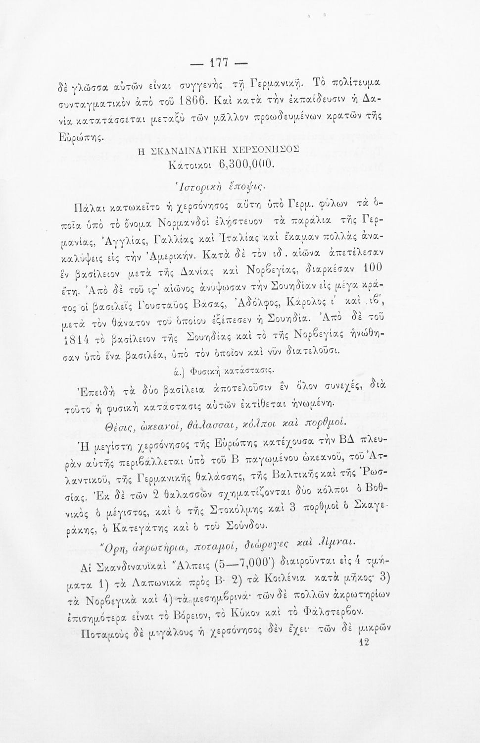Σχολικό εγχειρίδιο Γεωγραφίας για τα Ελληνικά Σχολεία και Παρθεναγωγεία που περιλαμβάνει εισαγωγή στην φυσική γεωγραφία και γεωλογία, και μια γενική επισκόπηση της πολιτικής, οικονομικής και φυσικής γεωγραφίας