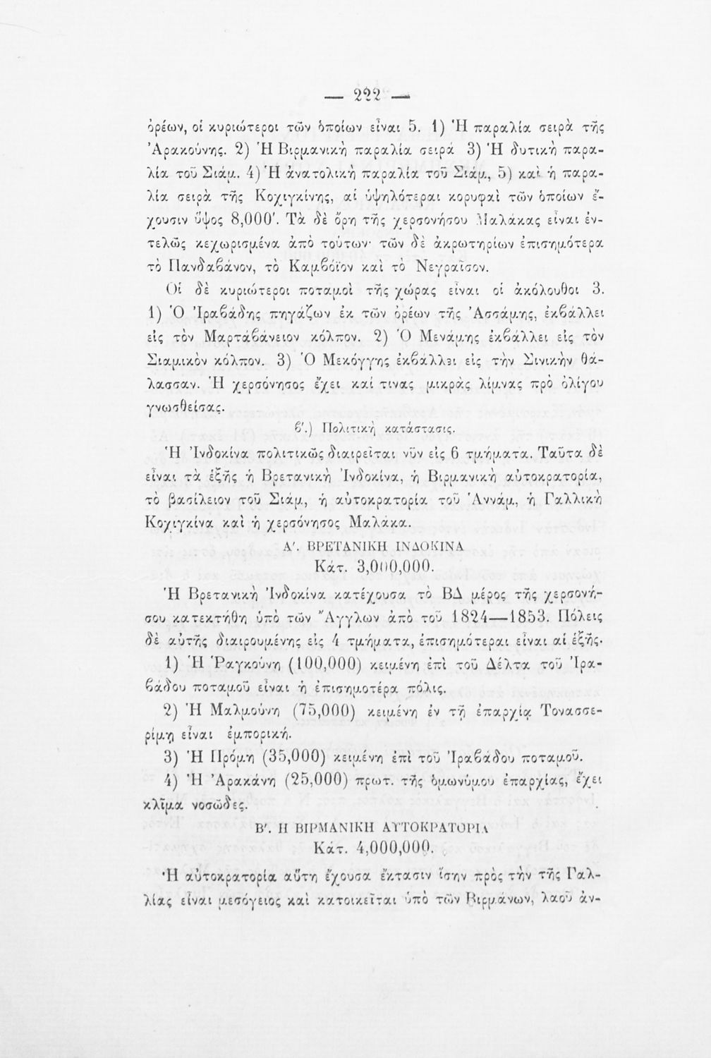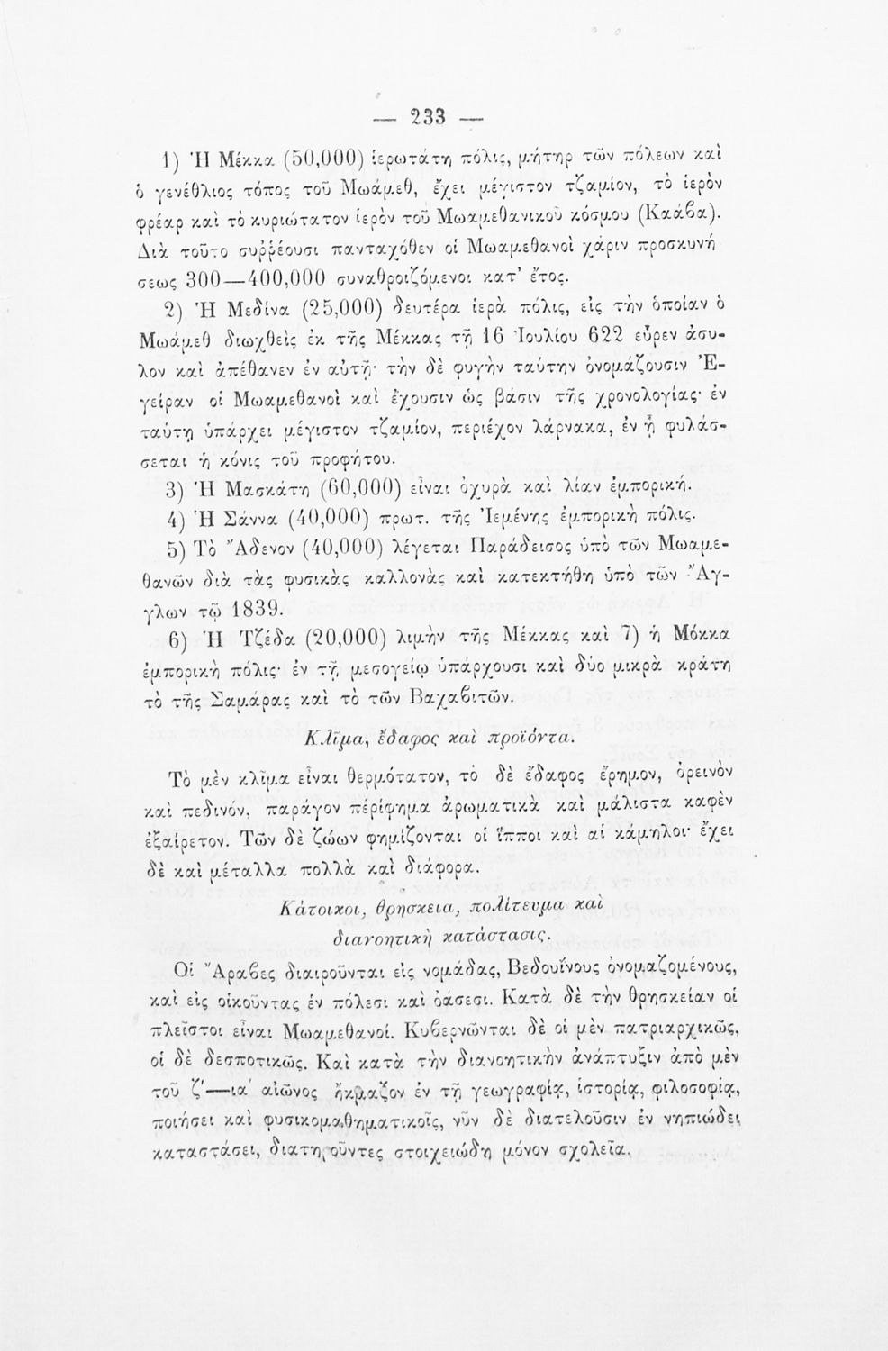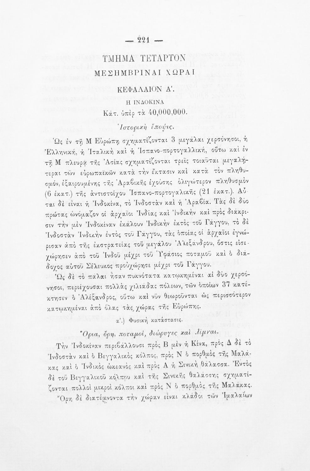Σχολικό εγχειρίδιο Γεωγραφίας για τα Ελληνικά Σχολεία και Παρθεναγωγεία που περιλαμβάνει εισαγωγή στην φυσική γεωγραφία και γεωλογία, και μια γενική επισκόπηση της πολιτικής, οικονομικής και φυσικής γεωγραφίας