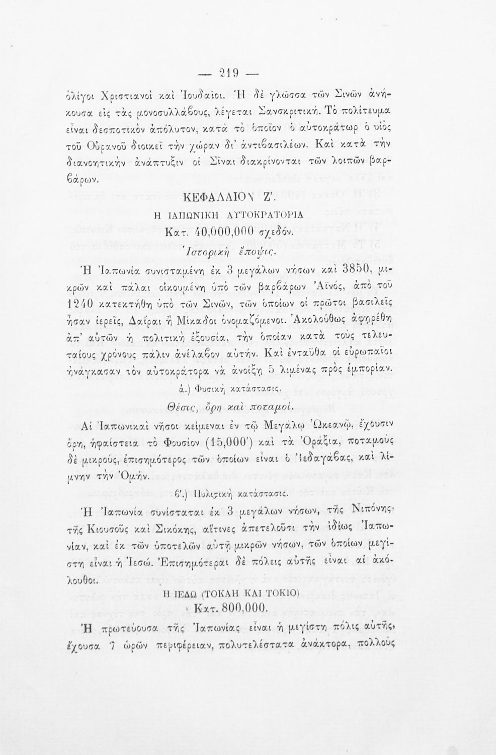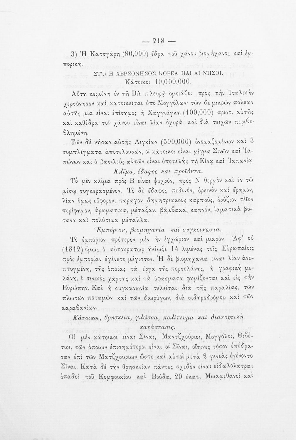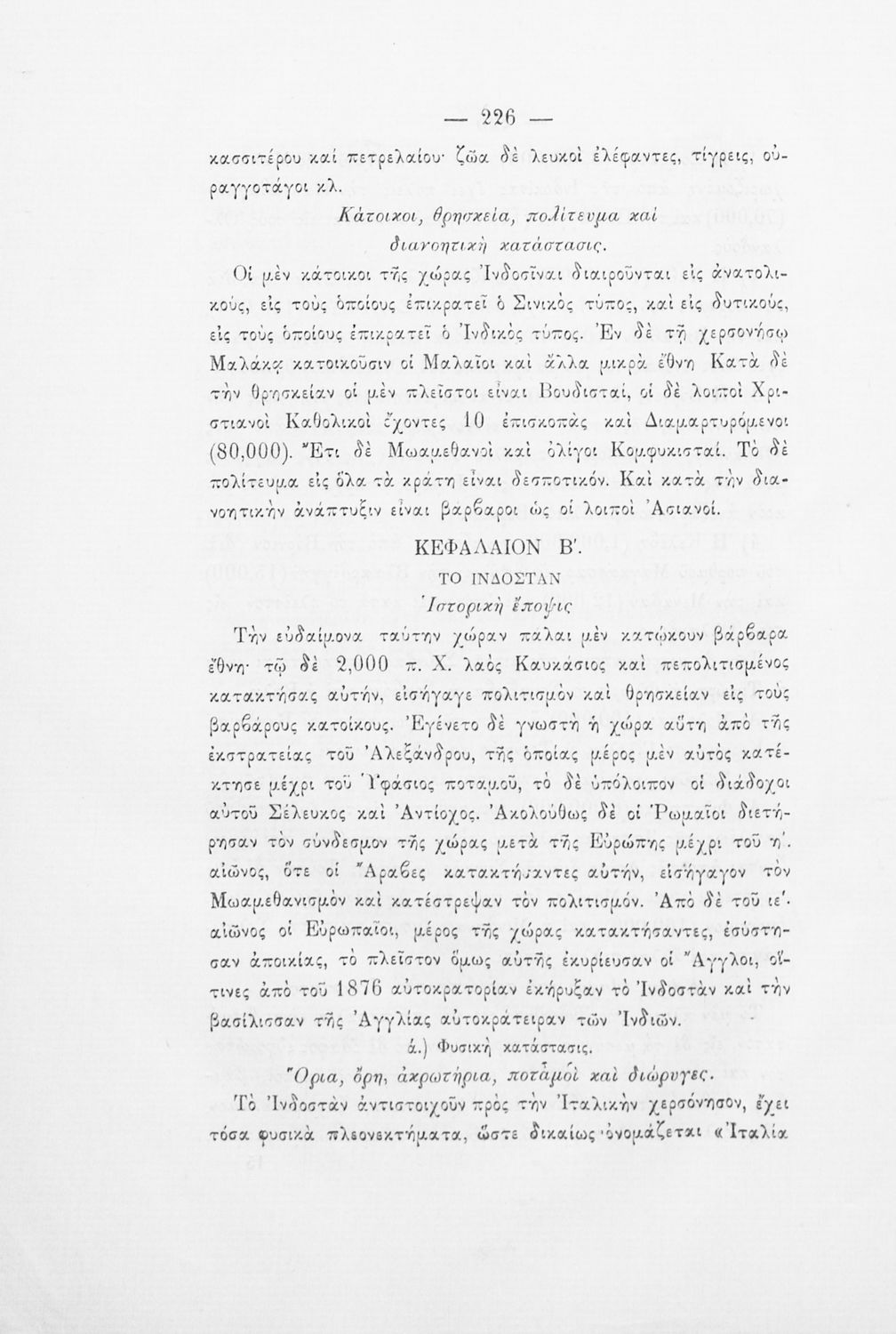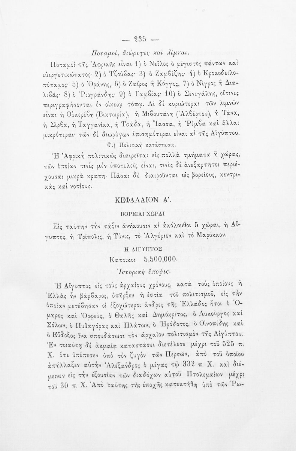 Σχολικό εγχειρίδιο Γεωγραφίας για τα Ελληνικά Σχολεία και Παρθεναγωγεία που περιλαμβάνει εισαγωγή στην φυσική γεωγραφία και γεωλογία, και μια γενική επισκόπηση της πολιτικής, οικονομικής και φυσικής γεωγραφίας