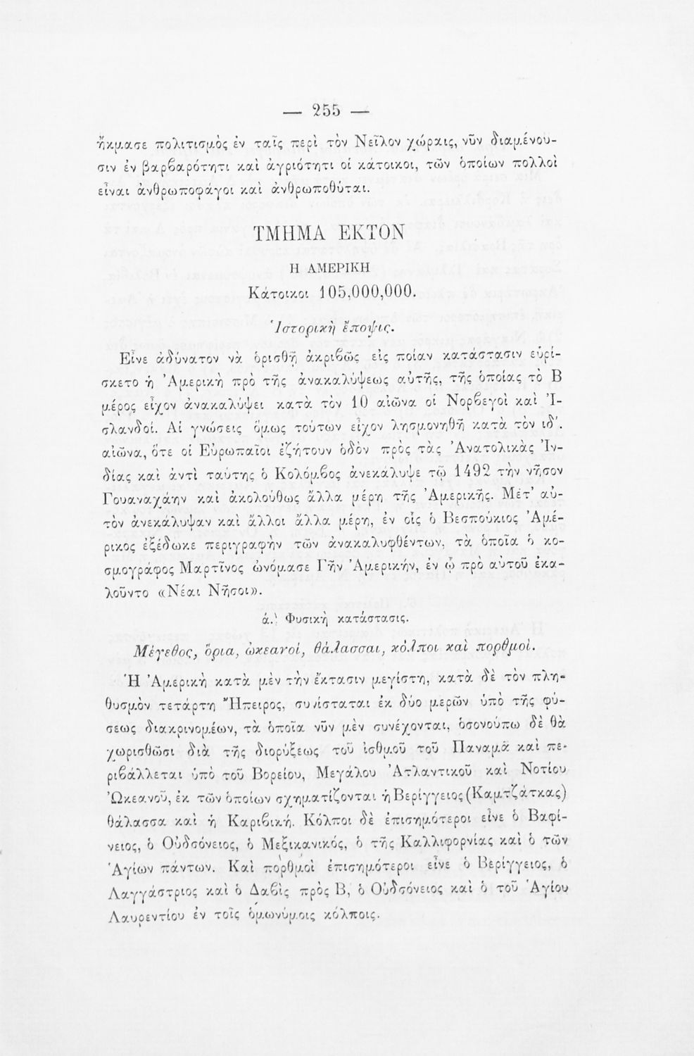 Σχολικό εγχειρίδιο Γεωγραφίας για τα Ελληνικά Σχολεία και Παρθεναγωγεία που περιλαμβάνει εισαγωγή στην φυσική γεωγραφία και γεωλογία, και μια γενική επισκόπηση της πολιτικής, οικονομικής και φυσικής γεωγραφίας