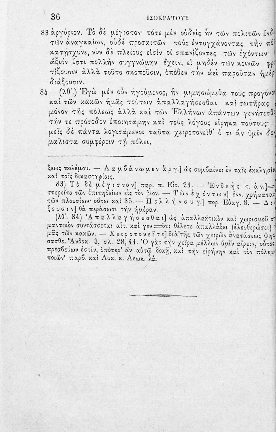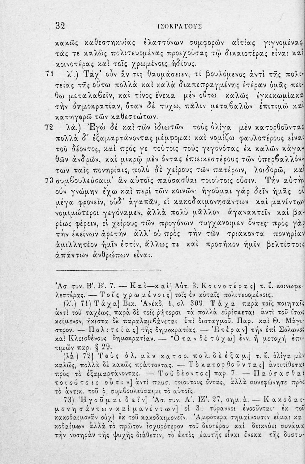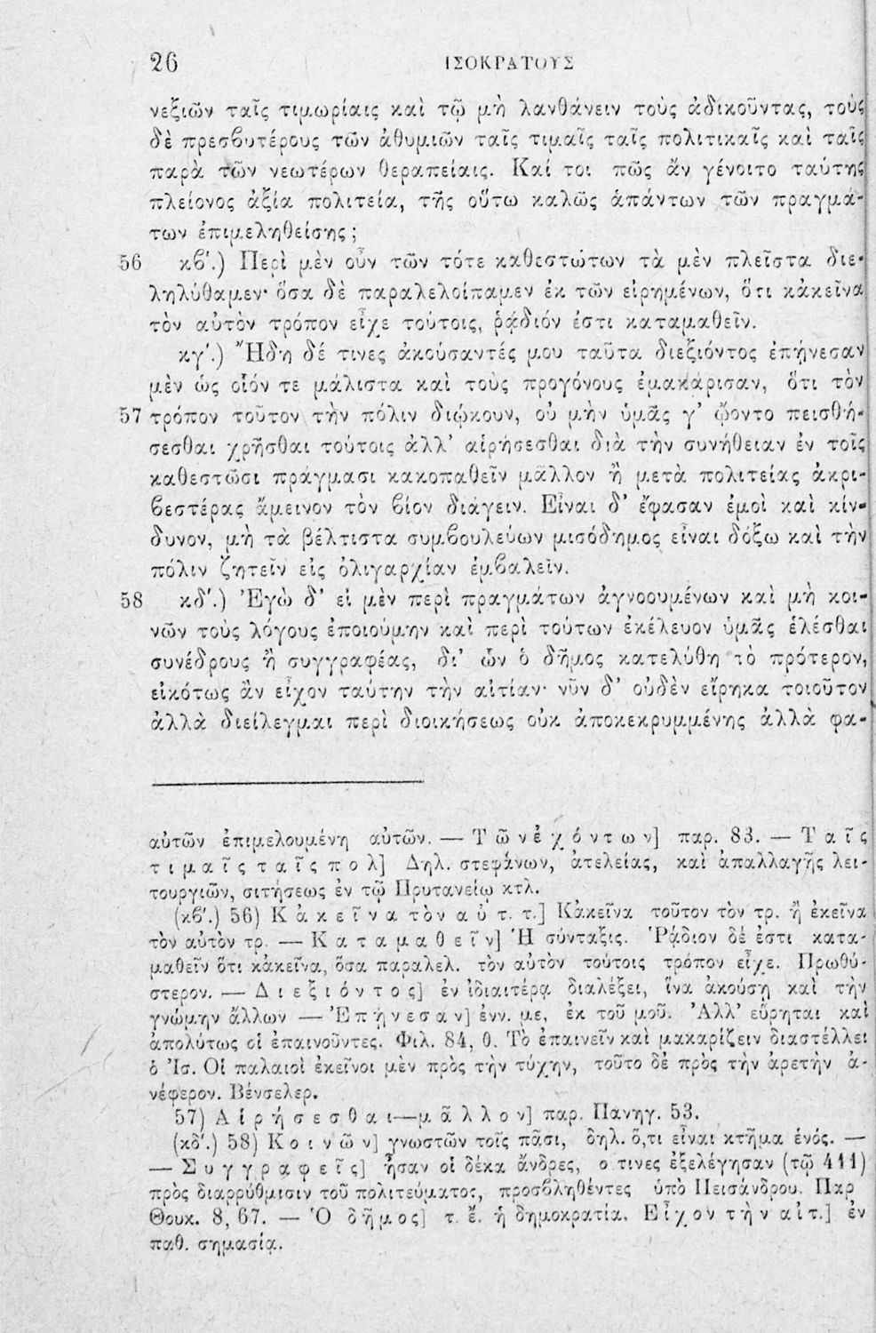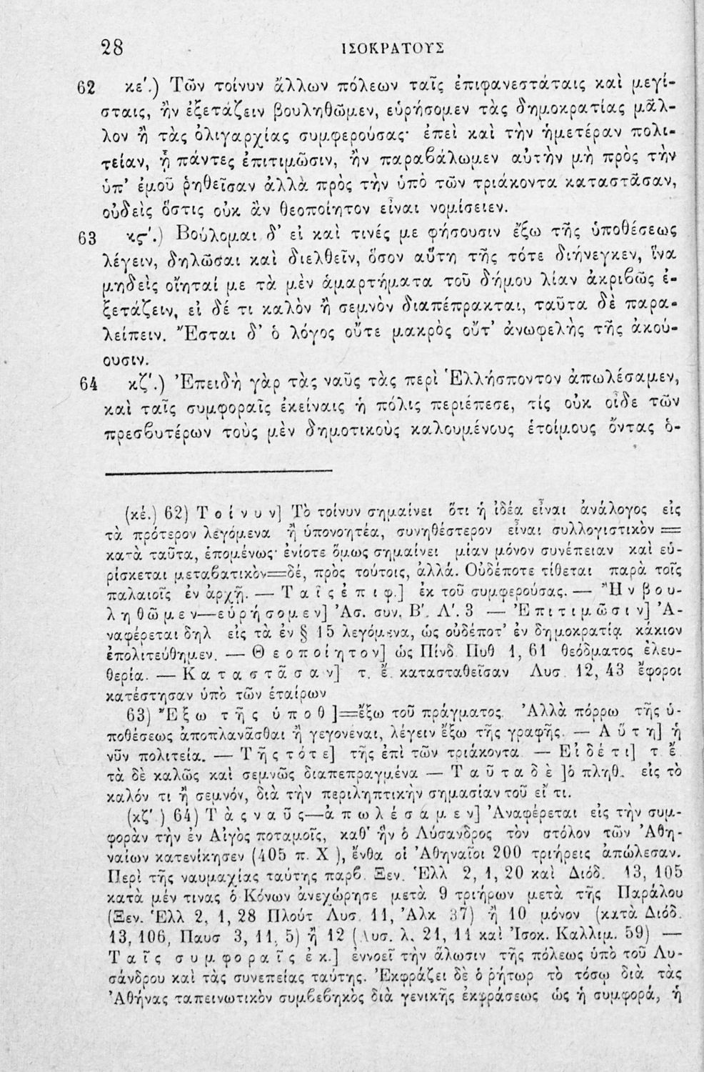 Ισοκράτους Λόγοι Αρεοπαγιτικός και Πανηγυρικός μετά σχολίων προς χρήσιν των μαθητών της Β΄ τάξεως του Γυμνασίου