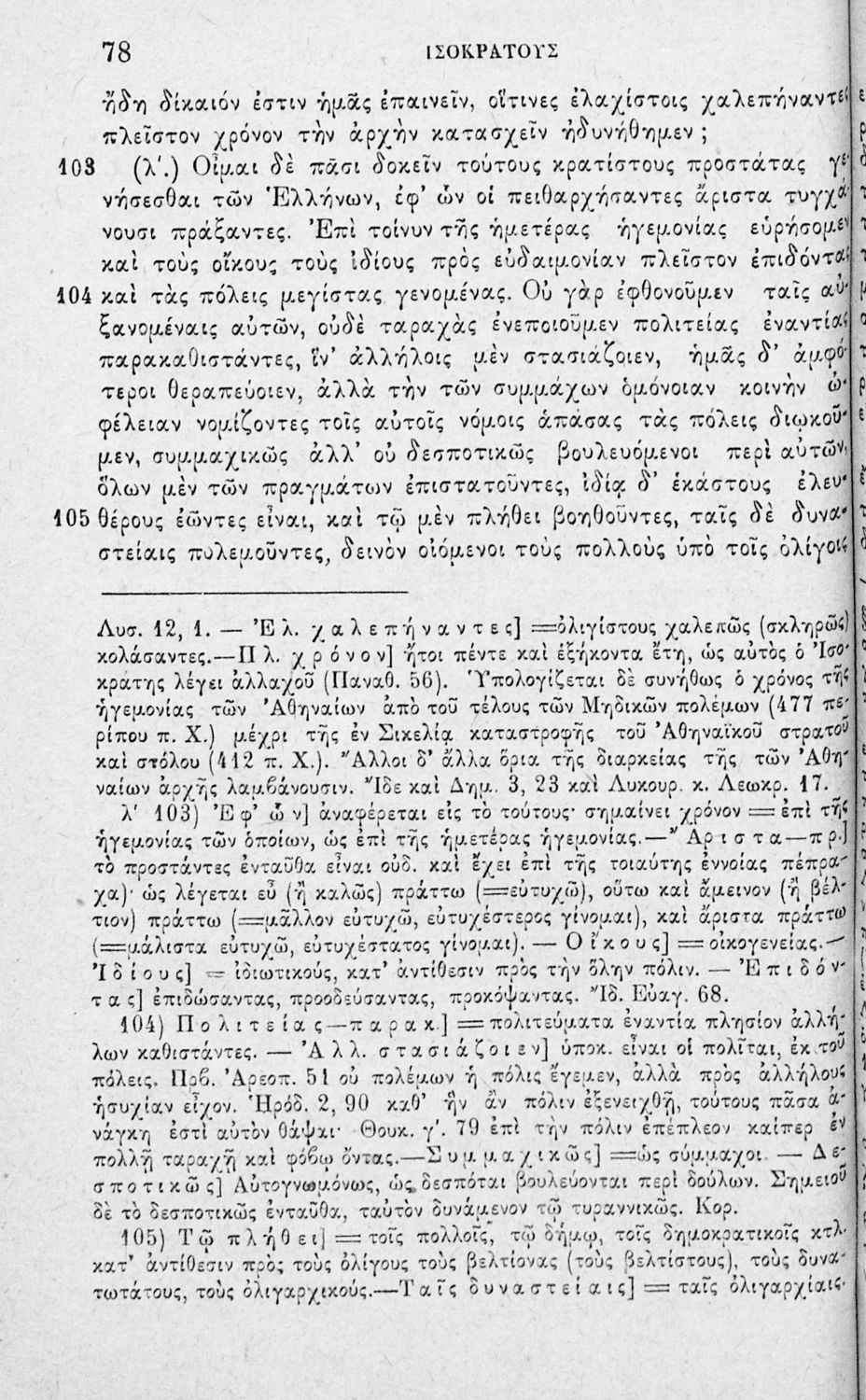 Σχολικό εγχειρίδιο Αρχαίων Ελληνικών Β΄ Γυμνασίου που περιλαμβάνει τους Λόγους του Ισοκράτη Πανηγυρικός και Αεροπαγίτικος και ερμηνευτικά σχόλια.