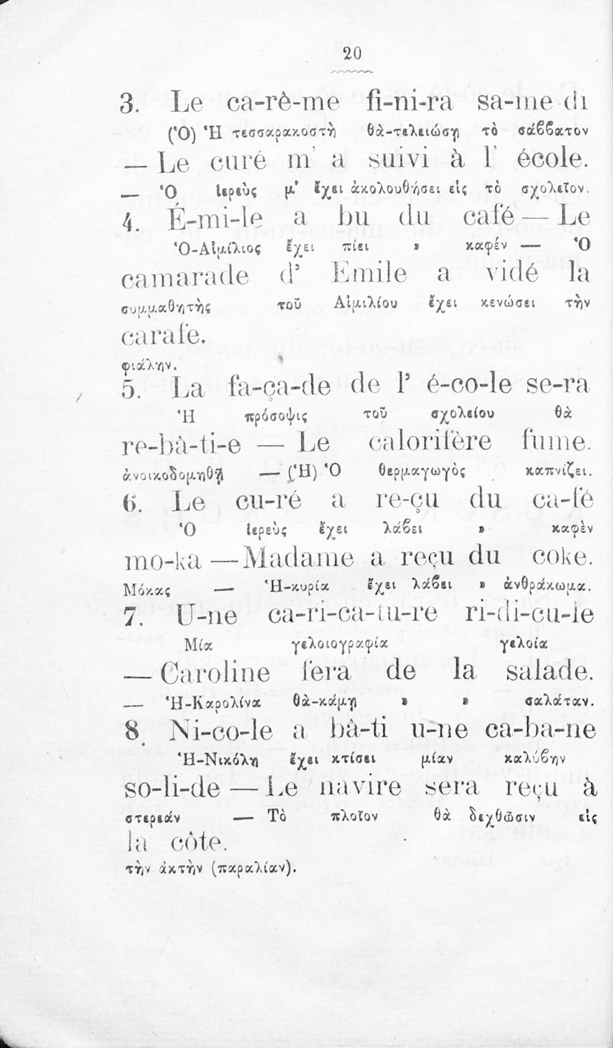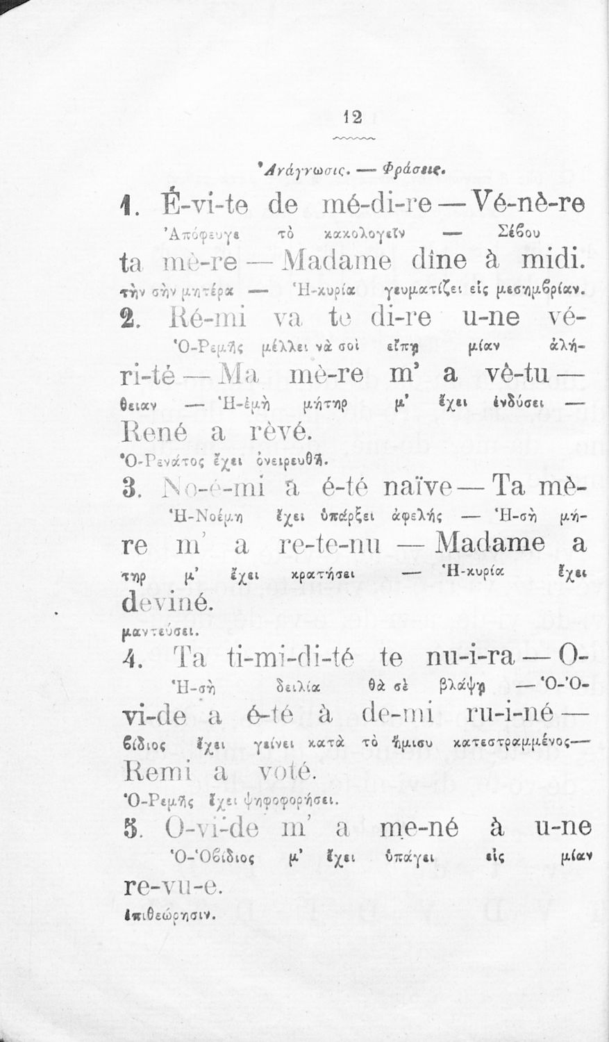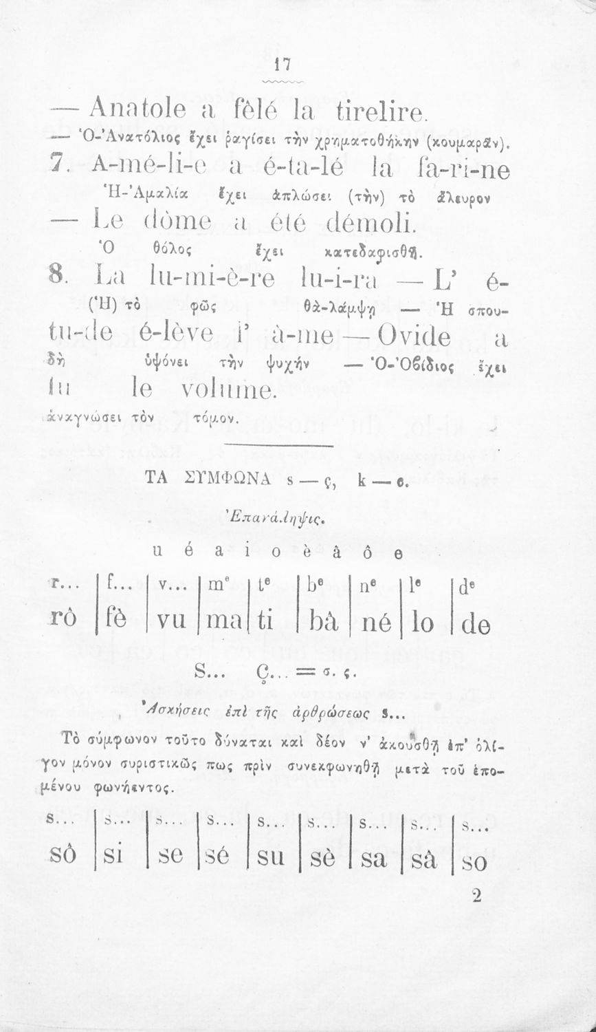 Σχολικό εγχειρίδιο Γαλλικών το οποίο εισάγει τους μαθητές στη σωστή χρήση του γαλλικού αλφάβητου και στη συνέχεια περιλαμβάνει σειρά σύντομων ιστοριών οι οποίες αντλούν τα θέματά τους από την οικογενειακή και κοινωνική ζωή.