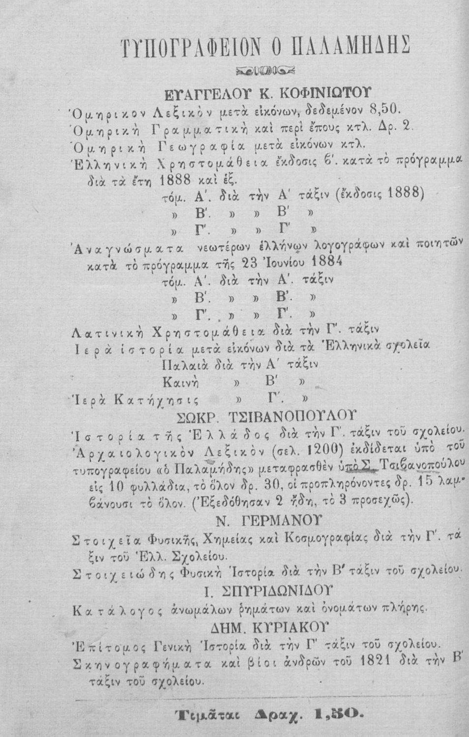 Εκδότης: Τυπογραφείο Ο Παλαμήδης