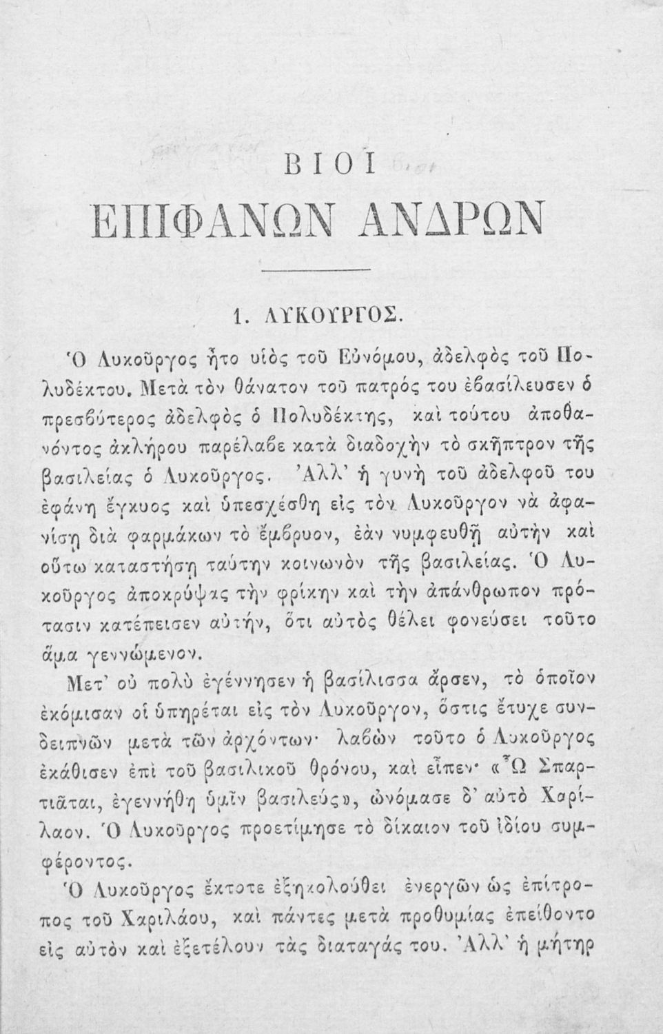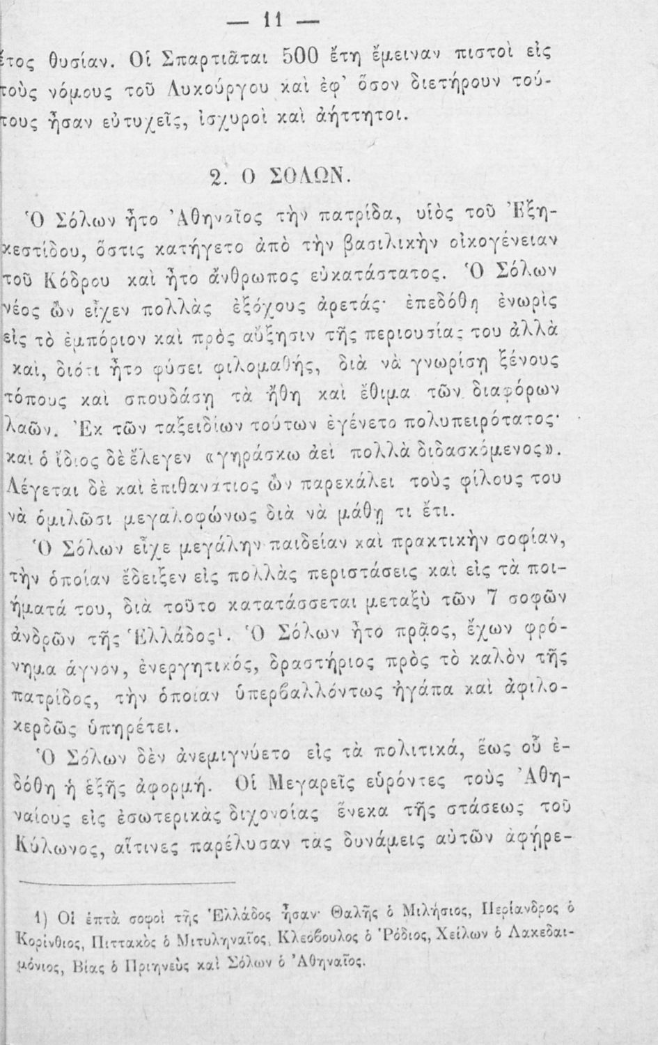 Βαθμίδα εκπαίδευσης: Δευτεροβάθμια Τάξη: Α' Ελληνικού Σχολείου Μάθημα: Ιστορία Γλώσσα: Καθαρεύουσα Παρουσίαση περιεχομένου: Σχολικό εγχειρίδιο Ιστορίας Α' Ελληνικού Σχολείου που περιέχει βιογραφίες επιφανών ανδρών της αρχαίας Ελλάδας. |