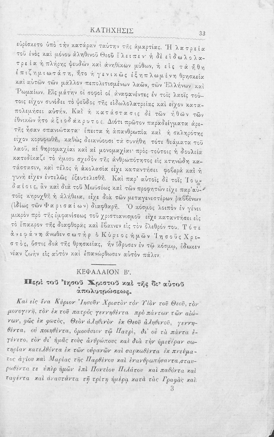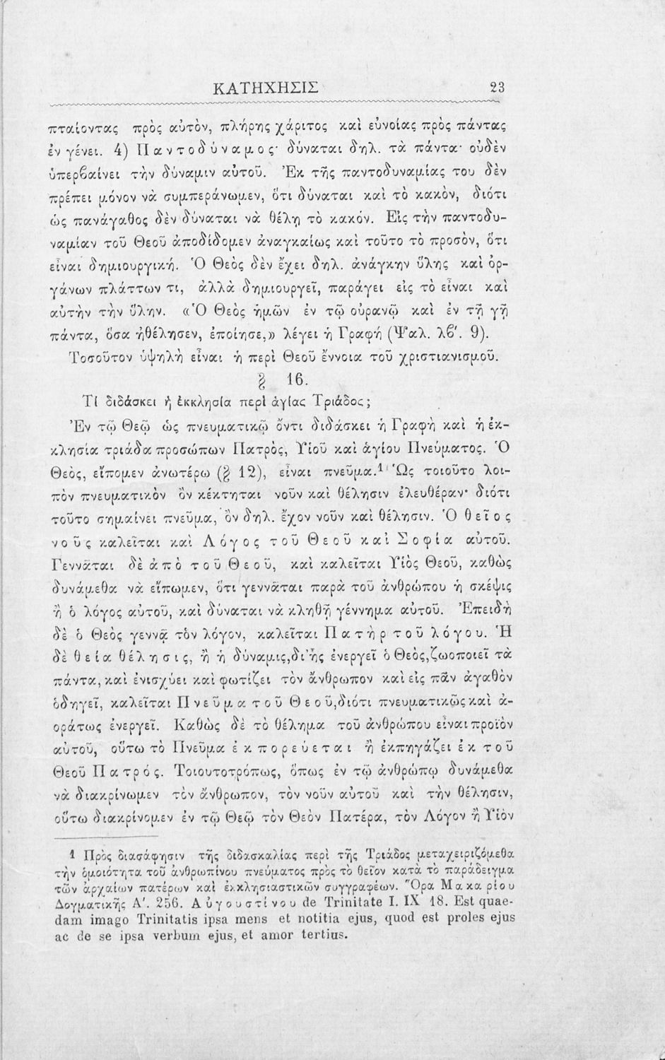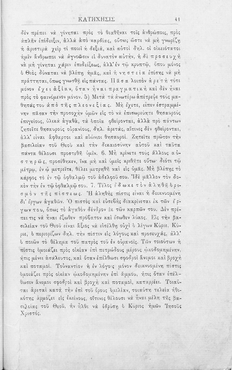 Βαθμίδα εκπαίδευσης: Δευτεροβάθμια Τάξη: Ελληνικό Σχολείο Μάθημα: Θρησκευτικά Γλώσσα: Καθαρεύουσα Παρουσίαση περιεχομένου: Σχολικό εγχειρίδιο Θρησκευτικών για τα Ελληνικά Σχολεία που περιλαμβάνει εισαγωγή στην Παλαιά και Καινή Διαθήκη και παρουσιάζει ζητήματα χριστιανικής κατήχησης και ηθικής με έμφαση στα μυστήρια και τις δέκα εντολές. |