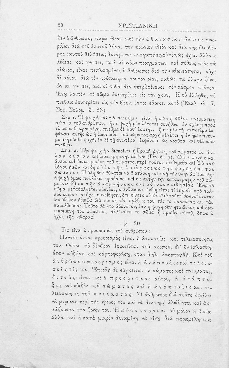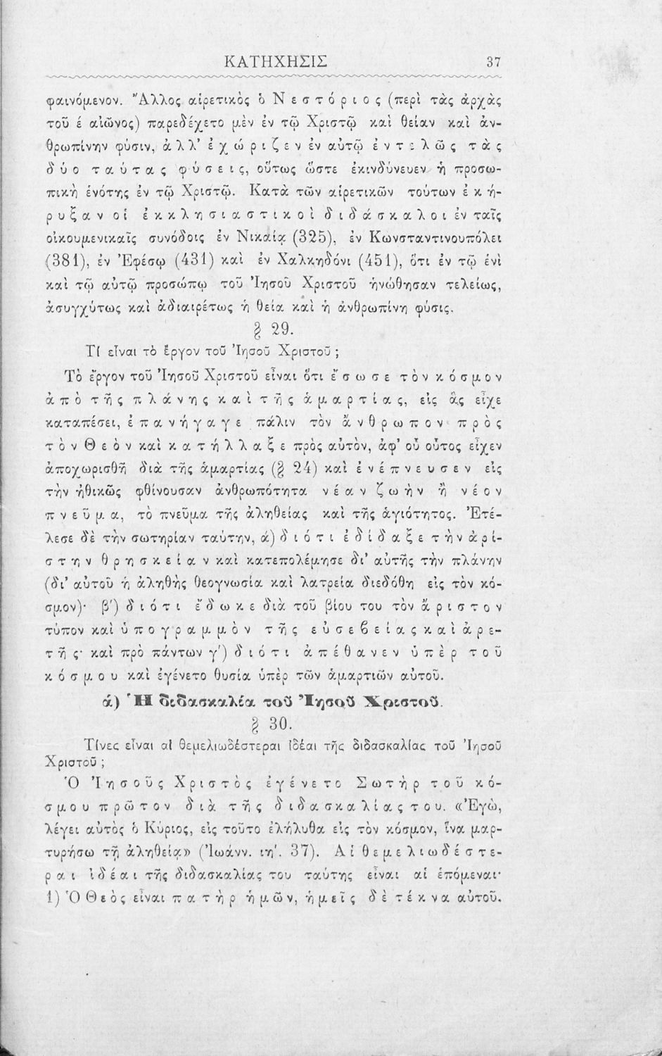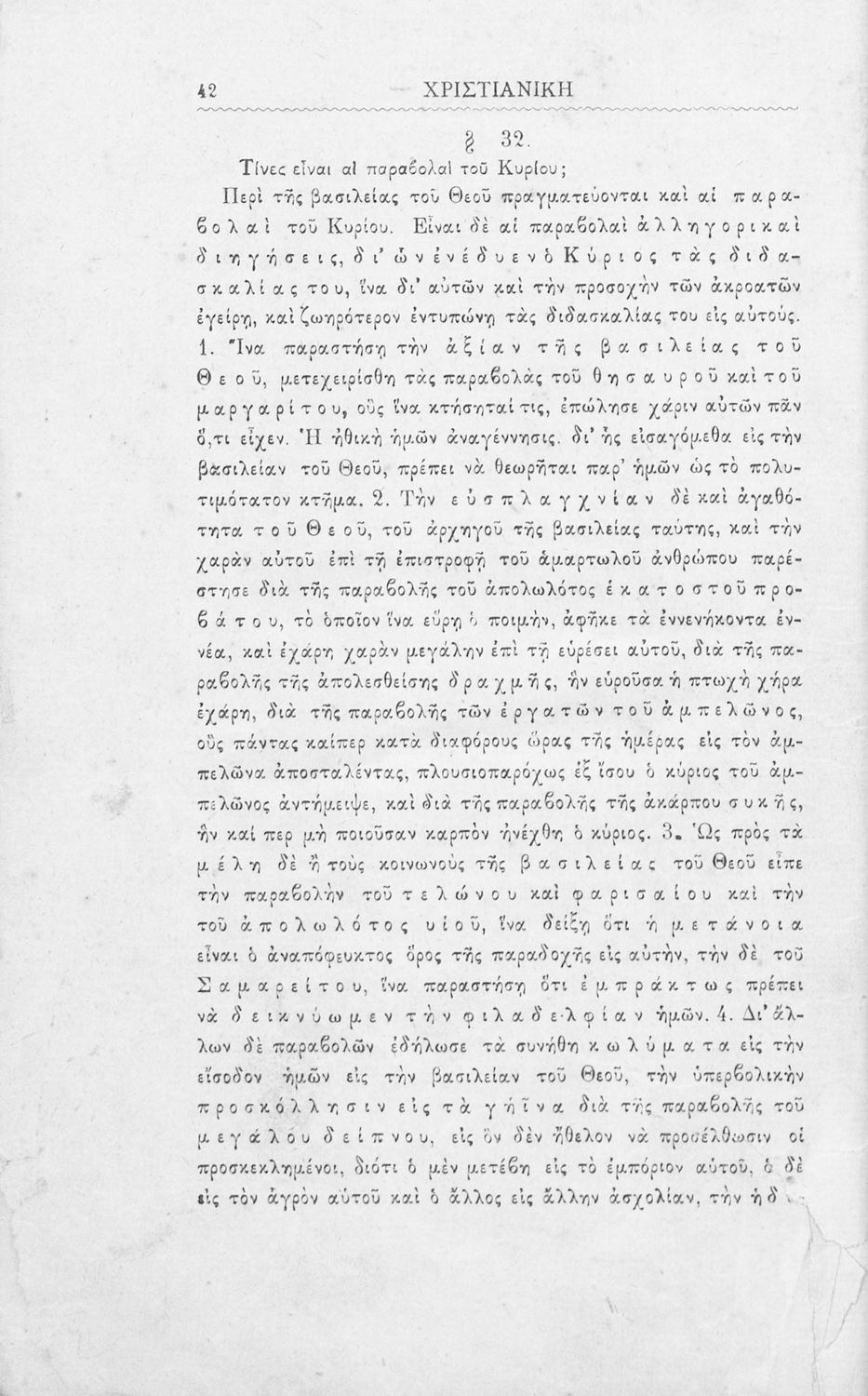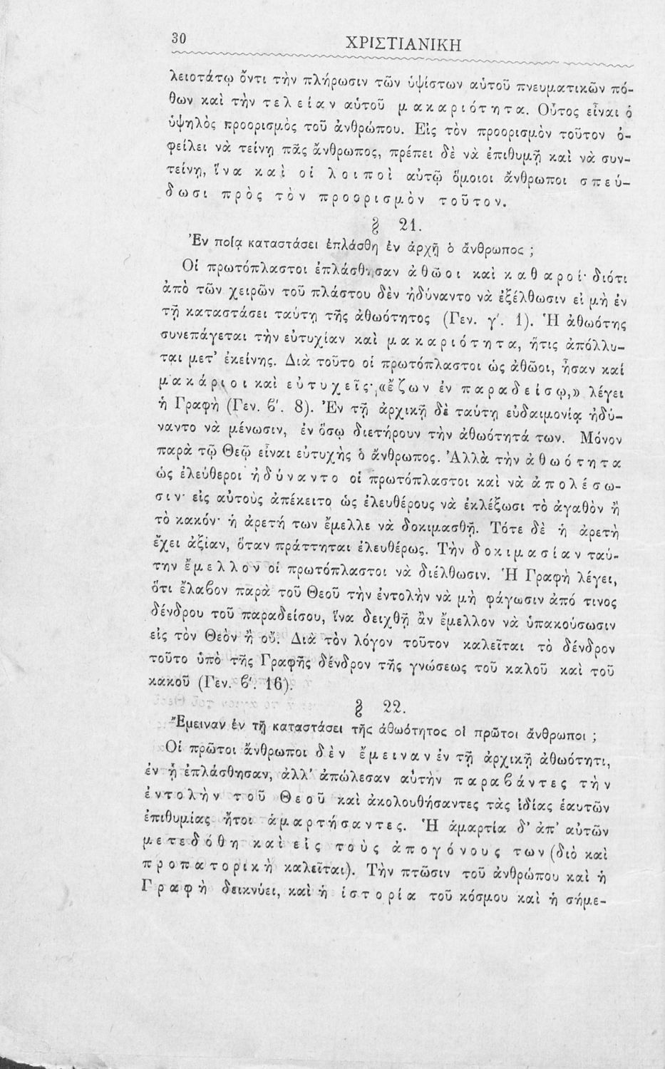 Βαθμίδα εκπαίδευσης: Δευτεροβάθμια Τάξη: Ελληνικό Σχολείο Μάθημα: Θρησκευτικά Γλώσσα: Καθαρεύουσα Παρουσίαση περιεχομένου: Σχολικό εγχειρίδιο Θρησκευτικών για τα Ελληνικά Σχολεία που περιλαμβάνει εισαγωγή στην Παλαιά και Καινή Διαθήκη και παρουσιάζει ζητήματα χριστιανικής κατήχησης και ηθικής με έμφαση στα μυστήρια και τις δέκα εντολές. |