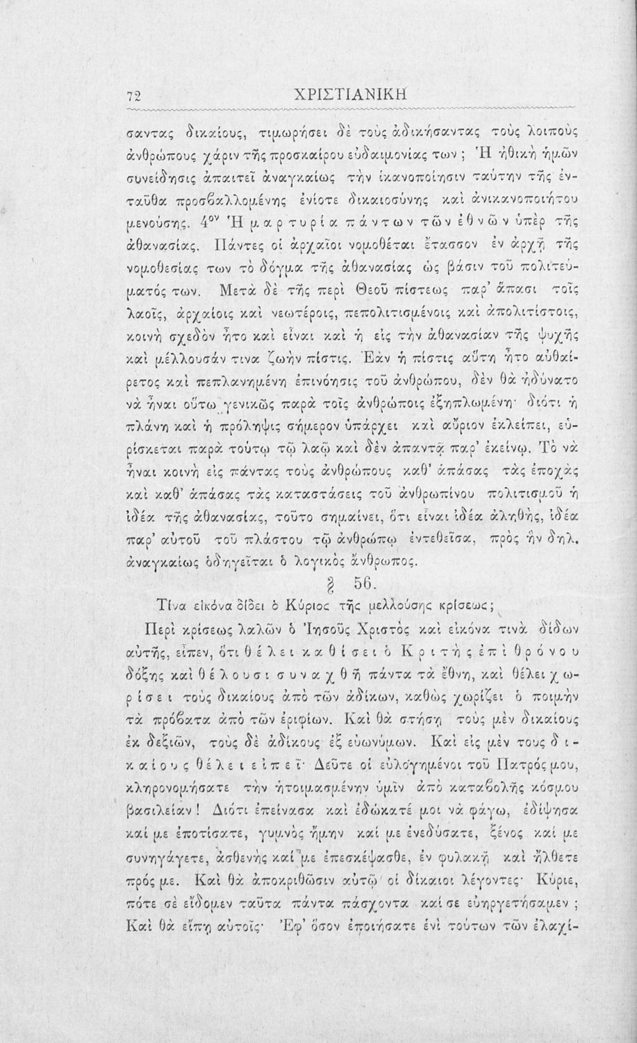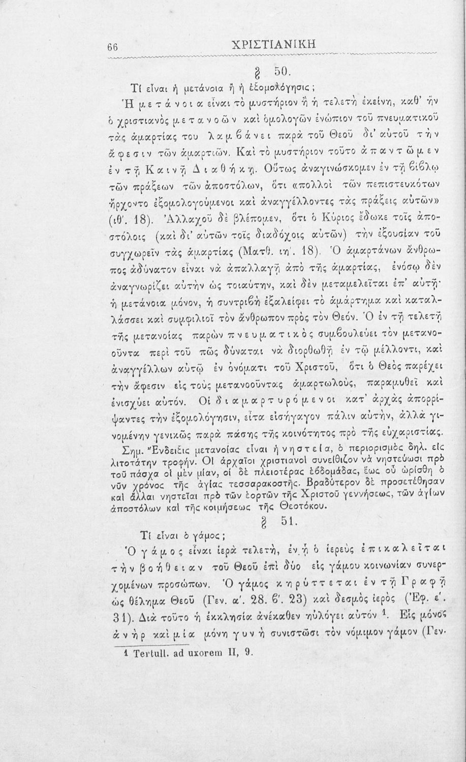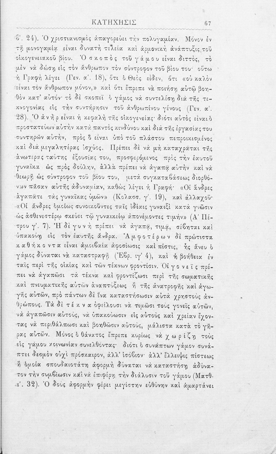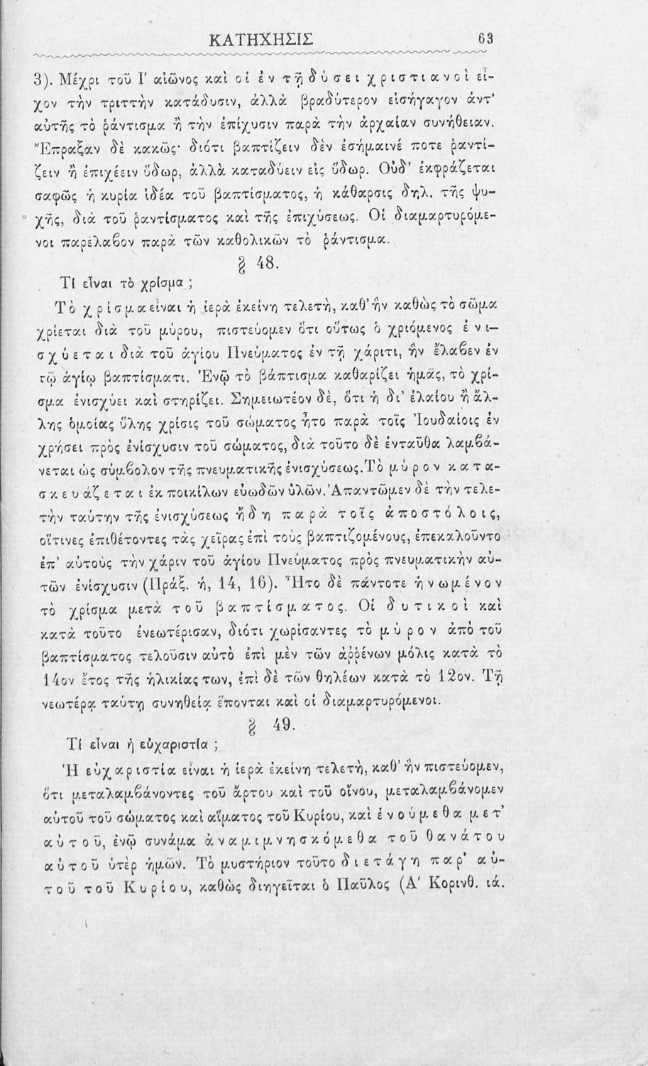 Βαθμίδα εκπαίδευσης: Δευτεροβάθμια Τάξη: Ελληνικό Σχολείο Μάθημα: Θρησκευτικά Γλώσσα: Καθαρεύουσα Παρουσίαση περιεχομένου: Σχολικό εγχειρίδιο Θρησκευτικών για τα Ελληνικά Σχολεία που περιλαμβάνει εισαγωγή στην Παλαιά και Καινή Διαθήκη και παρουσιάζει ζητήματα χριστιανικής κατήχησης και ηθικής με έμφαση στα μυστήρια και τις δέκα εντολές. |