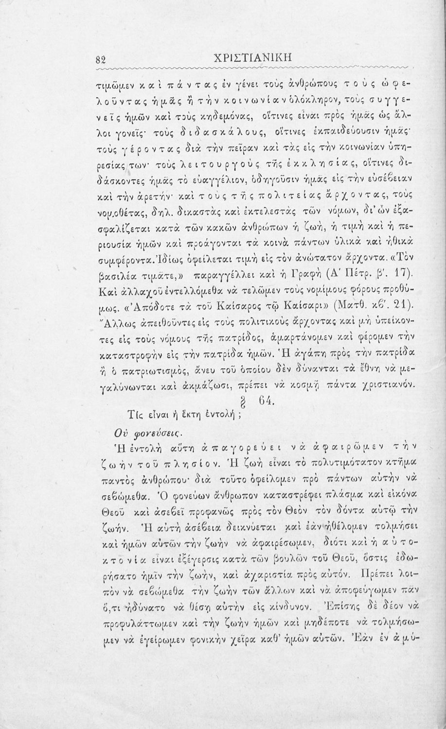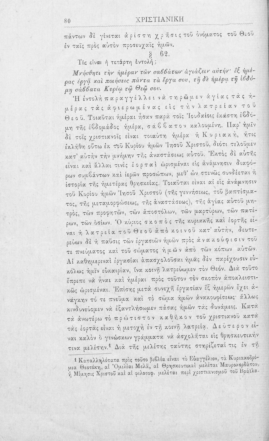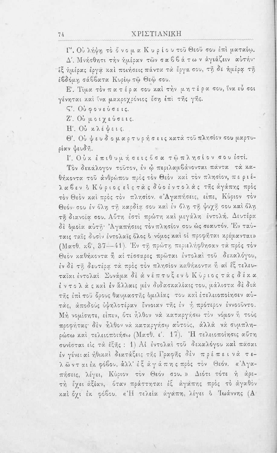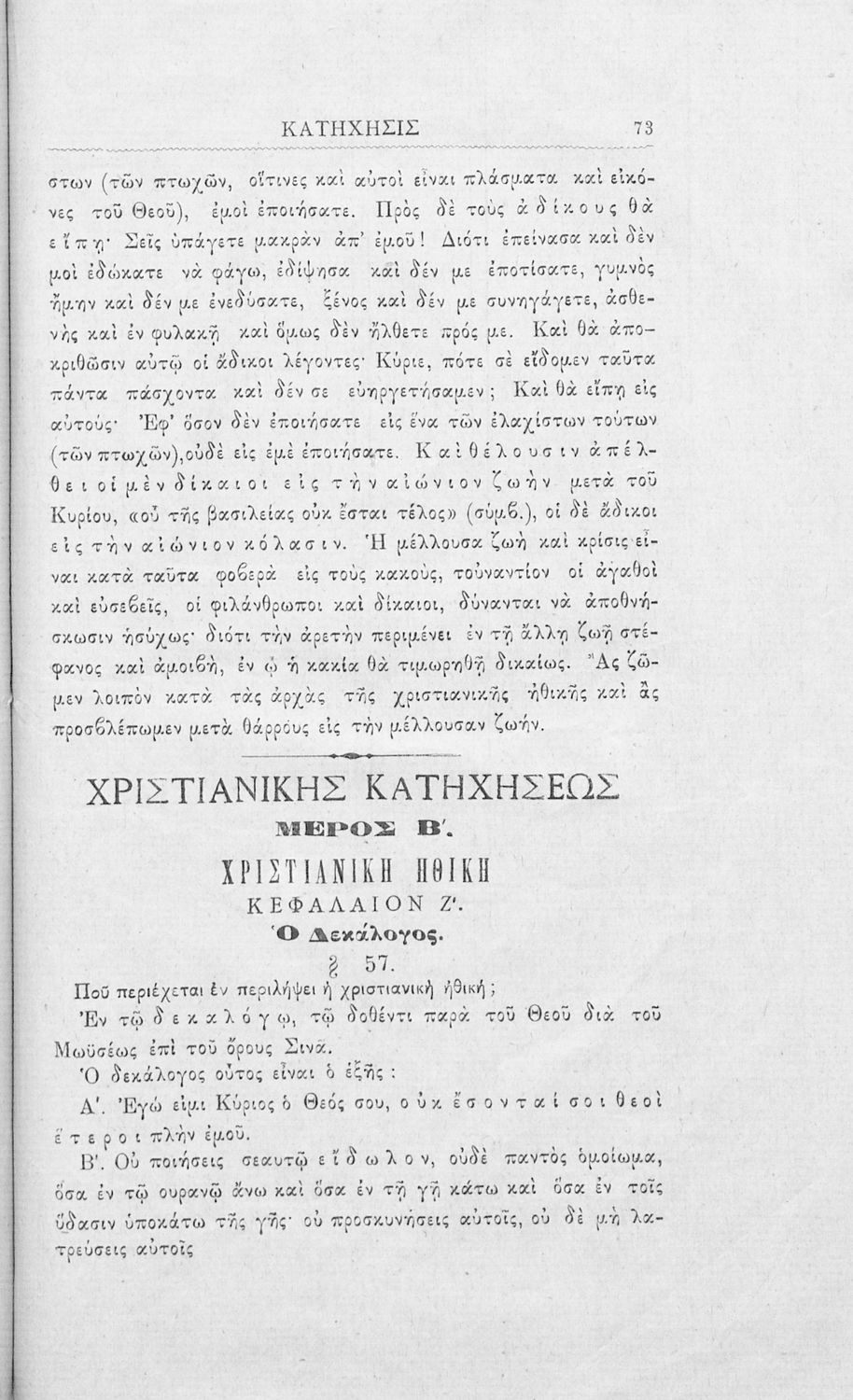 Σχολικό εγχειρίδιο Θρησκευτικών για τα Ελληνικά Σχολεία που περιλαμβάνει εισαγωγή στην Παλαιά και Καινή Διαθήκη και παρουσιάζει ζητήματα χριστιανικής κατήχησης και ηθικής με έμφαση στα μυστήρια και τις δέκα εντολές.