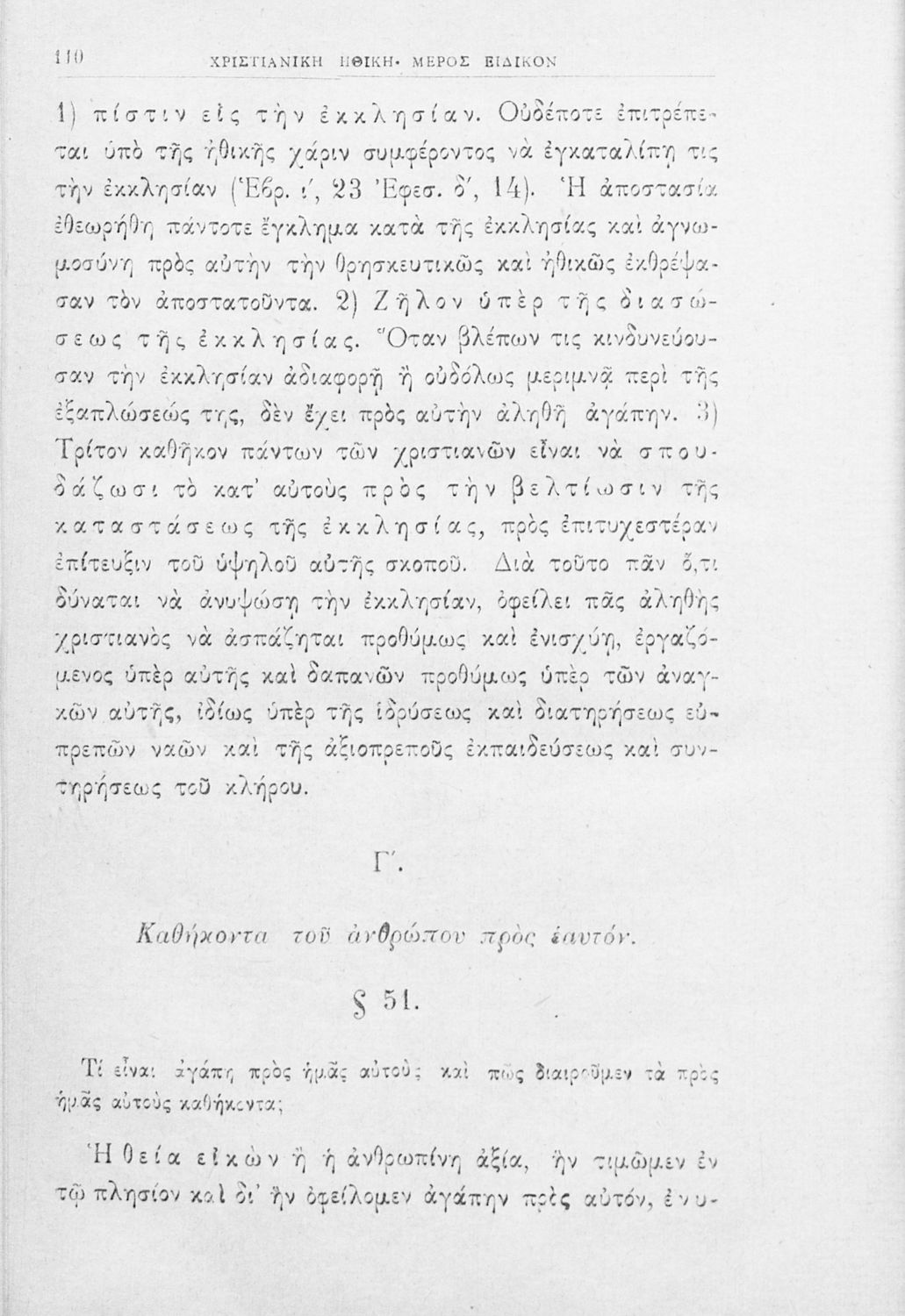 Σχολικό εγχειρίδιο Θρησκευτικών για τα Γυμνάσια και τα Διδασκαλεία που εστιάζει στη χριστιανική ηθική και αναλύει τα καθήκοντα του ανθρώπου προς τον Θεό, τους άλλους ανθρώπους και τον εαυτό του.