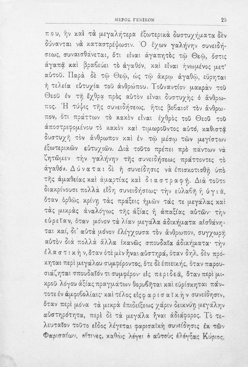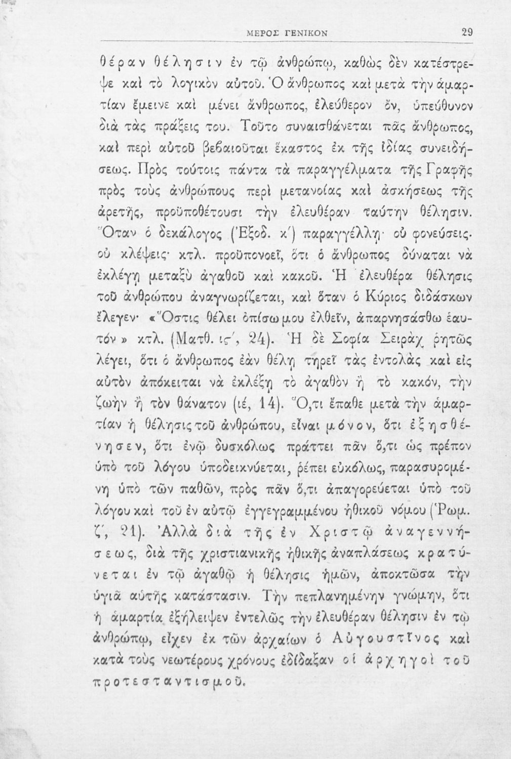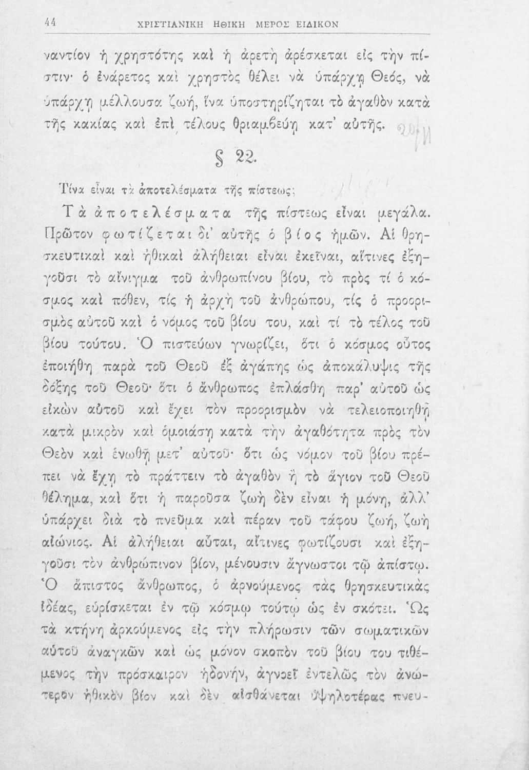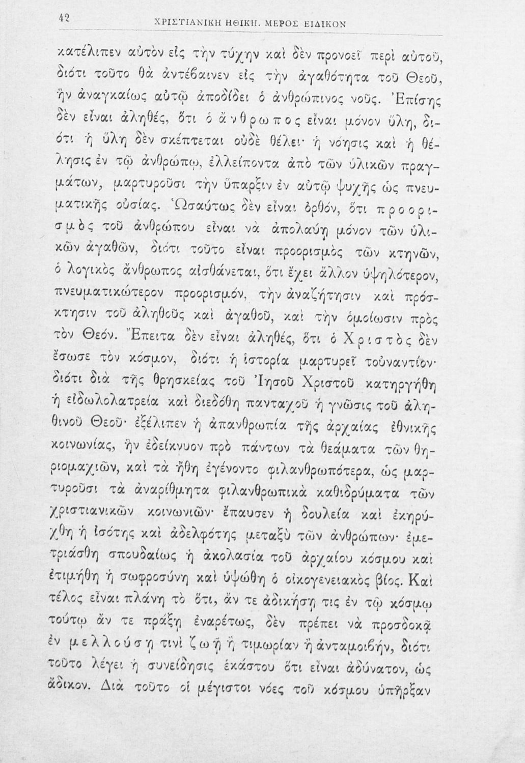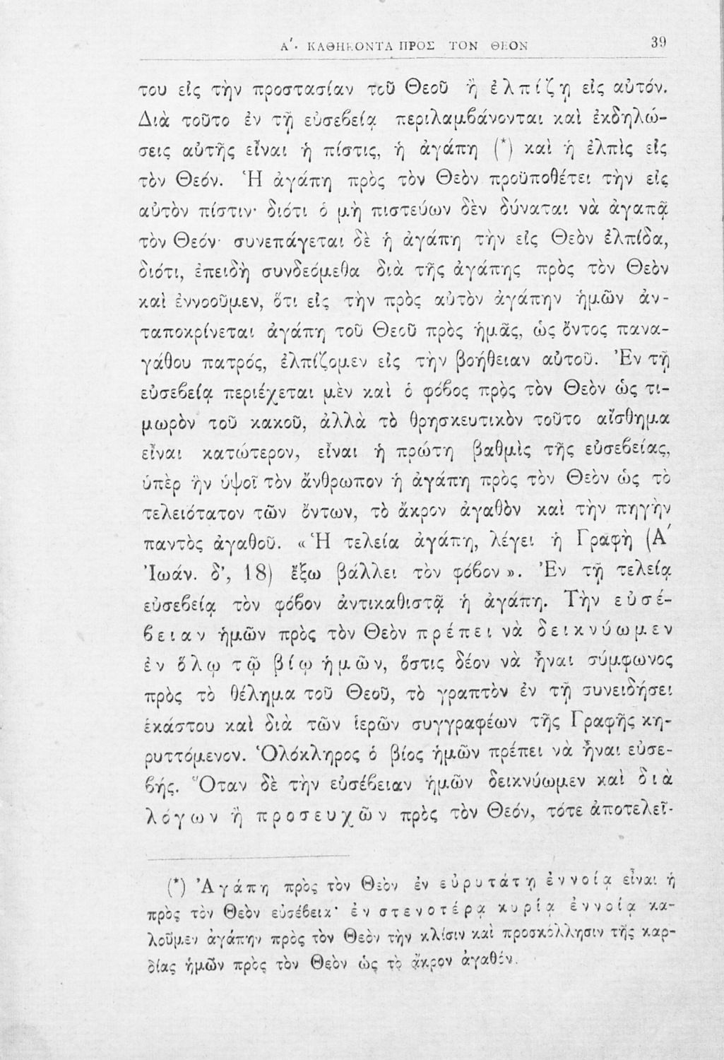 Βαθμίδα εκπαίδευσης: Δευτεροβάθμια Τάξη: Γυμνάσιο Μάθημα: Θρησκευτικά Γλώσσα: Καθαρεύουσα Παρουσίαση περιεχομένου: Σχολικό εγχειρίδιο Θρησκευτικών για τα Γυμνάσια που εστιάζει στη χριστιανική ηθική και αναλύει τα καθήκοντα του ανθρώπου προς τον Θεό, τους άλλους ανθρώπους και τον εαυτό του. |