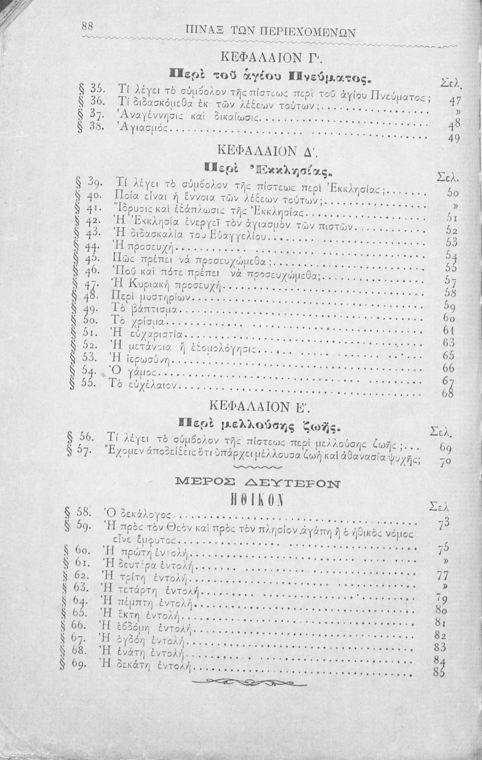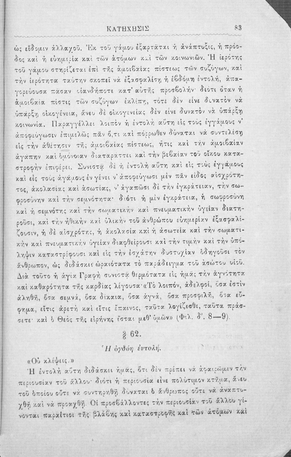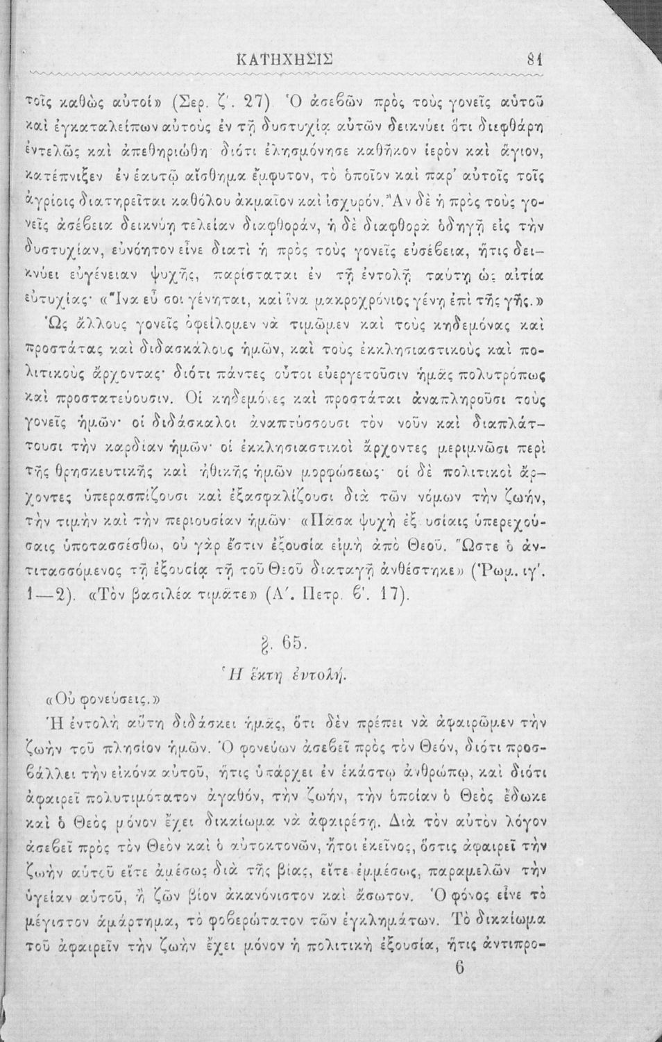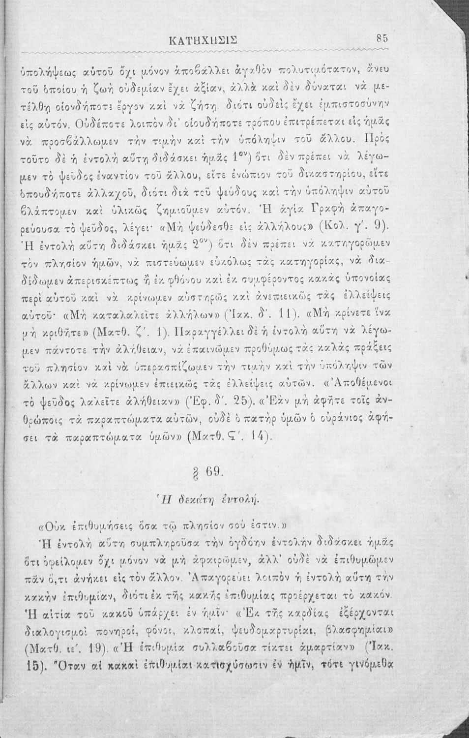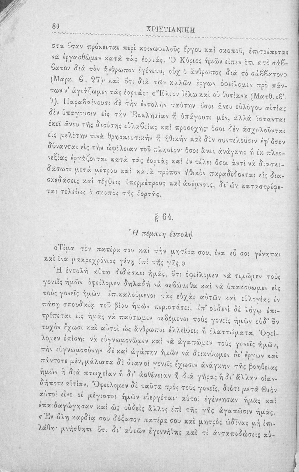 Σχολικό εγχειρίδιο Θρησκευτικών για τα Ελληνικά Σχολεία και Παρθεναγωγεία που εστιάζει σε θέματα χριστιανικής ηθικής και σε δογματικά και ηθικά ζητήματα της ορθόδοξης κατήχησης.
