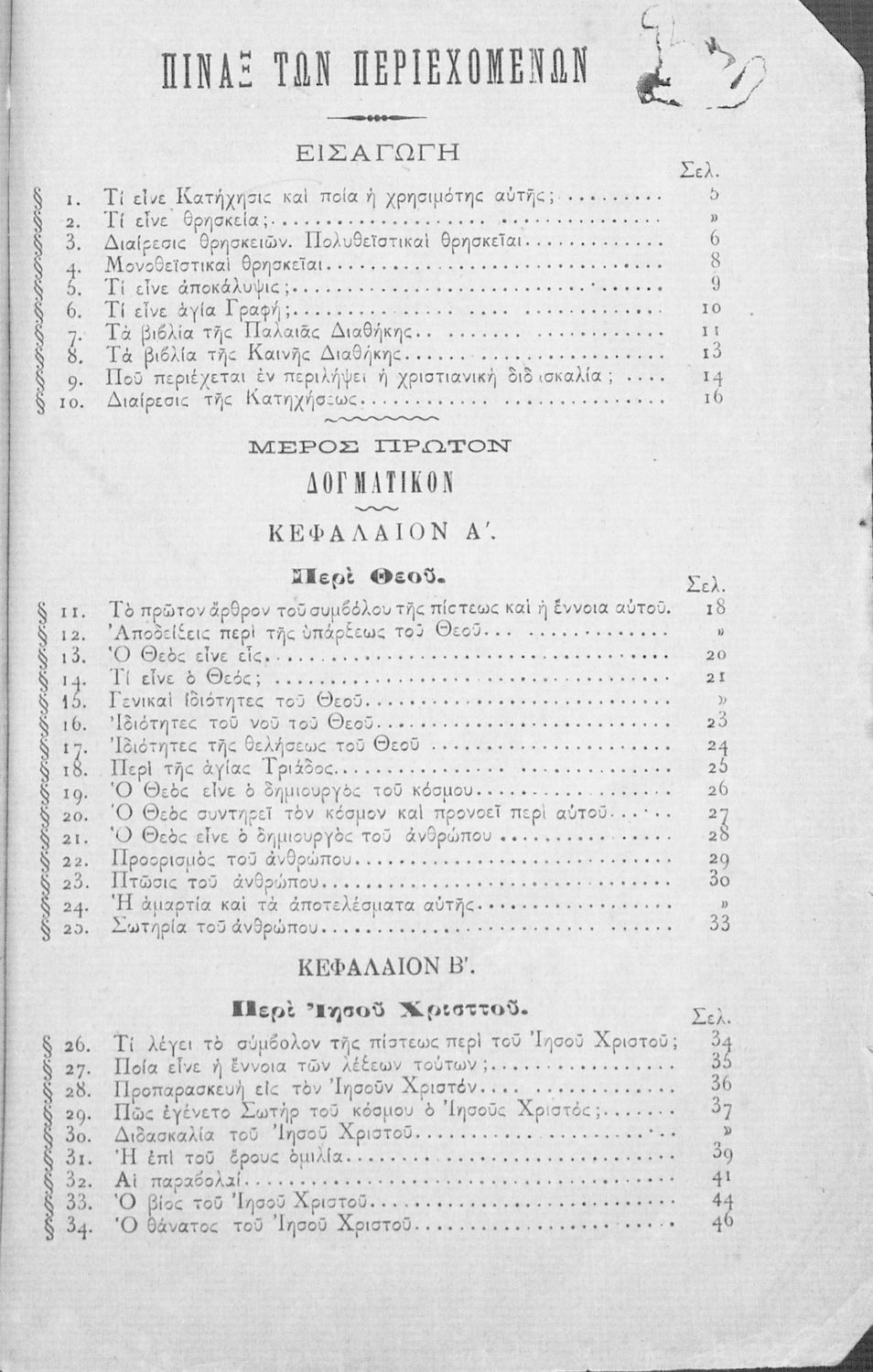 Σχολικό εγχειρίδιο Θρησκευτικών για τα Ελληνικά Σχολεία και παρθεναγωγεία που περιλαμβάνει εισαγωγή στην Παλαιά και Καινή διαθήκη και πραγματεύεται δογματικά και ηθικά ζητήματα της ορθόδοξης κατήχησης Είχε ...