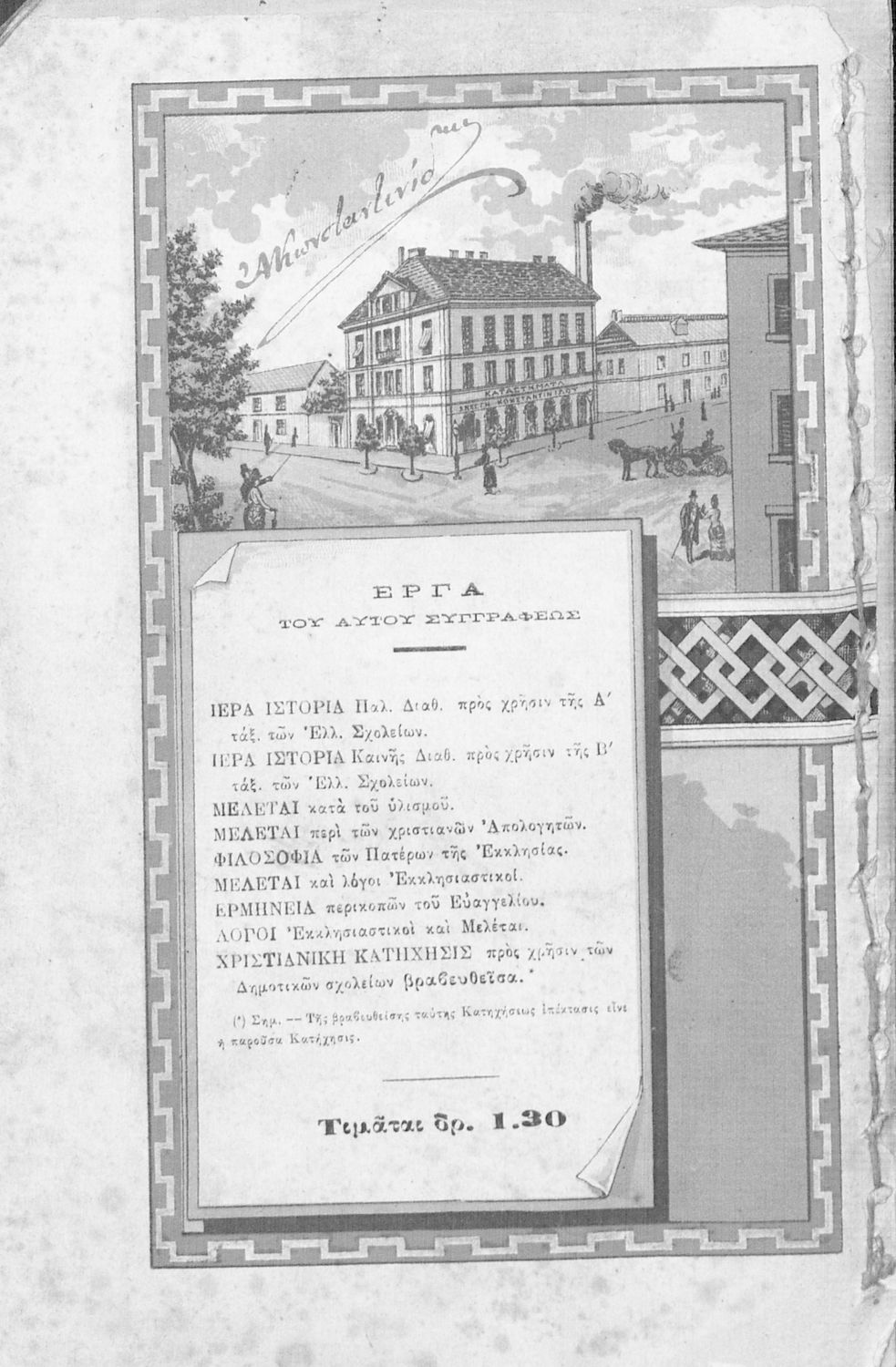 Σχολικό εγχειρίδιο Θρησκευτικών για τα Ελληνικά Σχολεία και τα Παρθεναγωγεία που αποτελεί μια εξιστόρηση της Καινής Διαθήκης από την γέννηση του Ιησού Χριστού ως το έργο των Αποστόλων