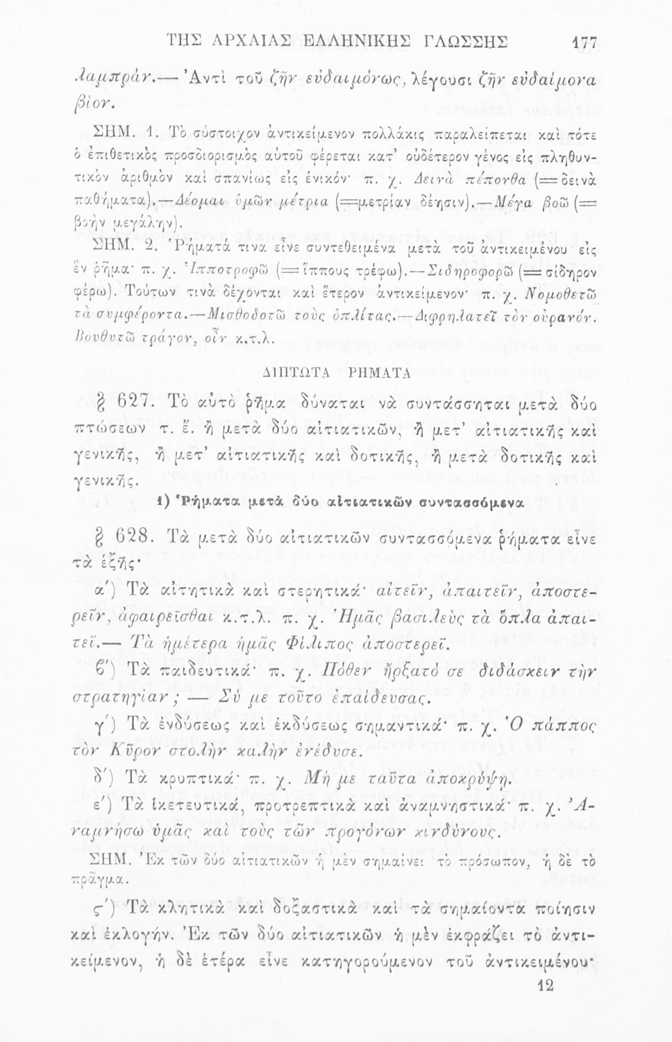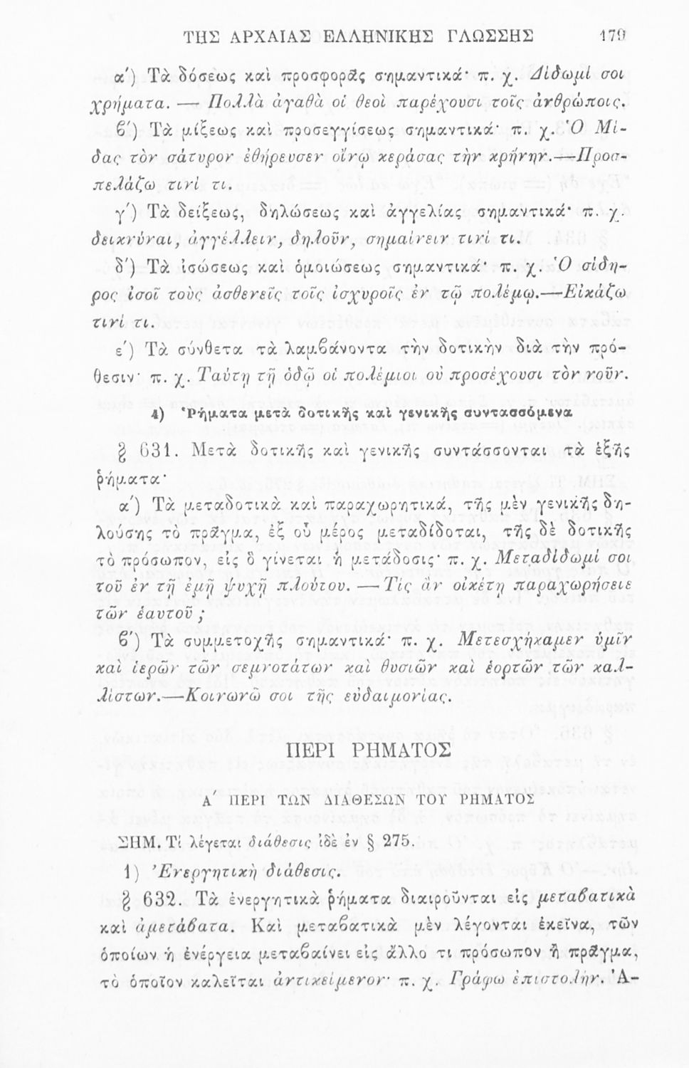 Σχολικό εγχειρίδιο Αρχαίων Ελληνικών για τα Ελληνικά Σχολεία, Γυμνάσια και Παρθεναγωγεία που περιλαμβάνει γραμματική και συντακτικό της αρχαίας ελληνικής και κατάλογο ανωμάλων ρημάτων.